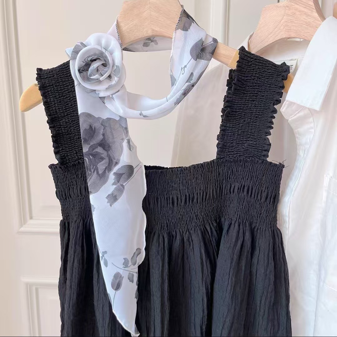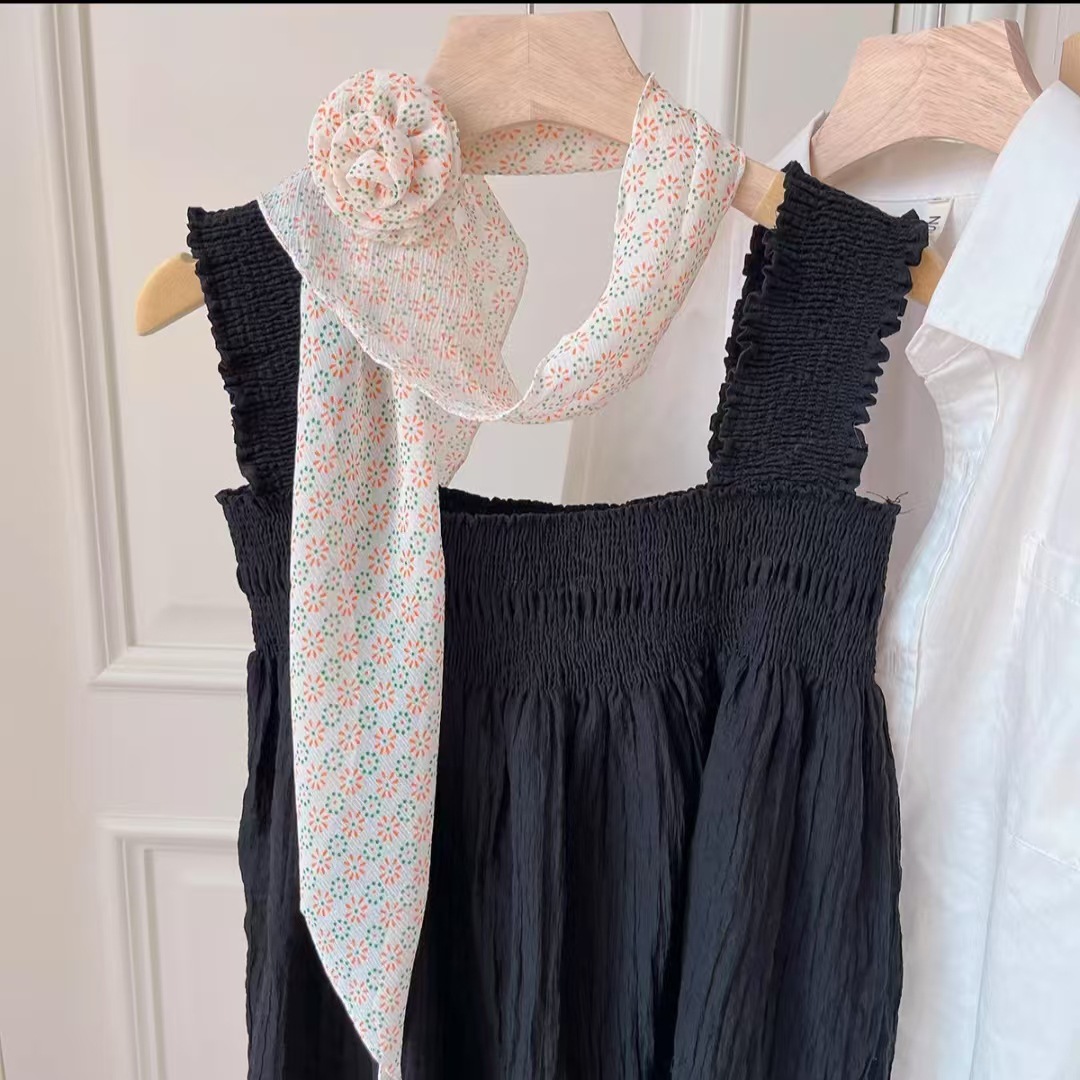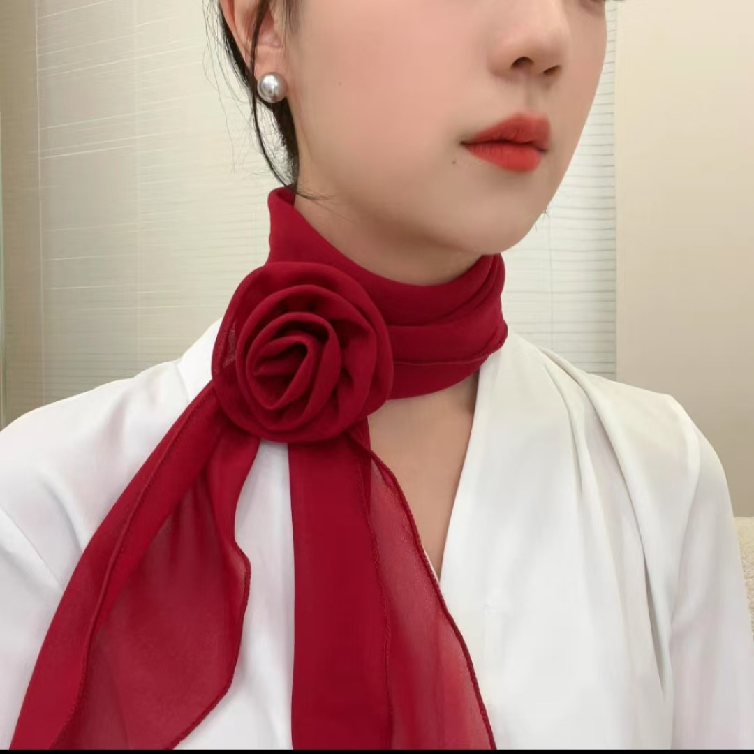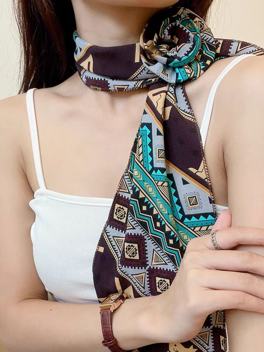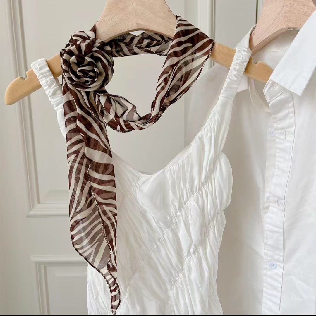 새로운 도착 올매치 패션 스카프 선스크린 여성 스카프 얇은 우아한 리본 꽃 실크 스카프 헤어 밴드 패션 폴로 닷스토어 가기