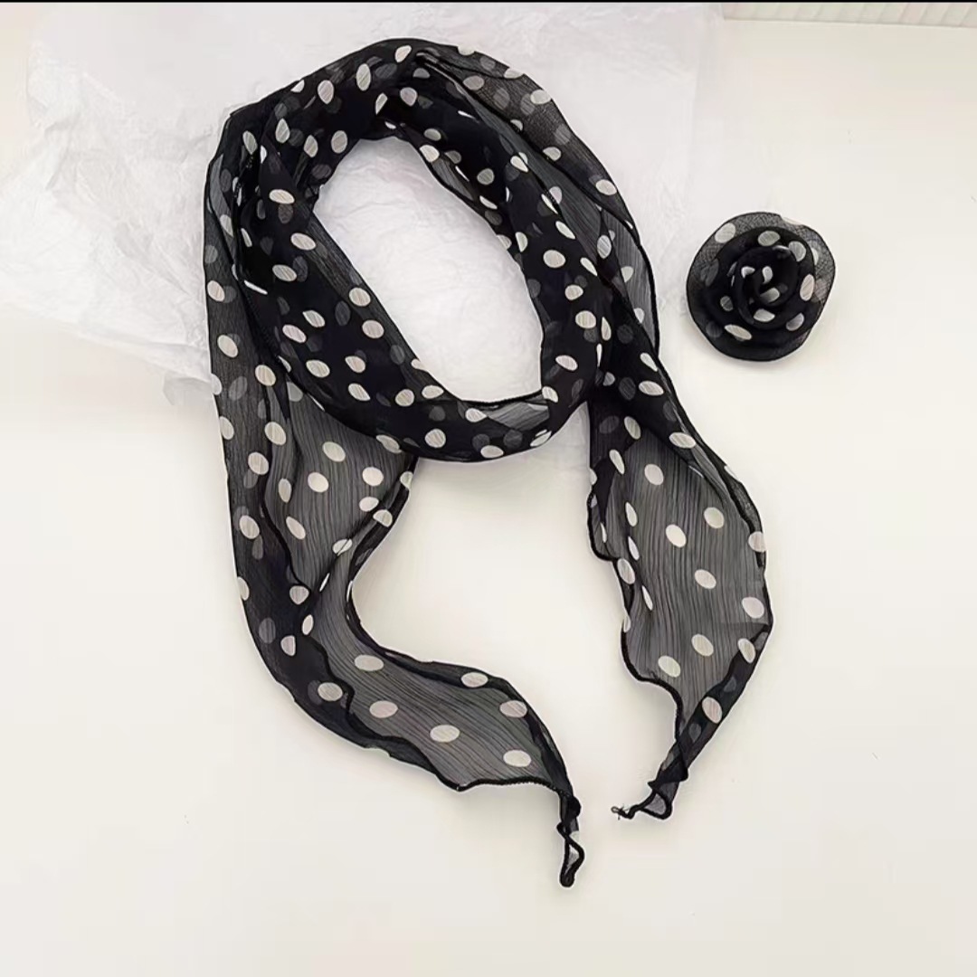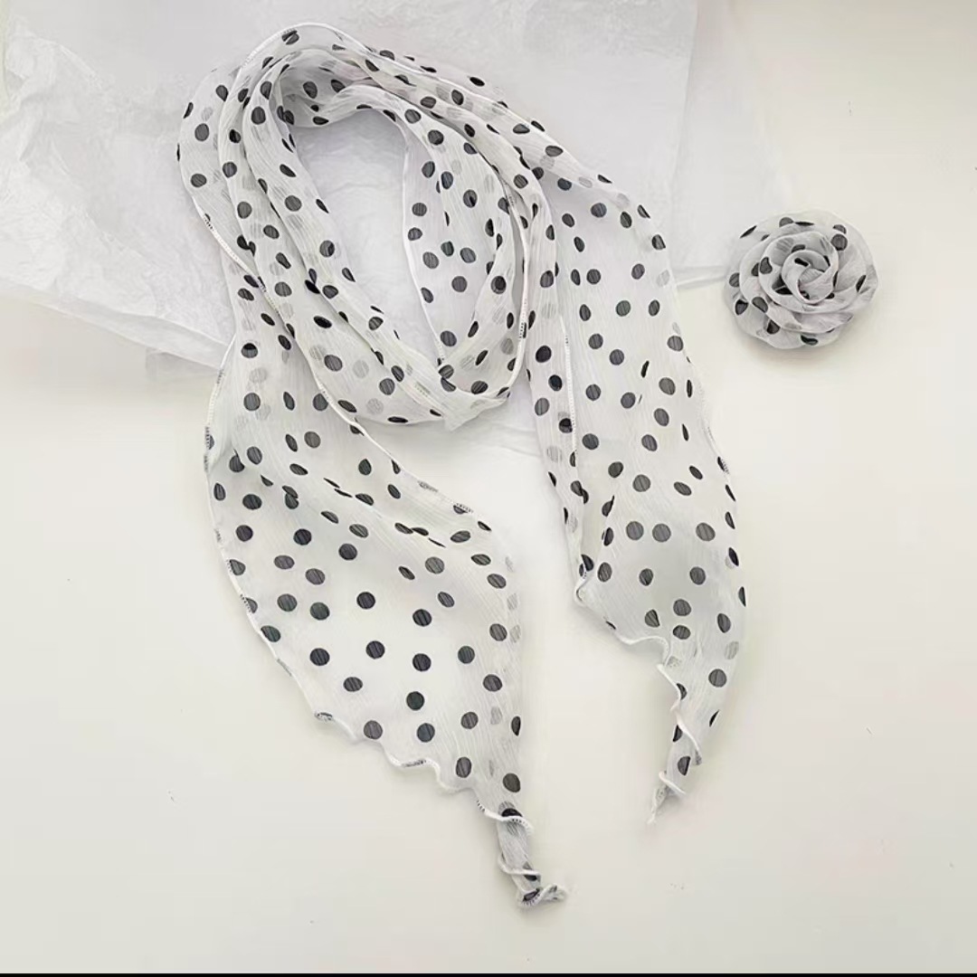새로운 도착 올매치 패션 스카프 선스크린 여성 스카프 얇은 우아한 리본 꽃 실크 스카프 헤어 밴드 패션 폴로 닷