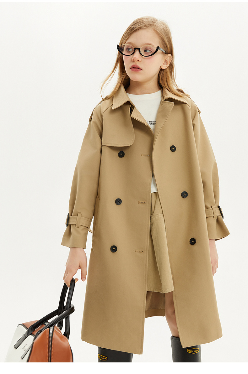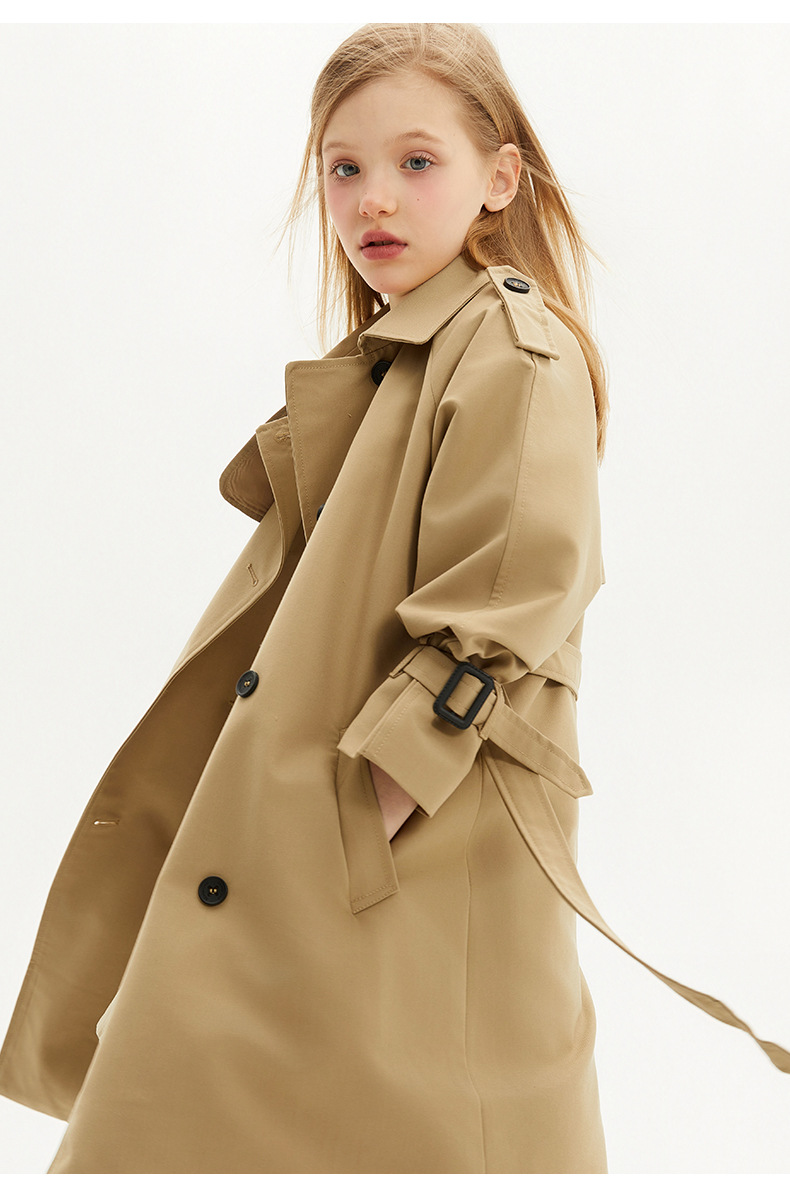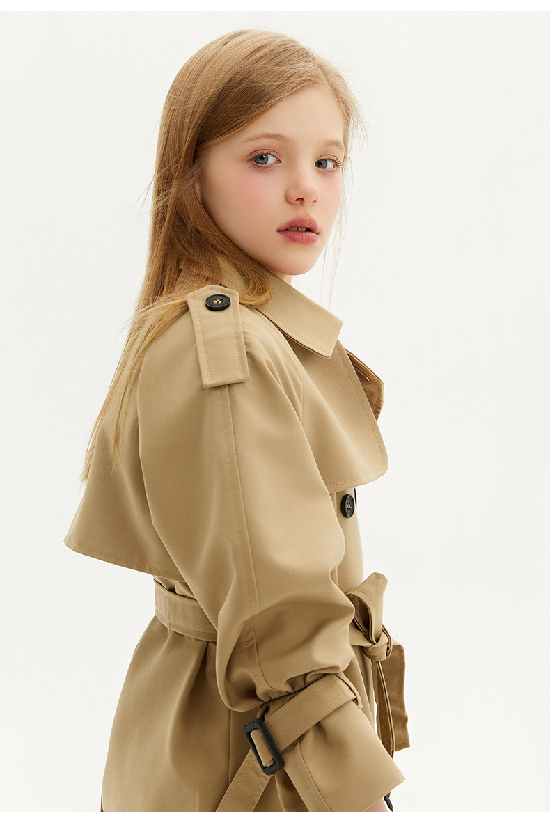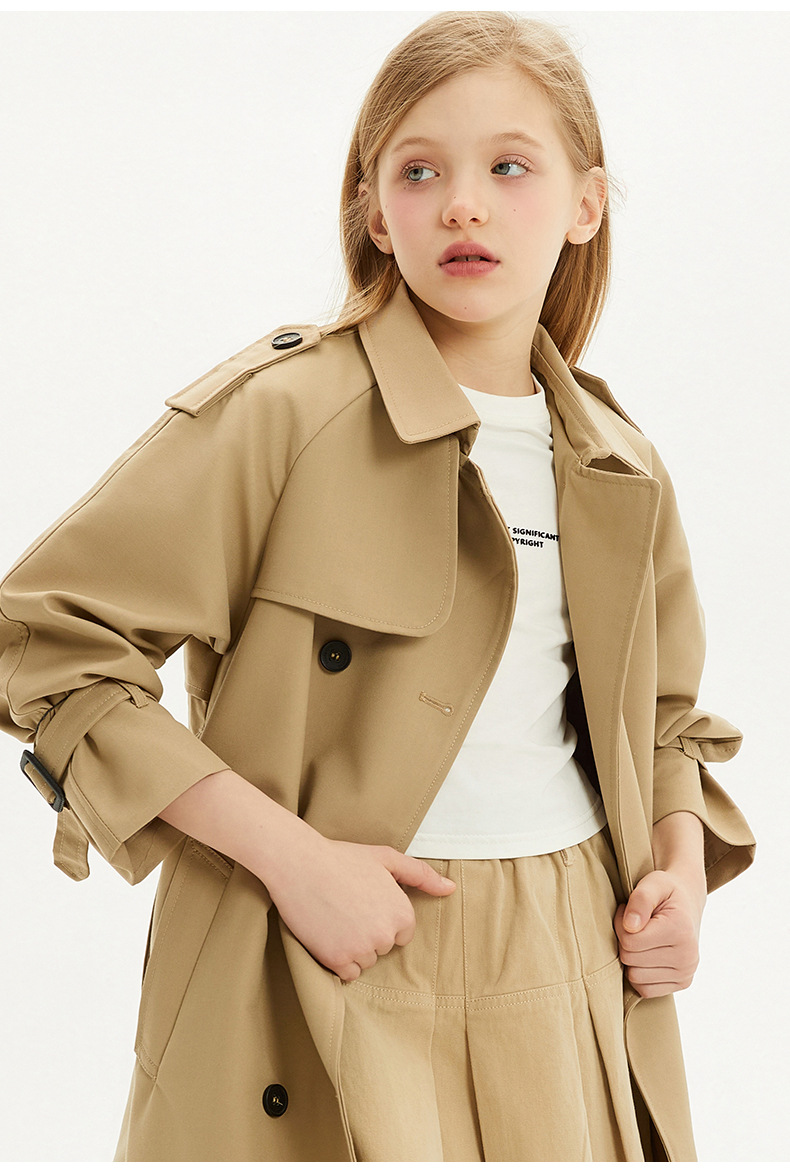 봄과 가을에 소녀들을위한 유럽과 미국 스타일의 윈드 브레이커 학생들이 학교에 갈 수 있도록 10-14 세 어린이를위한 새로운 긴 영국 허리 길이 코트스토어 가기