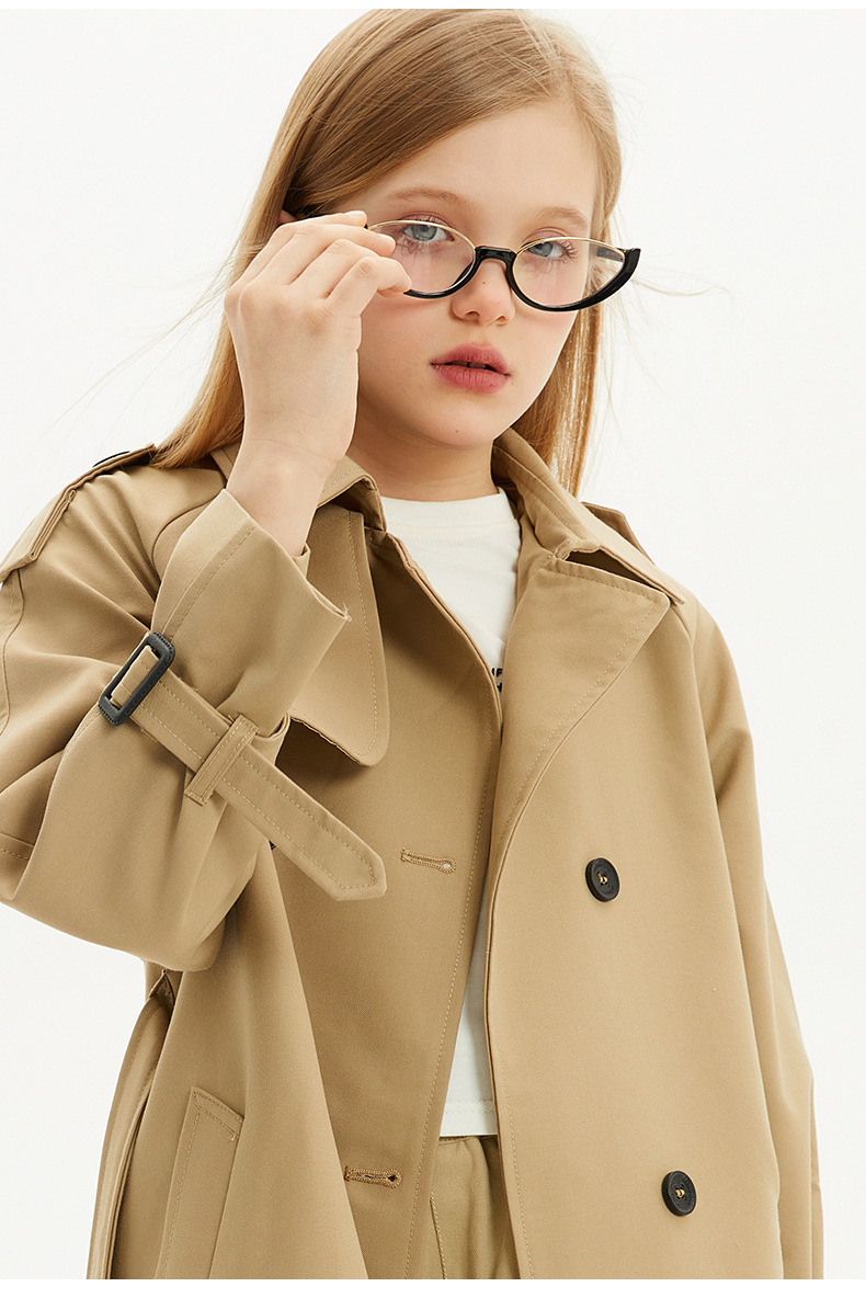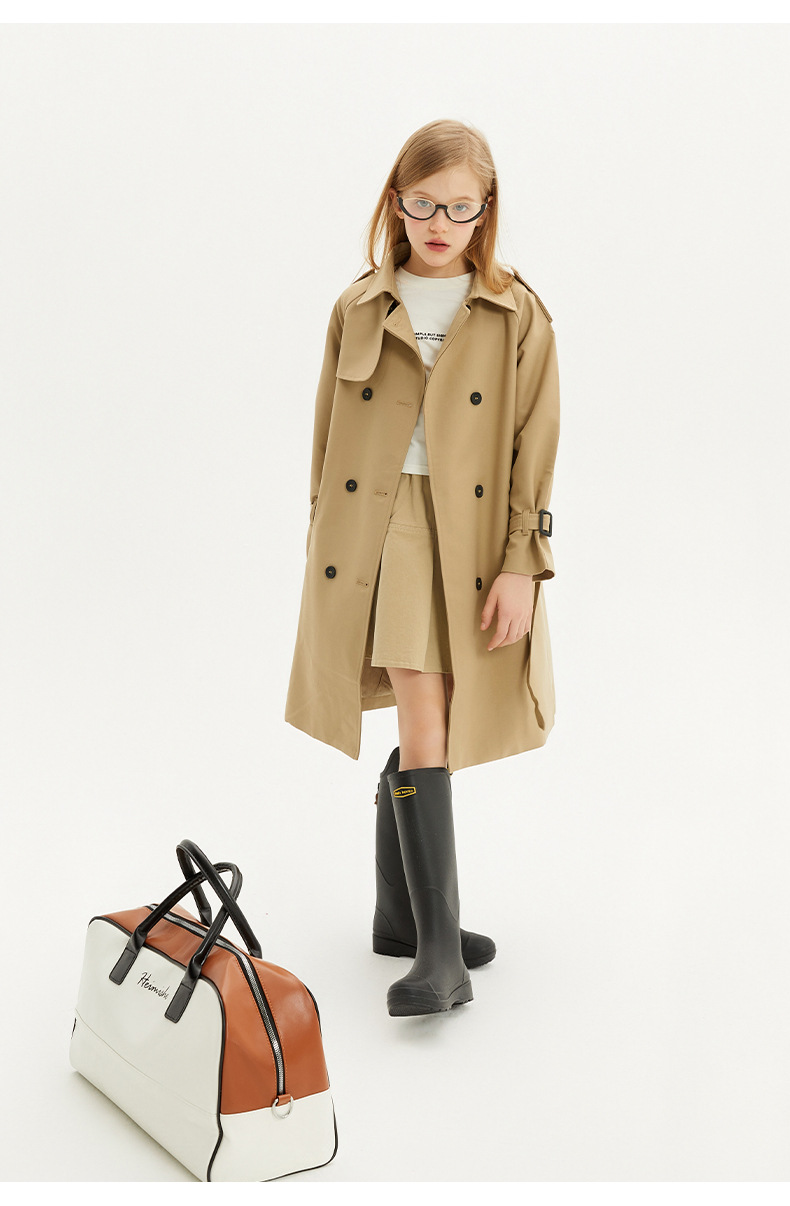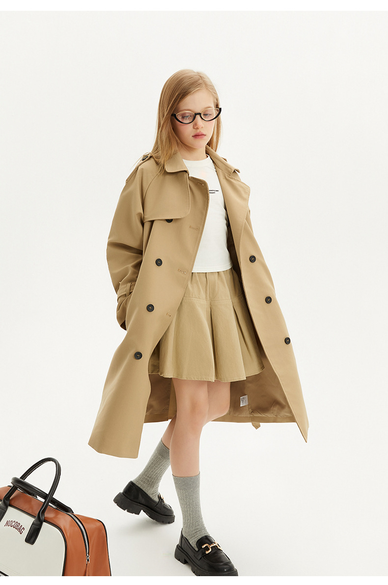 봄과 가을에 소녀들을위한 유럽과 미국 스타일의 윈드 브레이커 학생들이 학교에 갈 수 있도록 10-14 세 어린이를위한 새로운 긴 영국 허리 길이 코트스토어 가기