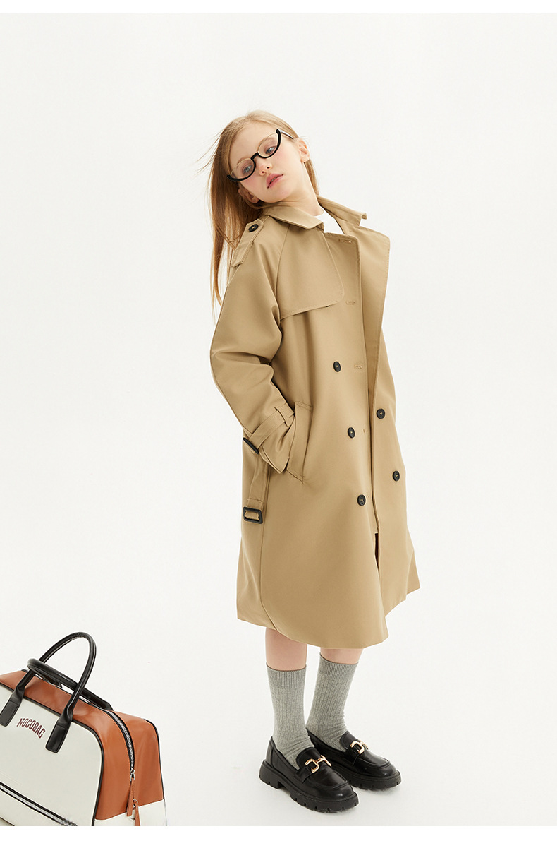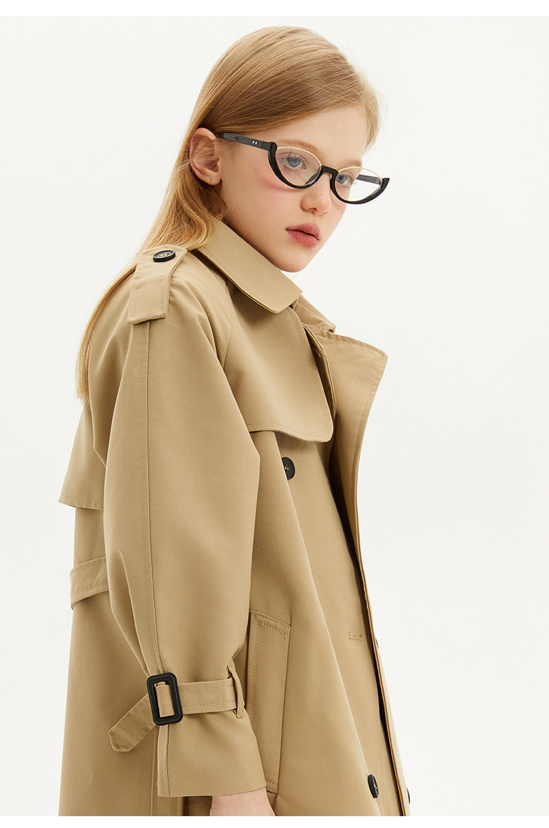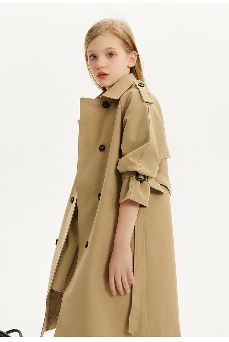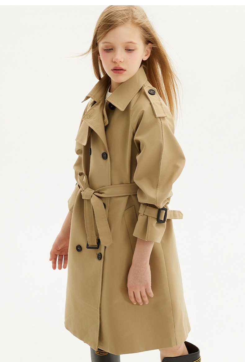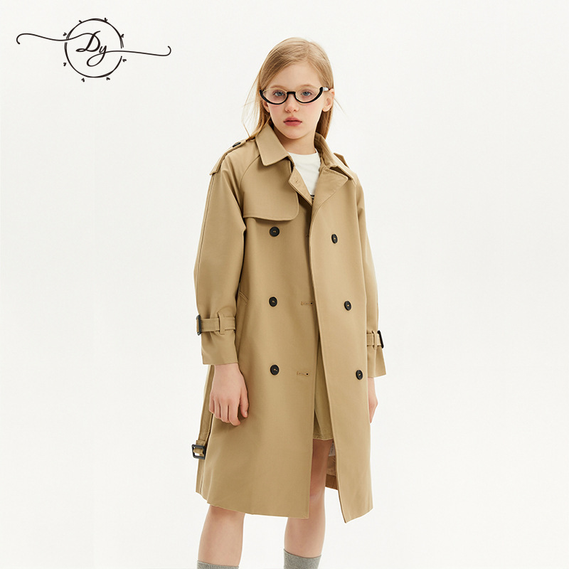 봄과 가을에 소녀들을위한 유럽과 미국 스타일의 윈드 브레이커 학생들이 학교에 갈 수 있도록 10-14 세 어린이를위한 새로운 긴 영국 허리 길이 코트