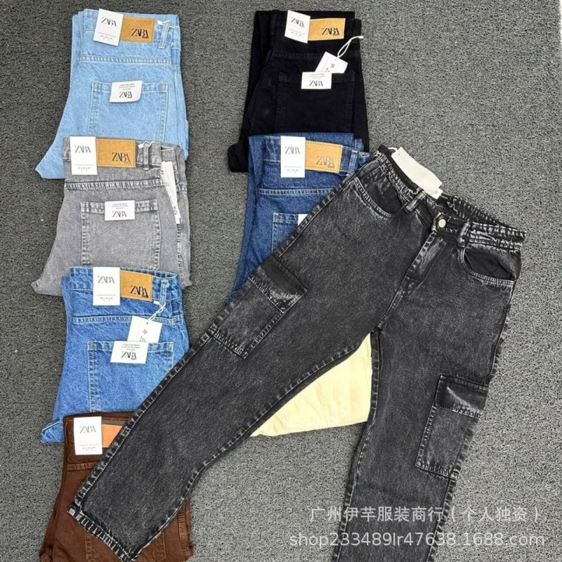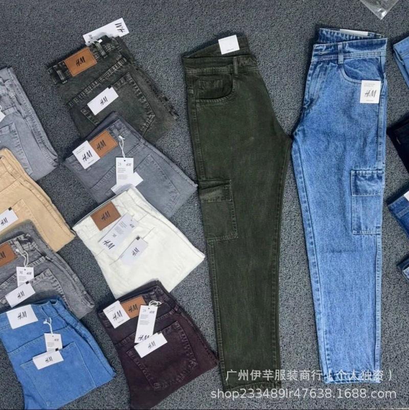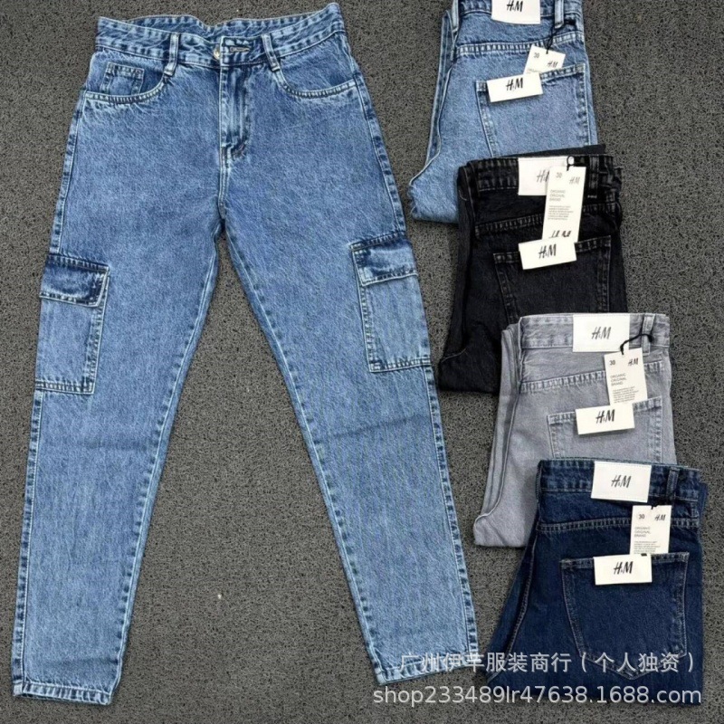 남성 청바지 유럽과 미국의 국경 간 남성 청바지 한국 패션 포켓 툴링 데님 바지 도매스토어 가기