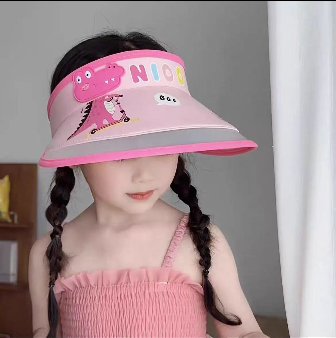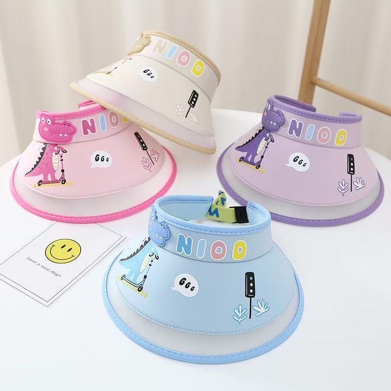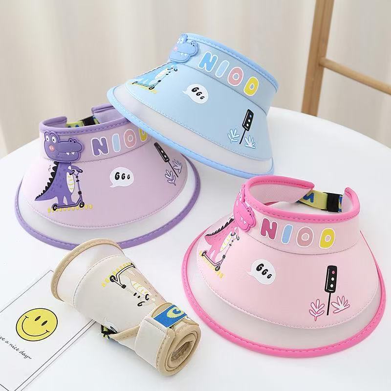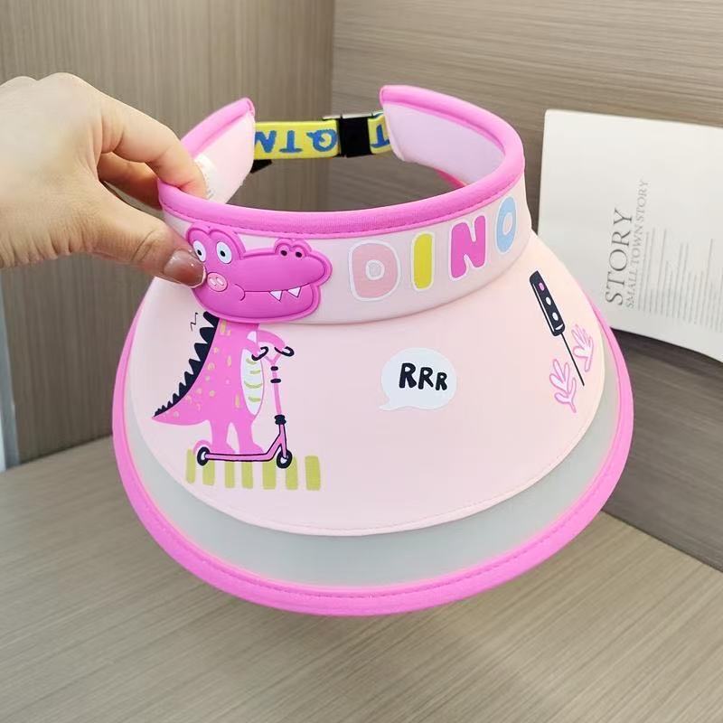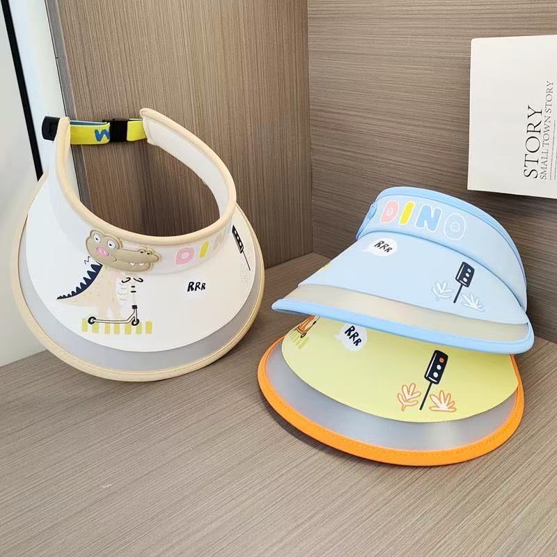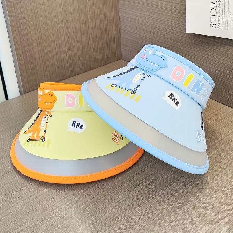 소년 소녀를위한 어린이 태양 모자 UV 보호 태양 모자 만화 공룡 아기 빈 탑 모자 여름 태양 모자