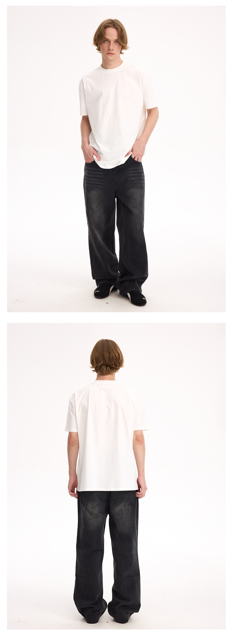 유탕 50수 수피마+소로나 시원한 느낌의 수피마 롱스테이플 코튼 통근 티셔츠 솔리드 컬러 박시핏 반팔 티셔츠