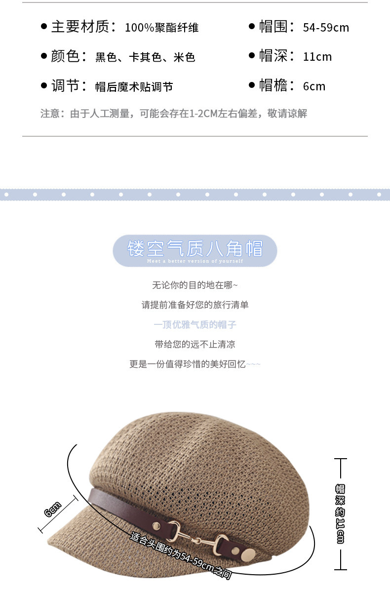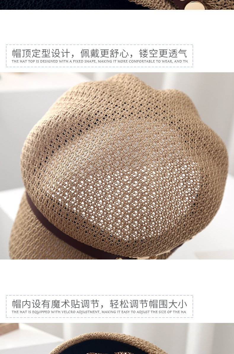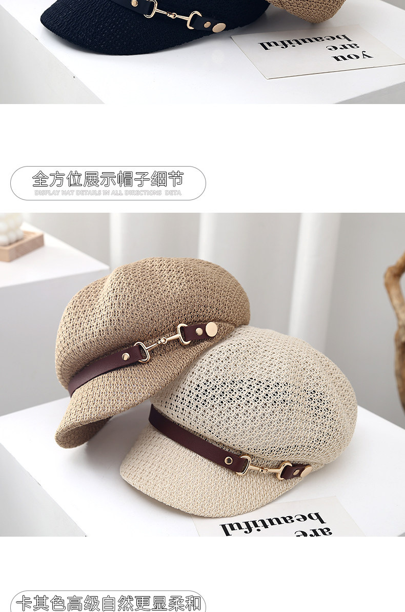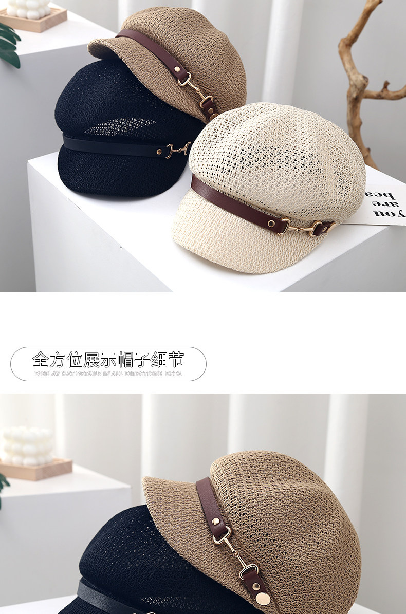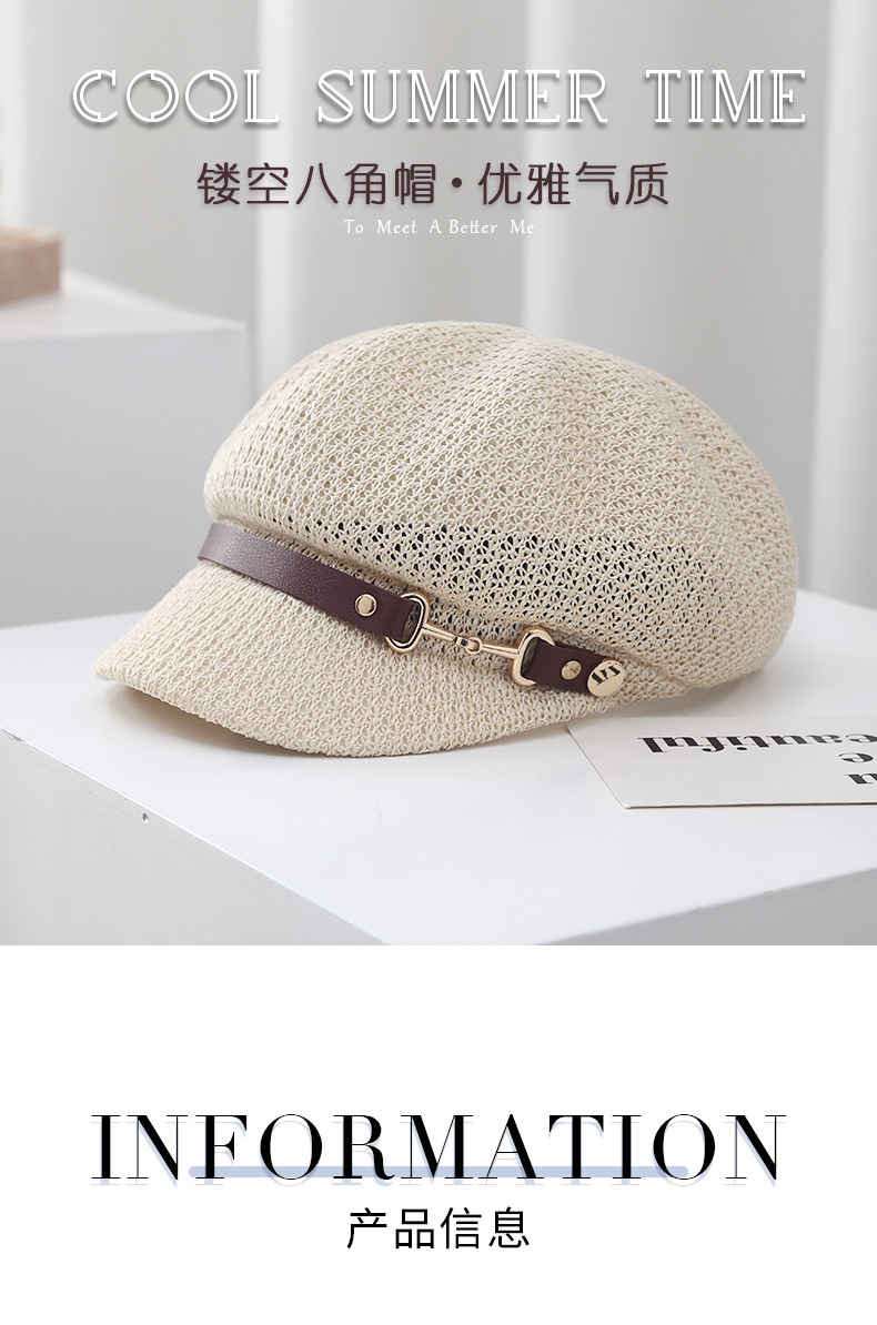 새로운 스타일의 속이 빈 통기성 팔각형 베레모 여성용 봄 여름용 자외선 차단 모자 한국식 다용도 화가 모자스토어 가기