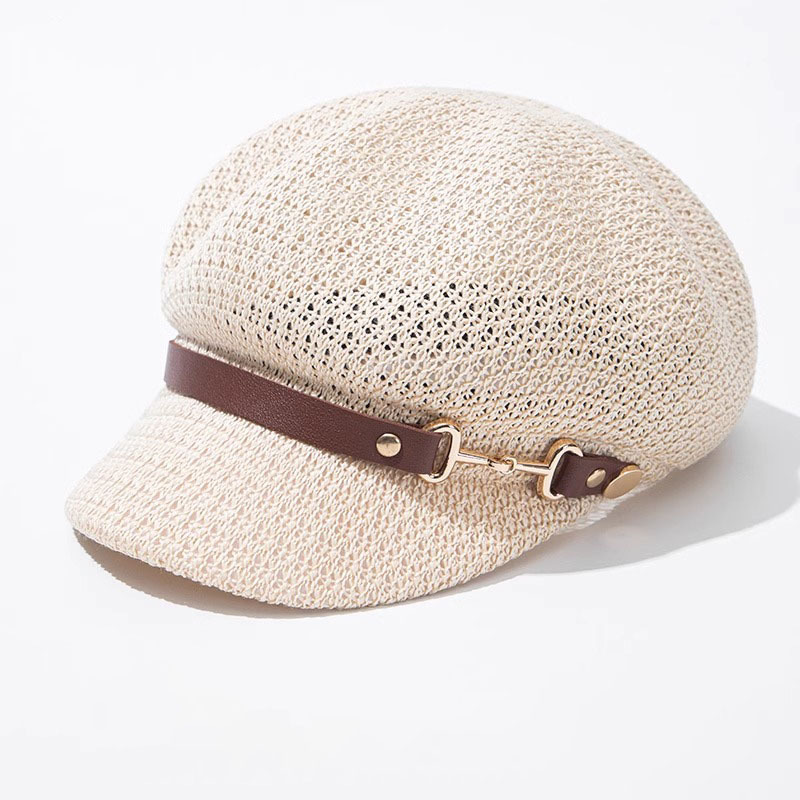 새로운 스타일의 속이 빈 통기성 팔각형 베레모 여성용 봄 여름용 자외선 차단 모자 한국식 다용도 화가 모자