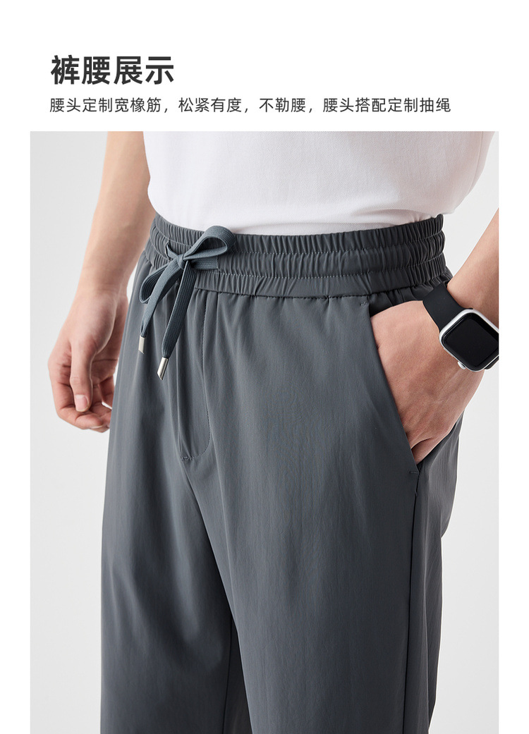 모마이크 쿨링 기능성 캐주얼 팬츠 남성 2026 여름 신상품 신축성 허리 남성용 아이스 실크 롱 팬츠 91199.스토어 가기