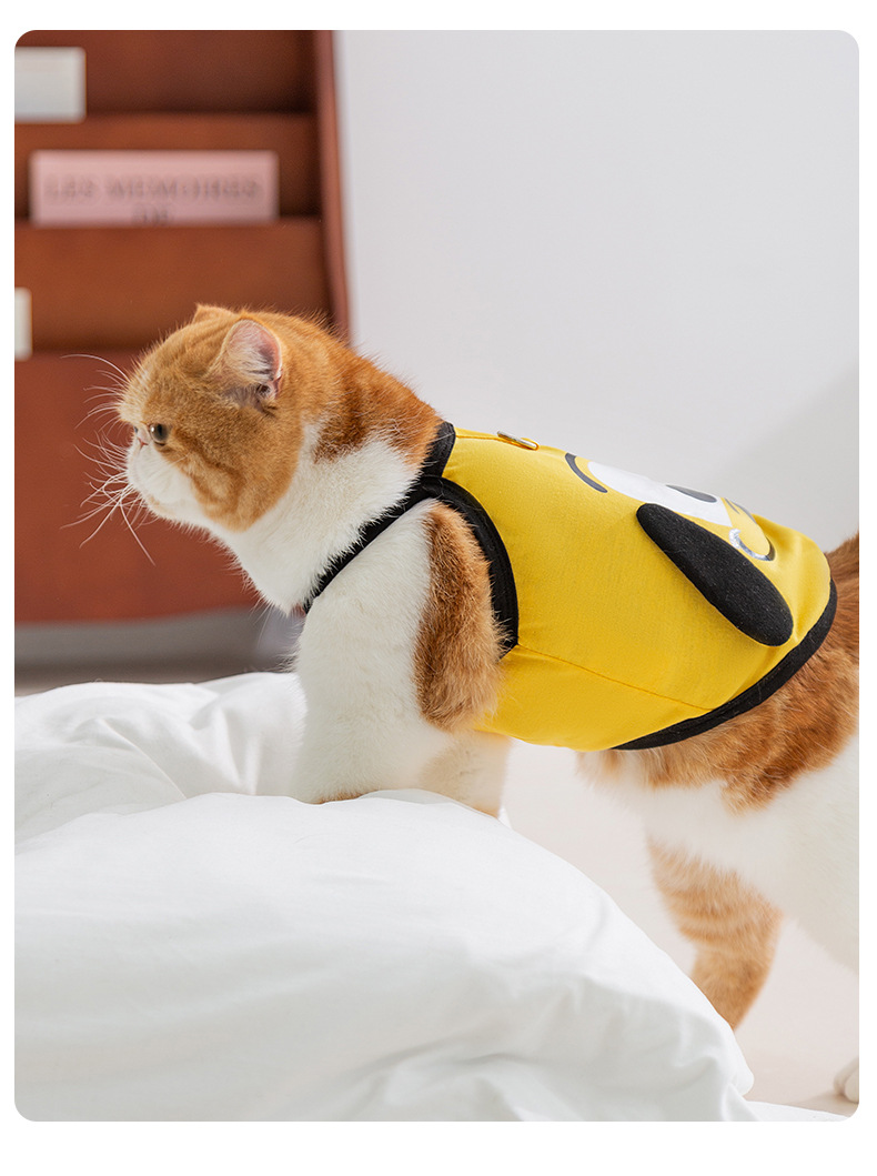 봄과 여름 얇은 고양이 옷 입체 귀 슬링 통기성 두 다리 옷 새끼 고양이 조끼 애완 동물 옷스토어 가기