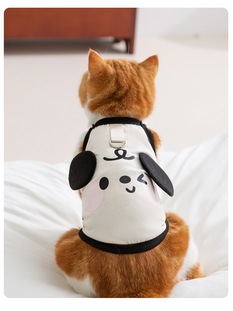 봄과 여름 얇은 고양이 옷 입체 귀 슬링 통기성 두 다리 옷 새끼 고양이 조끼 애완 동물 옷