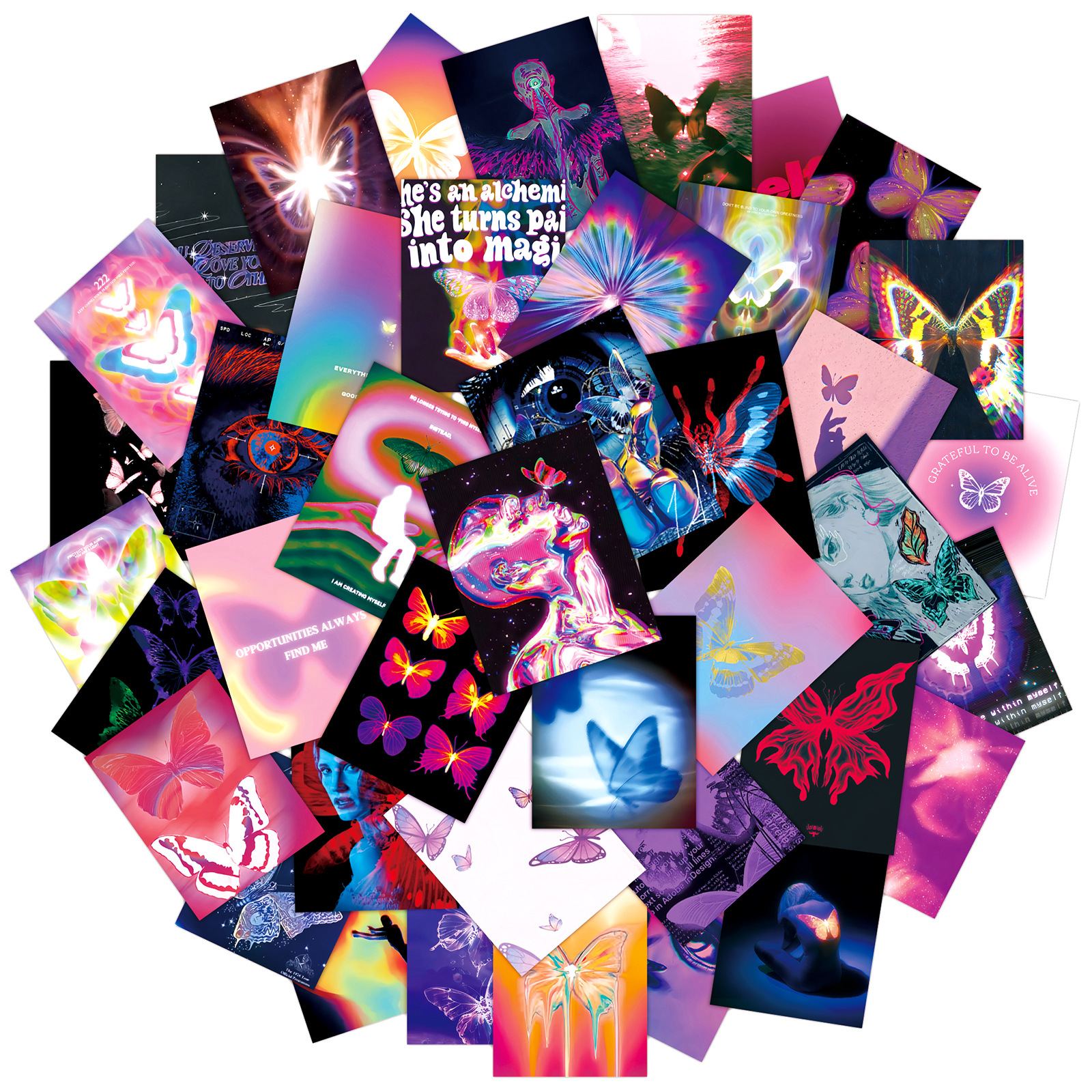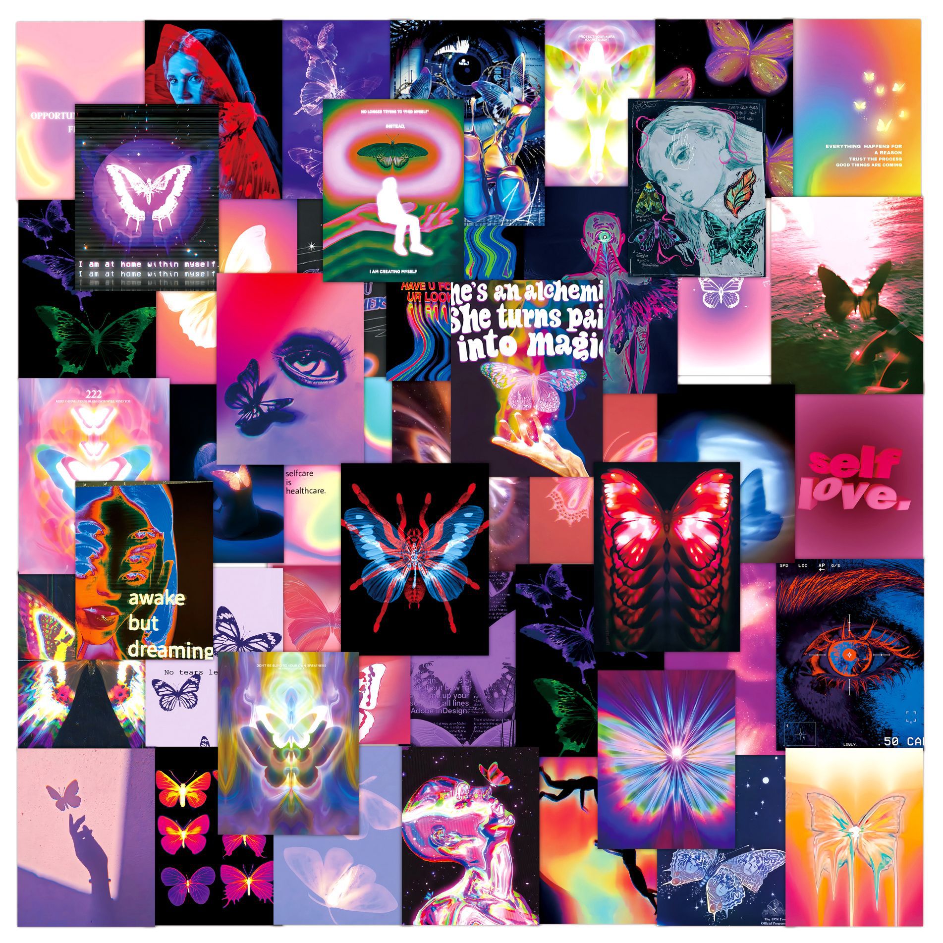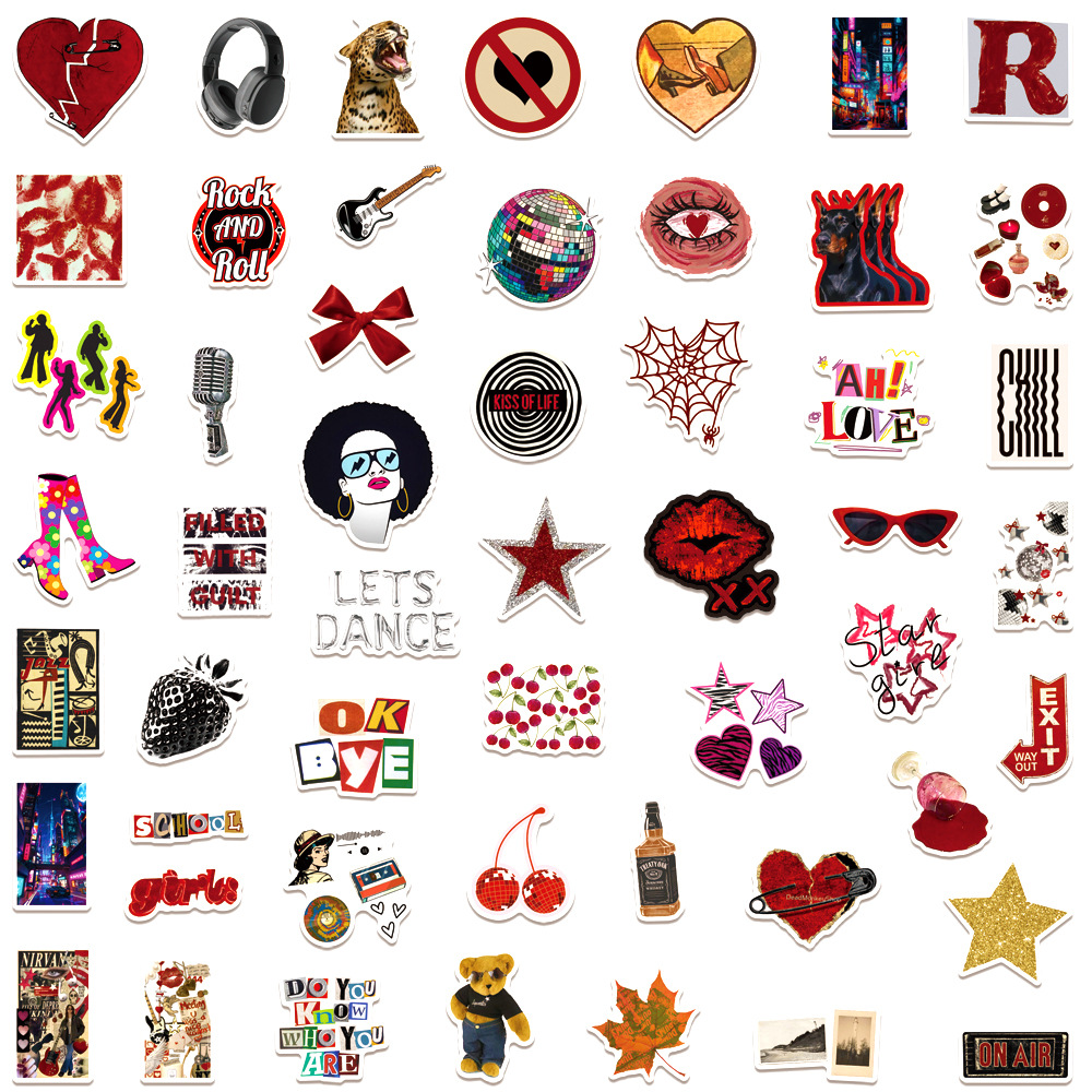 50 다운타운 Y2K 여자 낙서 스티커 물 컵 장식 손 계정 레트로 현대 디스코 스티커