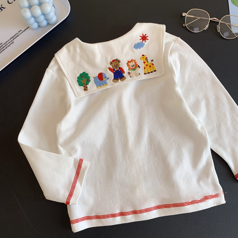 일본의 새로운면 긴 소매 t 바닥 셔츠! 어린이 아기 귀여운 만화 자수 옷깃 셔츠 탑 티셔츠