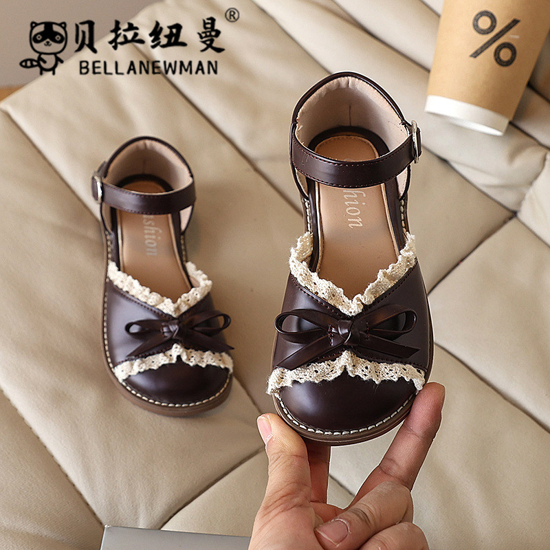 여자 활 레이스 공주 신발 봄과 여름 2025 새로운 한국 스타일 어린이 발가락 샌들 학생 부드러운 단독 신발스토어 가기