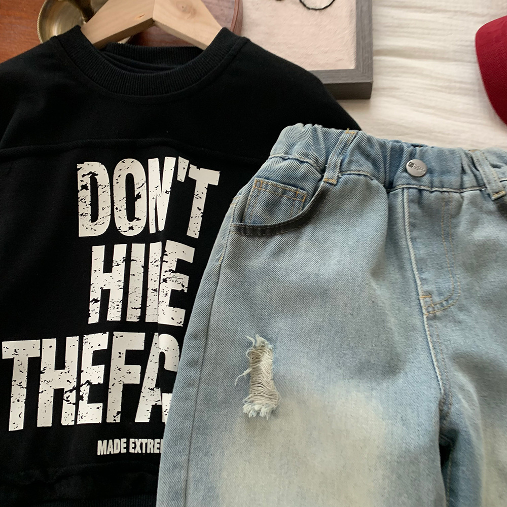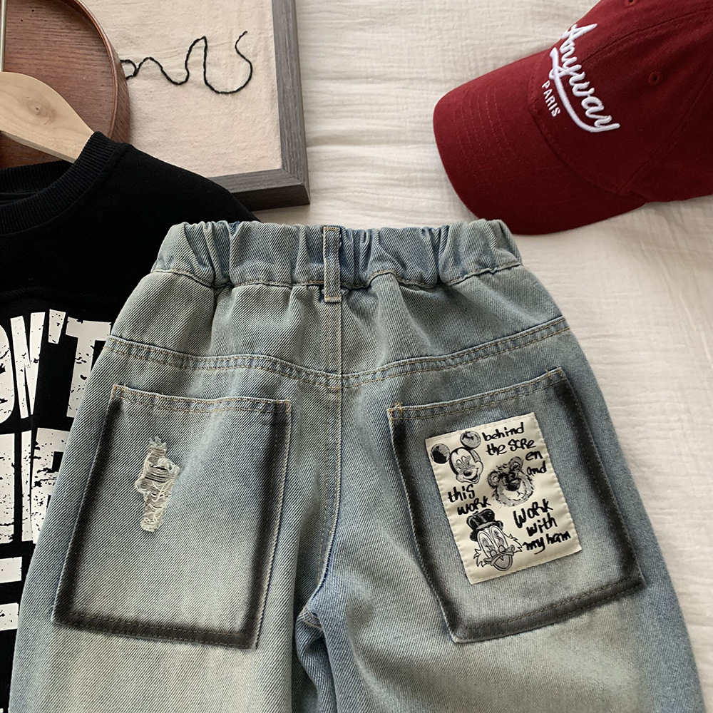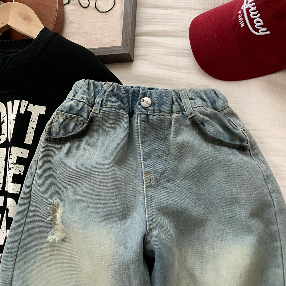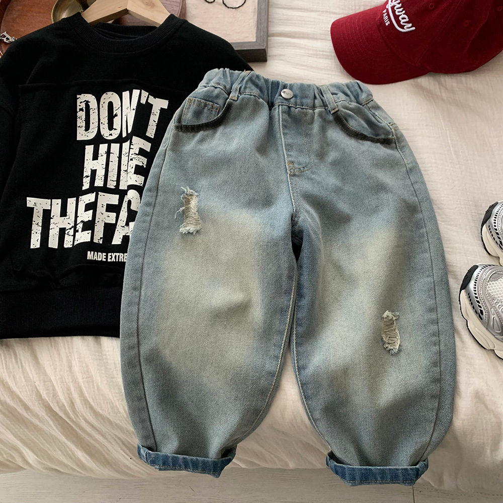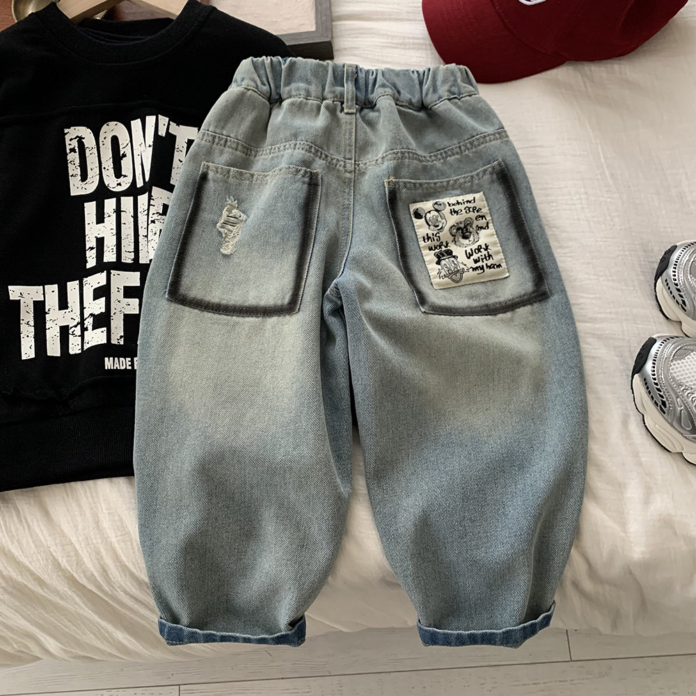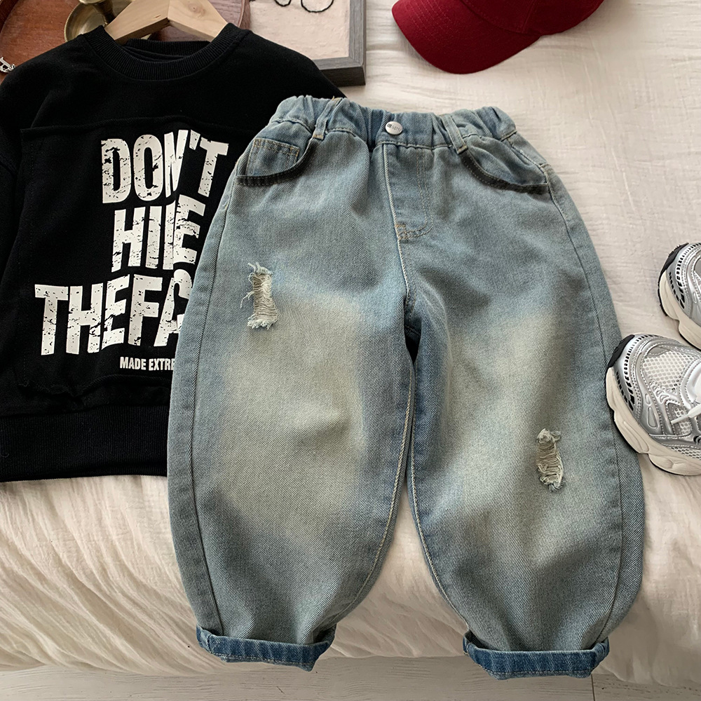 어린이 소년의 봄 데님 바지 2025 새로운 한국 봄 가을 어린이 봄 캐주얼 바지스토어 가기