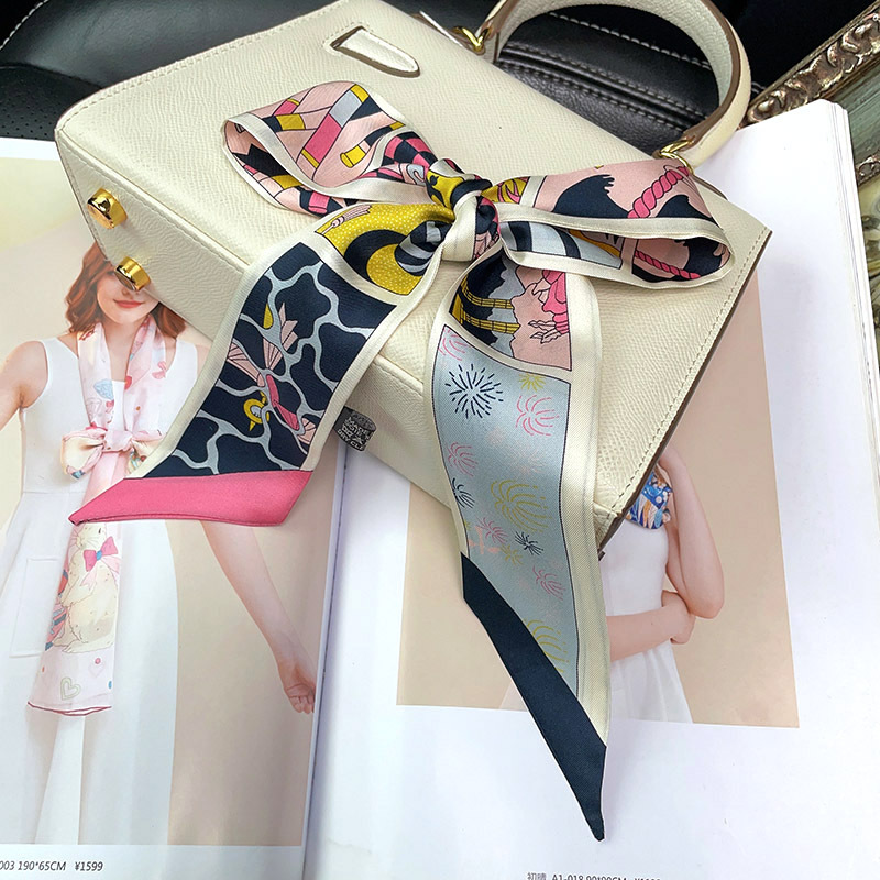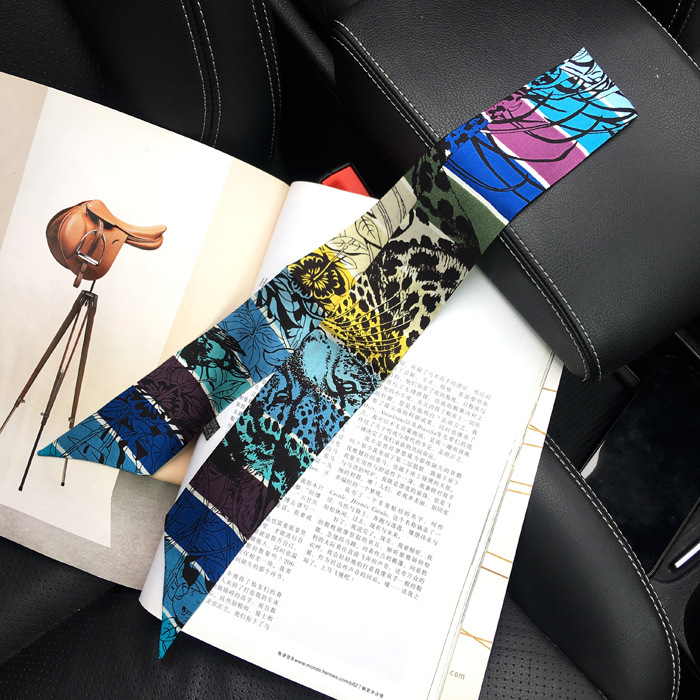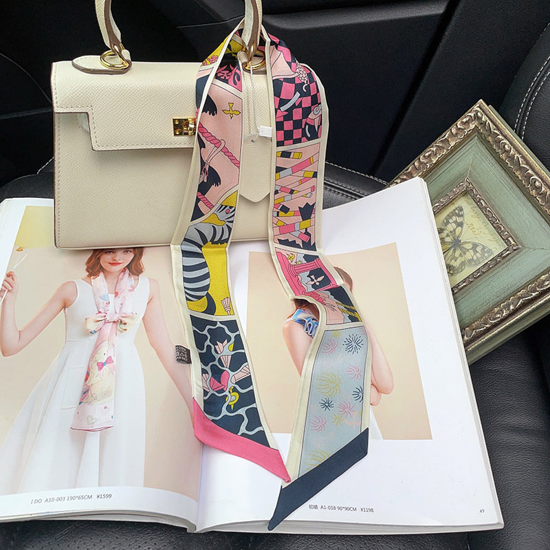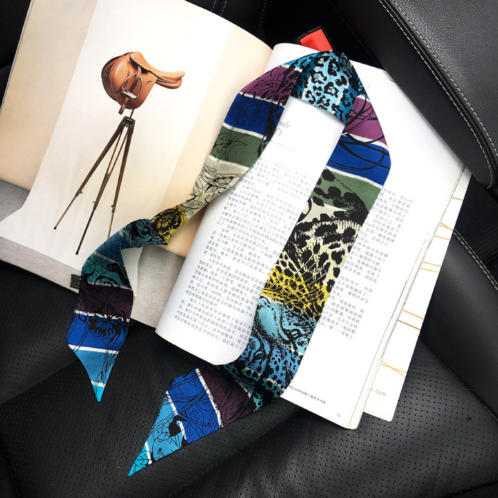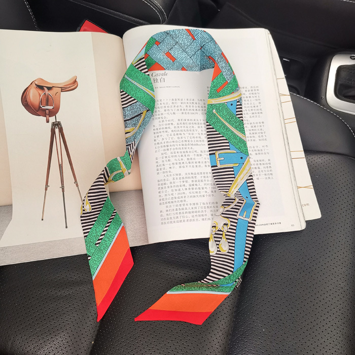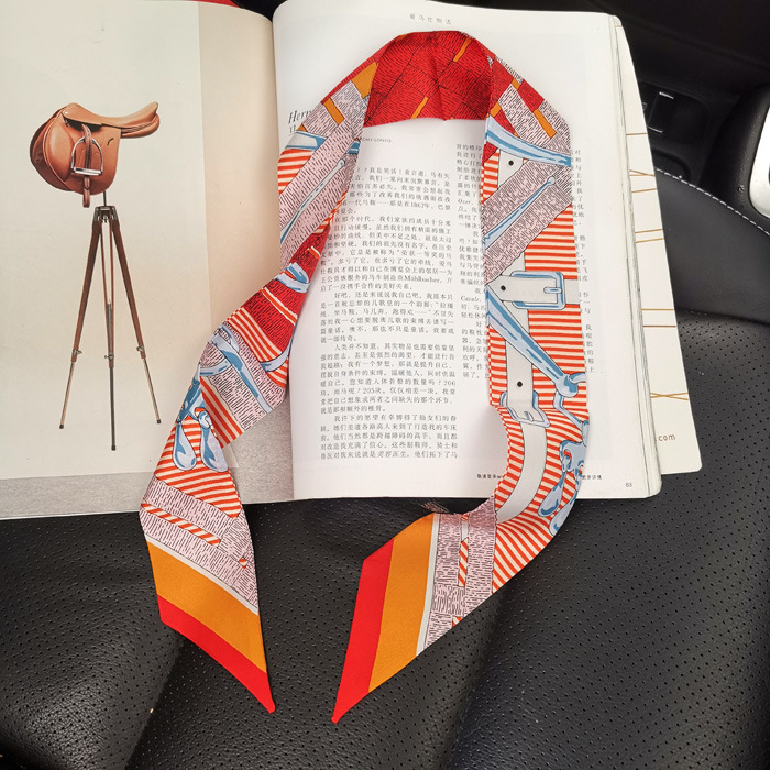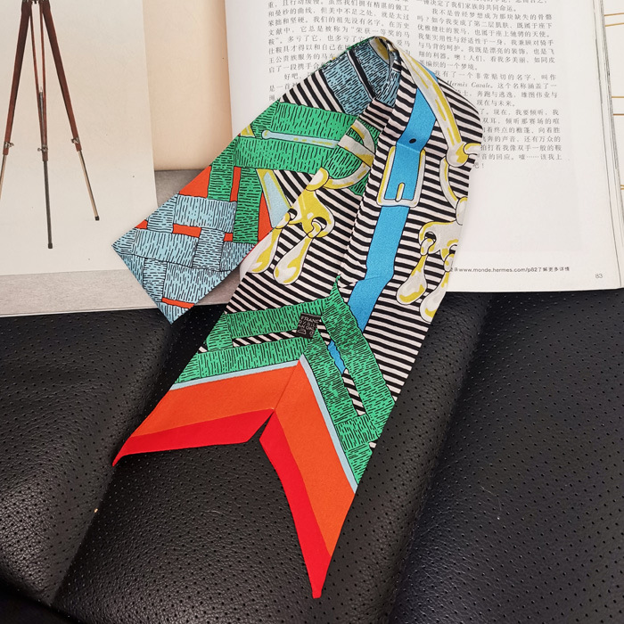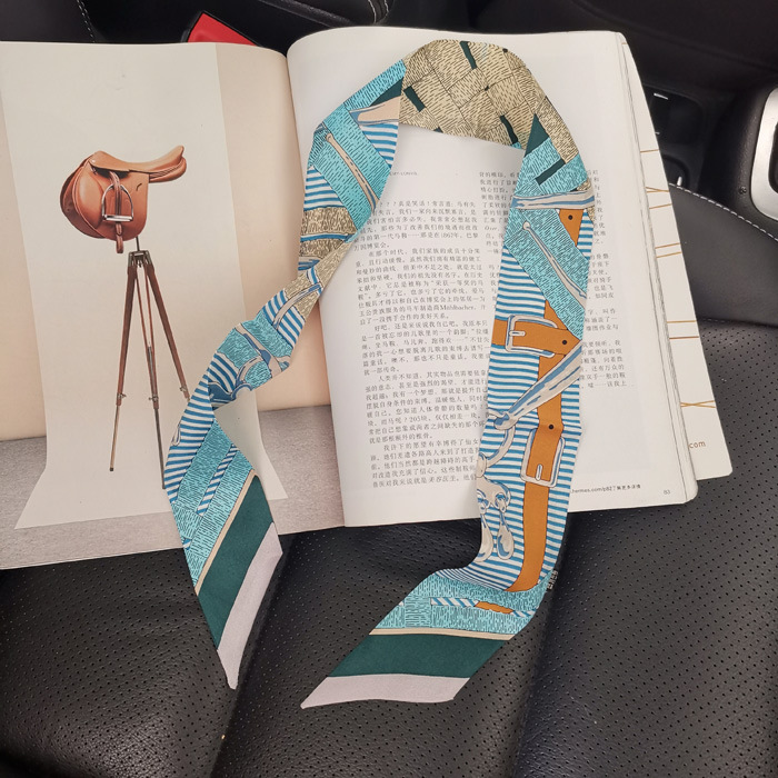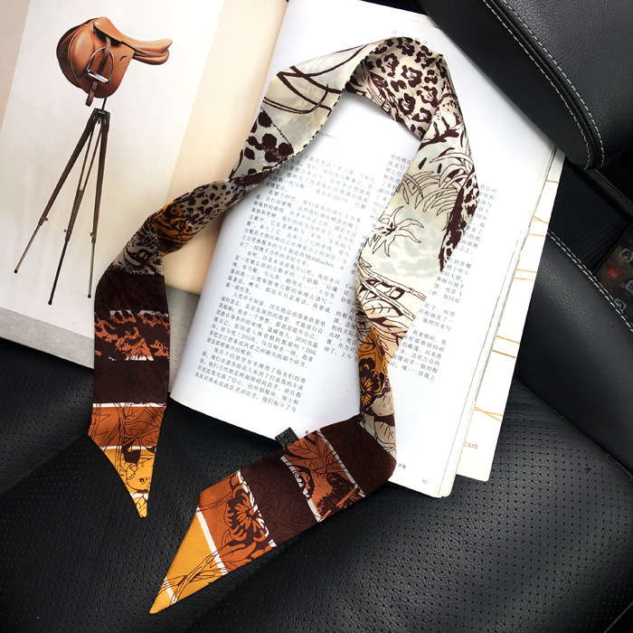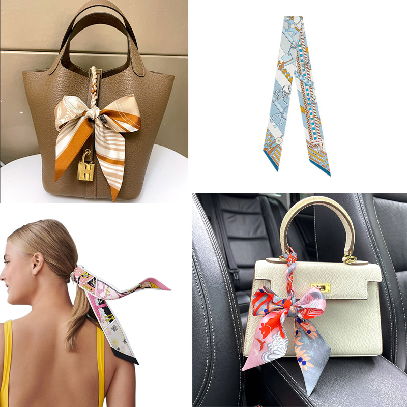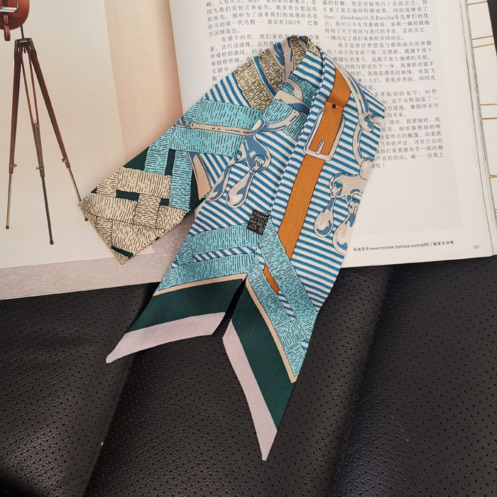 한국식 젠비 넥타이 가방 손잡이 작은 실크 스카프 고급 가방 손잡이 리본 스카프 목 보호 스카프 골드 박차 스카프