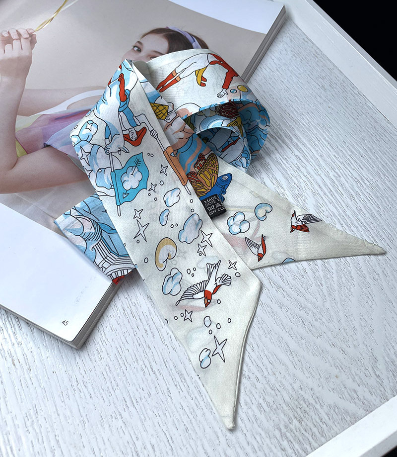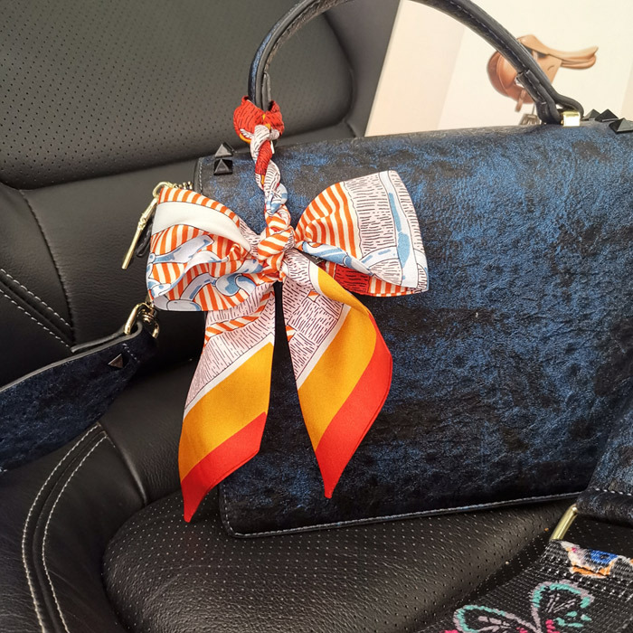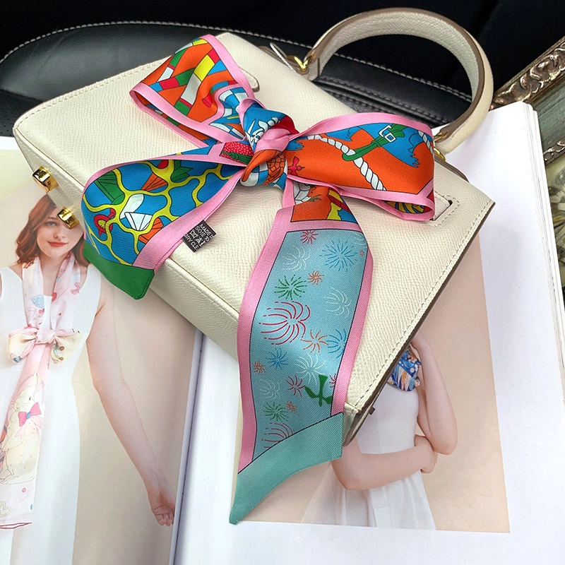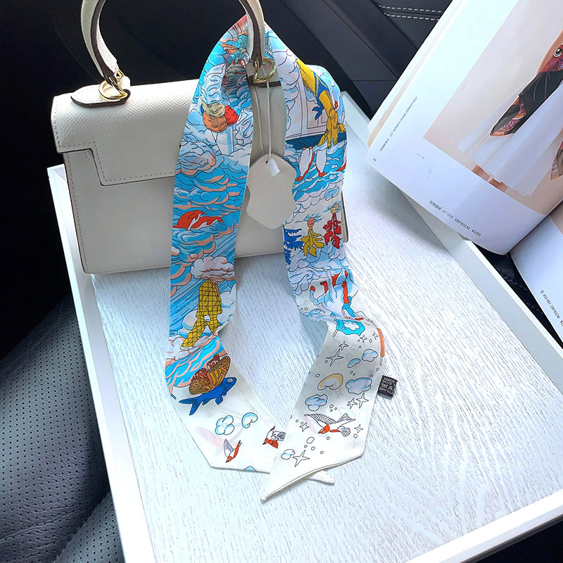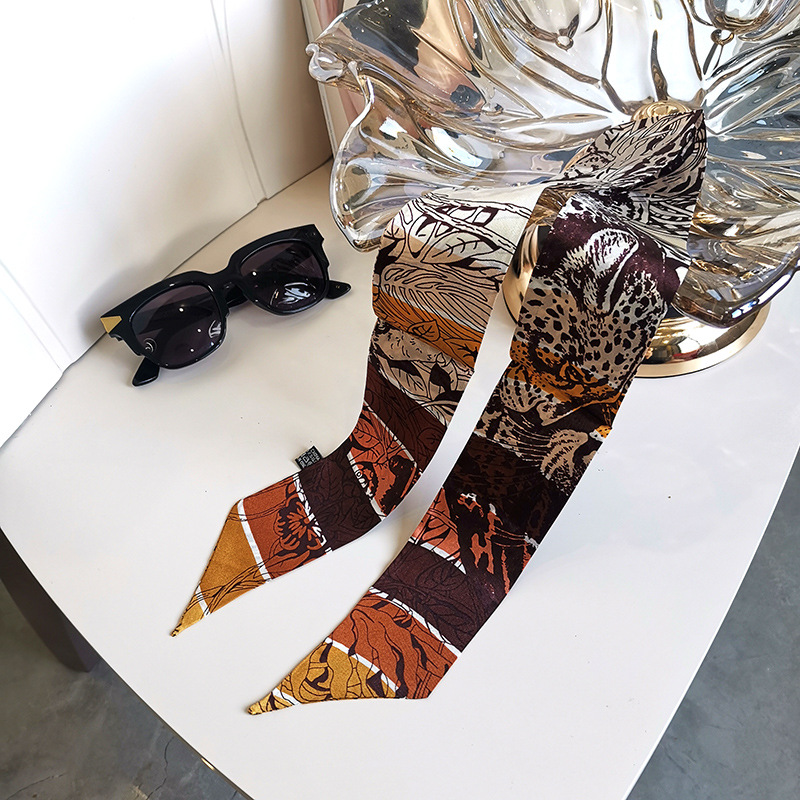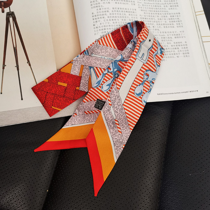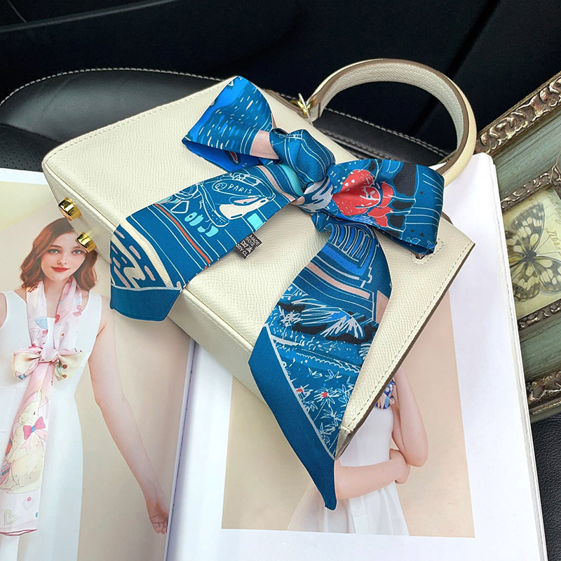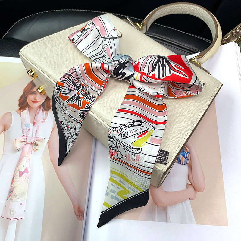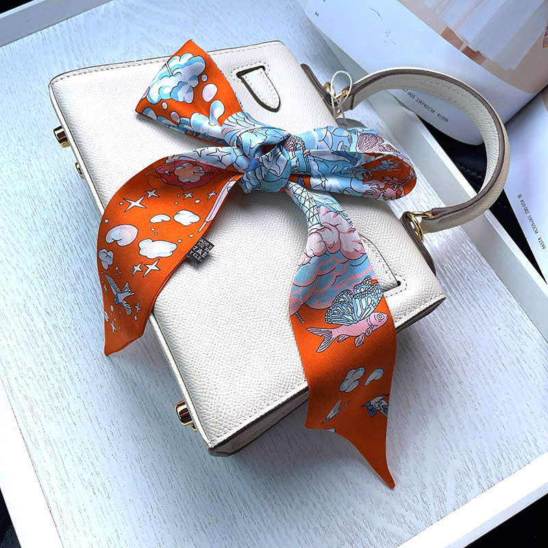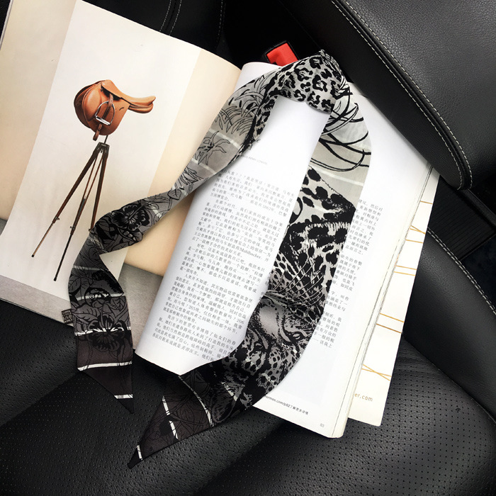 한국식 젠비 넥타이 가방 손잡이 작은 실크 스카프 고급 가방 손잡이 리본 스카프 목 보호 스카프 골드 박차 스카프