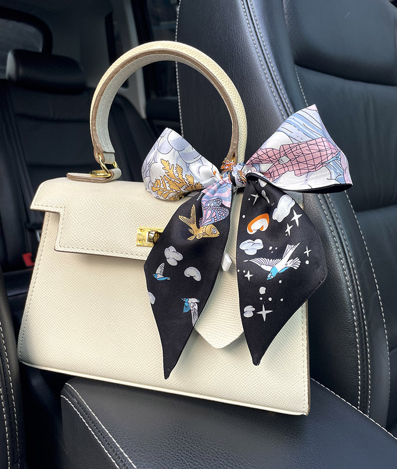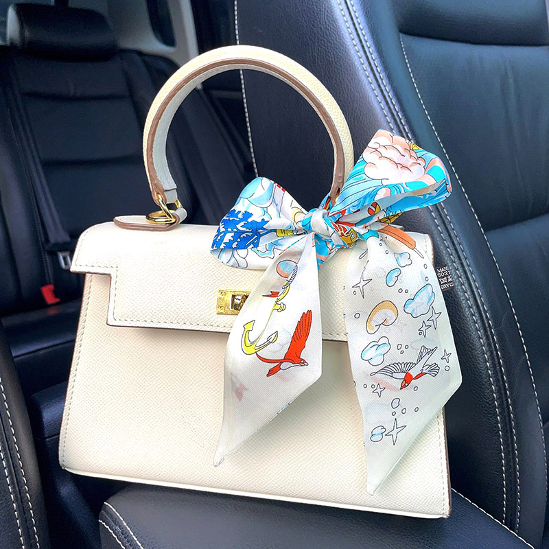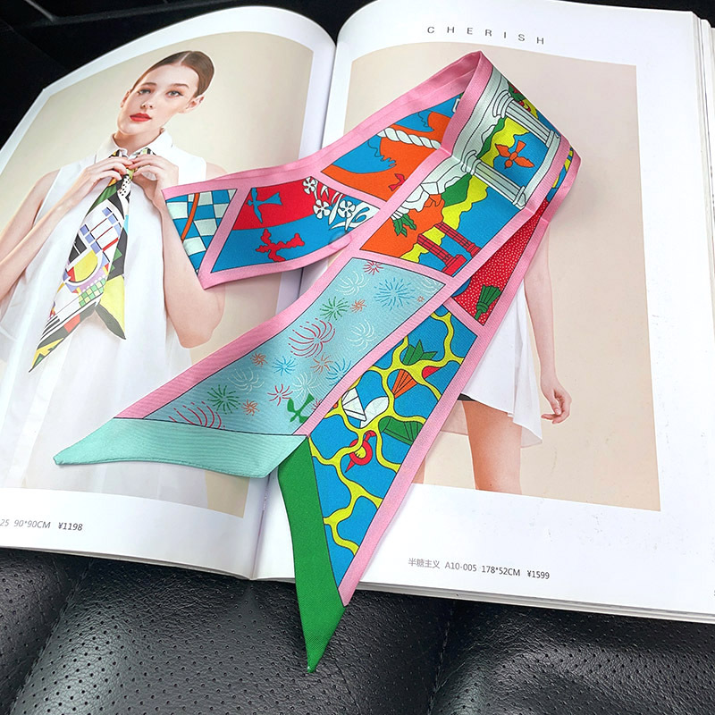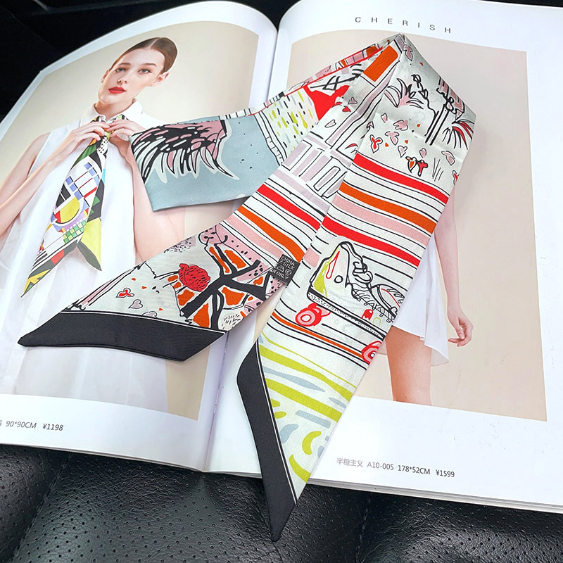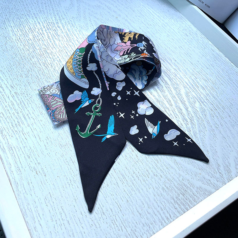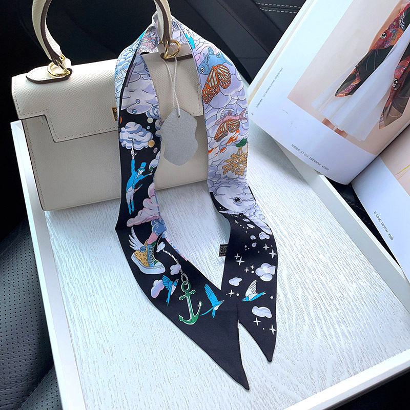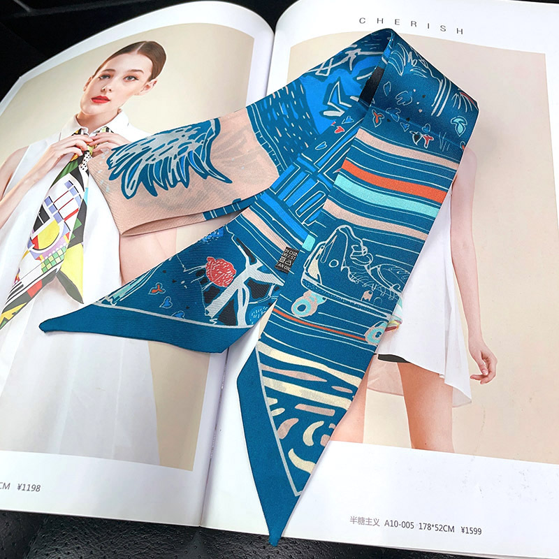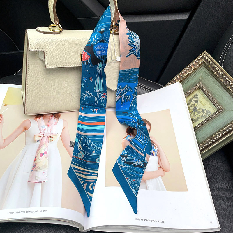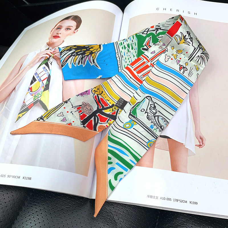 한국식 젠비 넥타이 가방 손잡이 작은 실크 스카프 고급 가방 손잡이 리본 스카프 목 보호 스카프 골드 박차 스카프