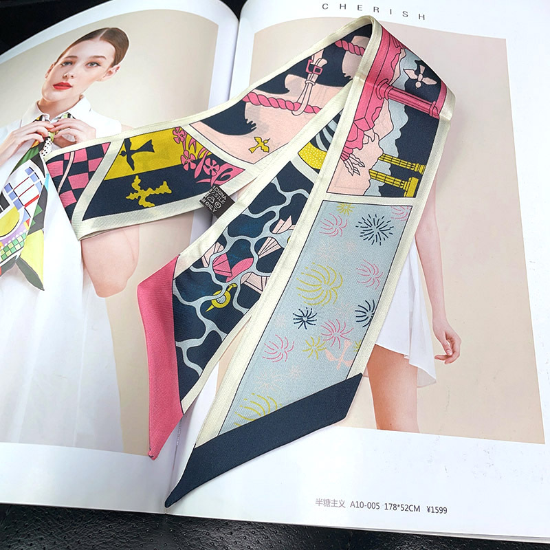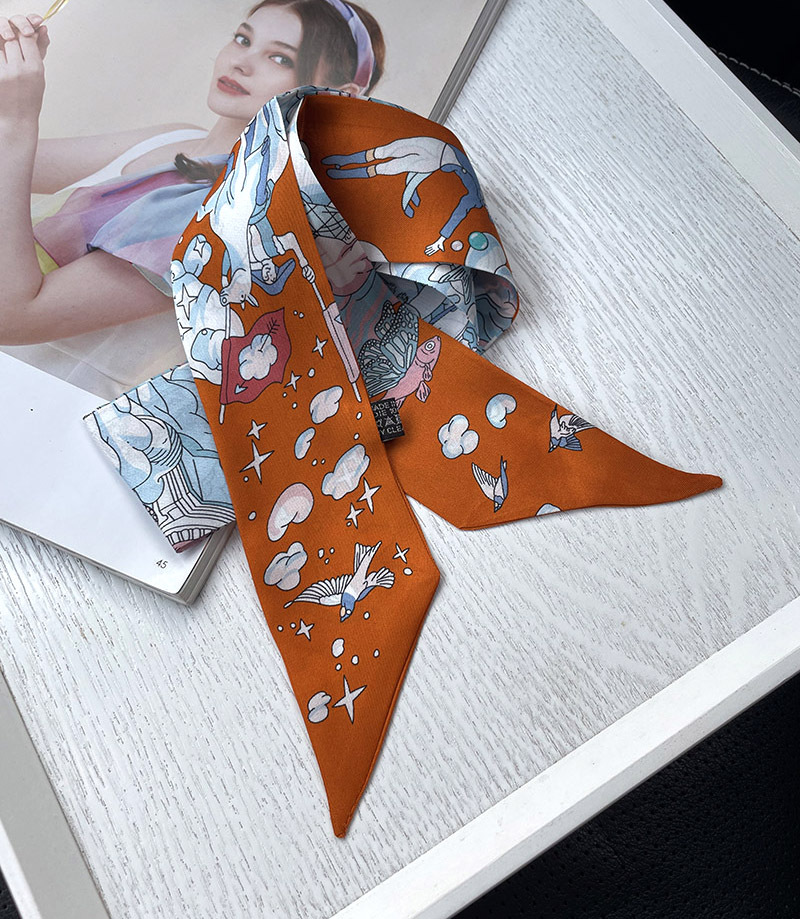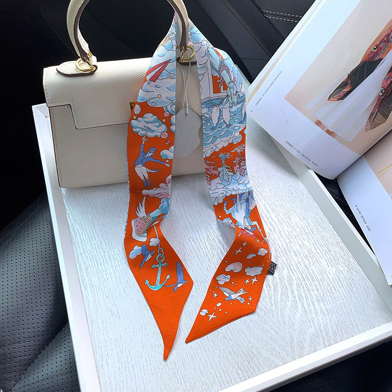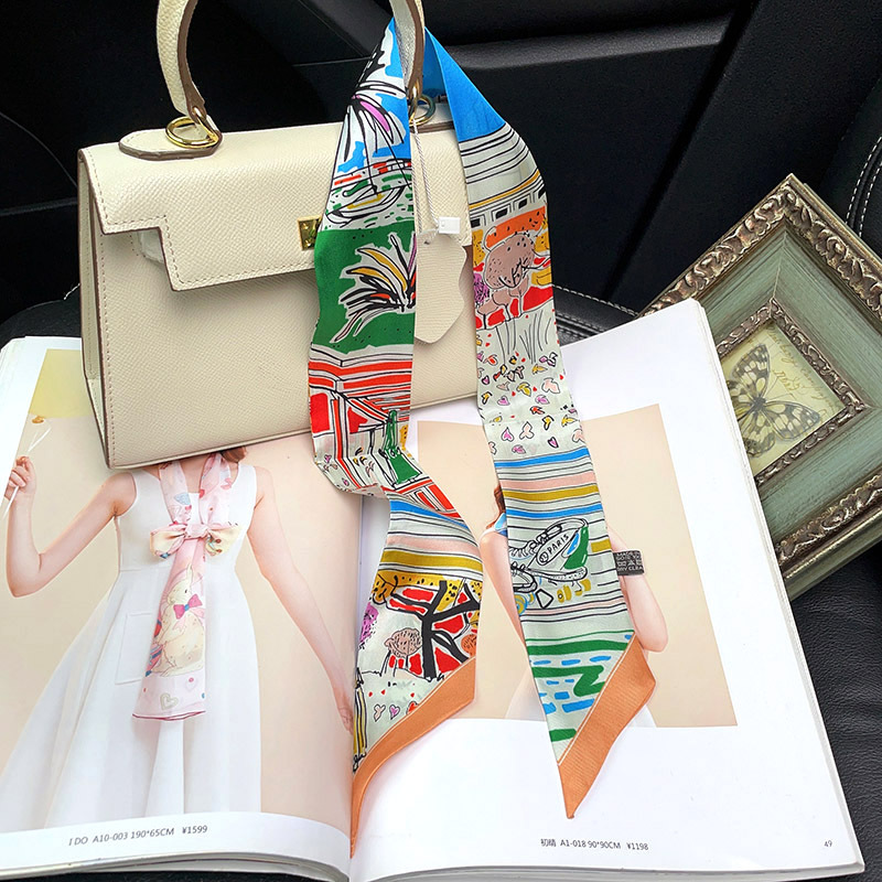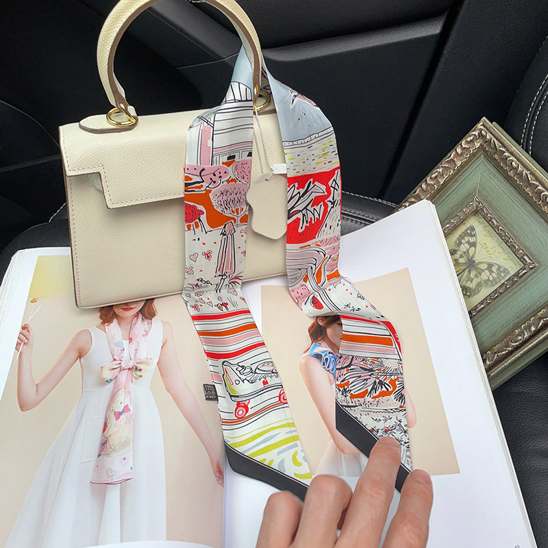 한국식 젠비 넥타이 가방 손잡이 작은 실크 스카프 고급 가방 손잡이 리본 스카프 목 보호 스카프 골드 박차 스카프스토어 가기