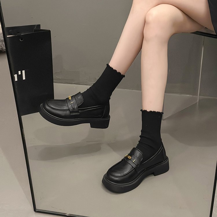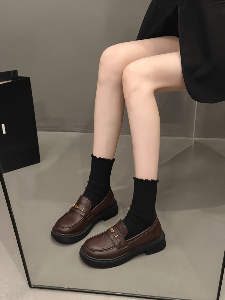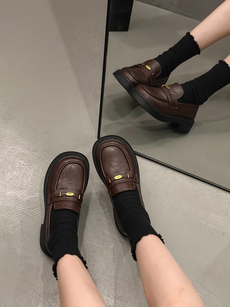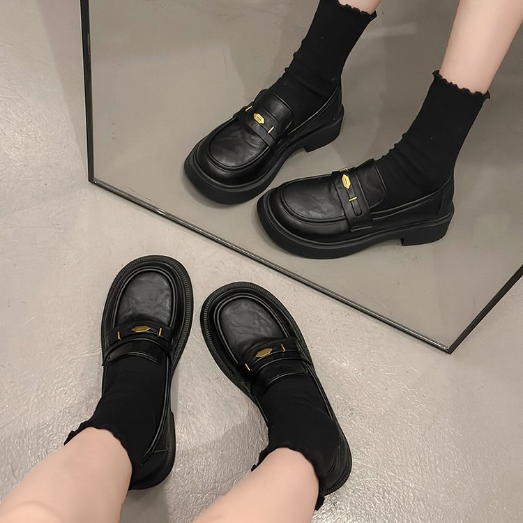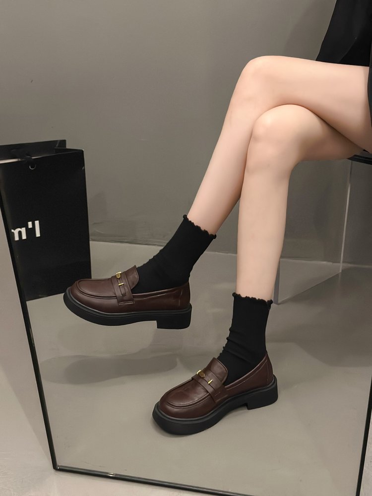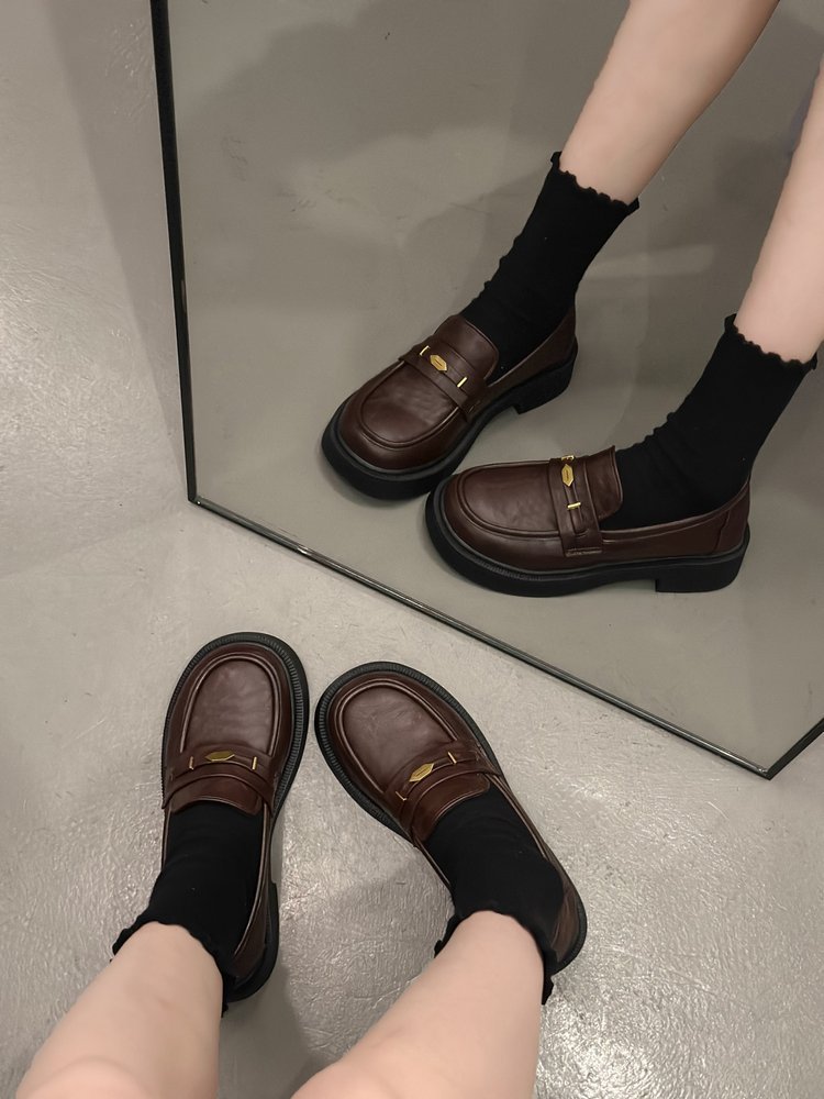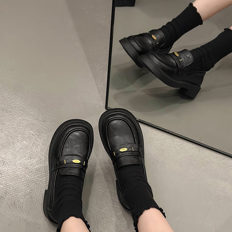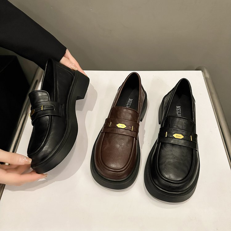 여성을 위한 고급 복고풍 영국식 로퍼 2025 새로운 다용도 금속 통근 부드러운 밑창 부드러운 표면 작은 가죽 신발