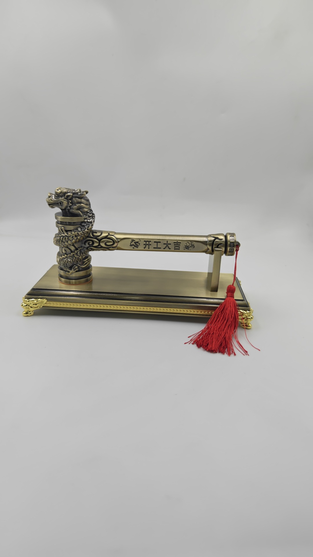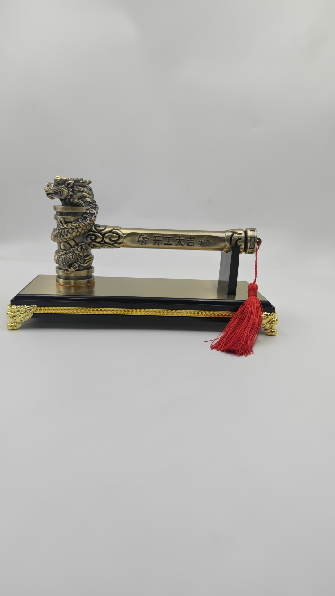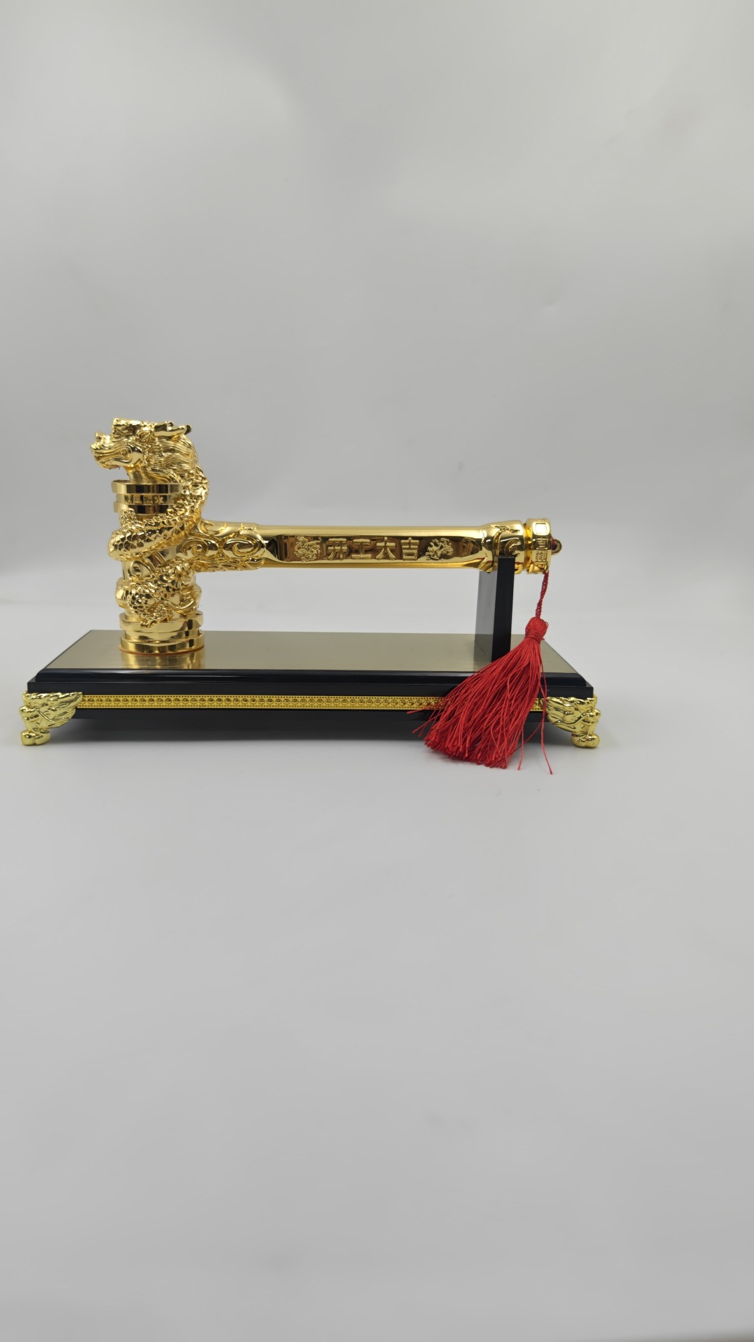 • 드래곤과 피닉스 행운의 망치 황금 용 머리 망치 + 금 가장자리 베이스