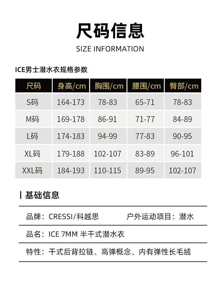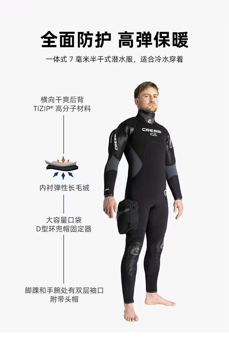 이탈리아 CRESSI 새로운 ICE 세미 드라이 7MM 전문 딥 다이빙 폐 세트 다이빙 세트스토어 가기