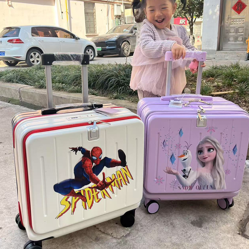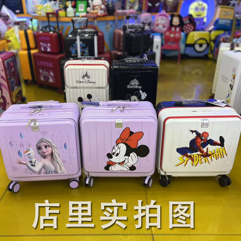 18 인치 새로운 어린이 여행 가방 만화 창조적 인 수하물 앞 오프닝 트롤리 케이스 다기능 어린이 탑승스토어 가기