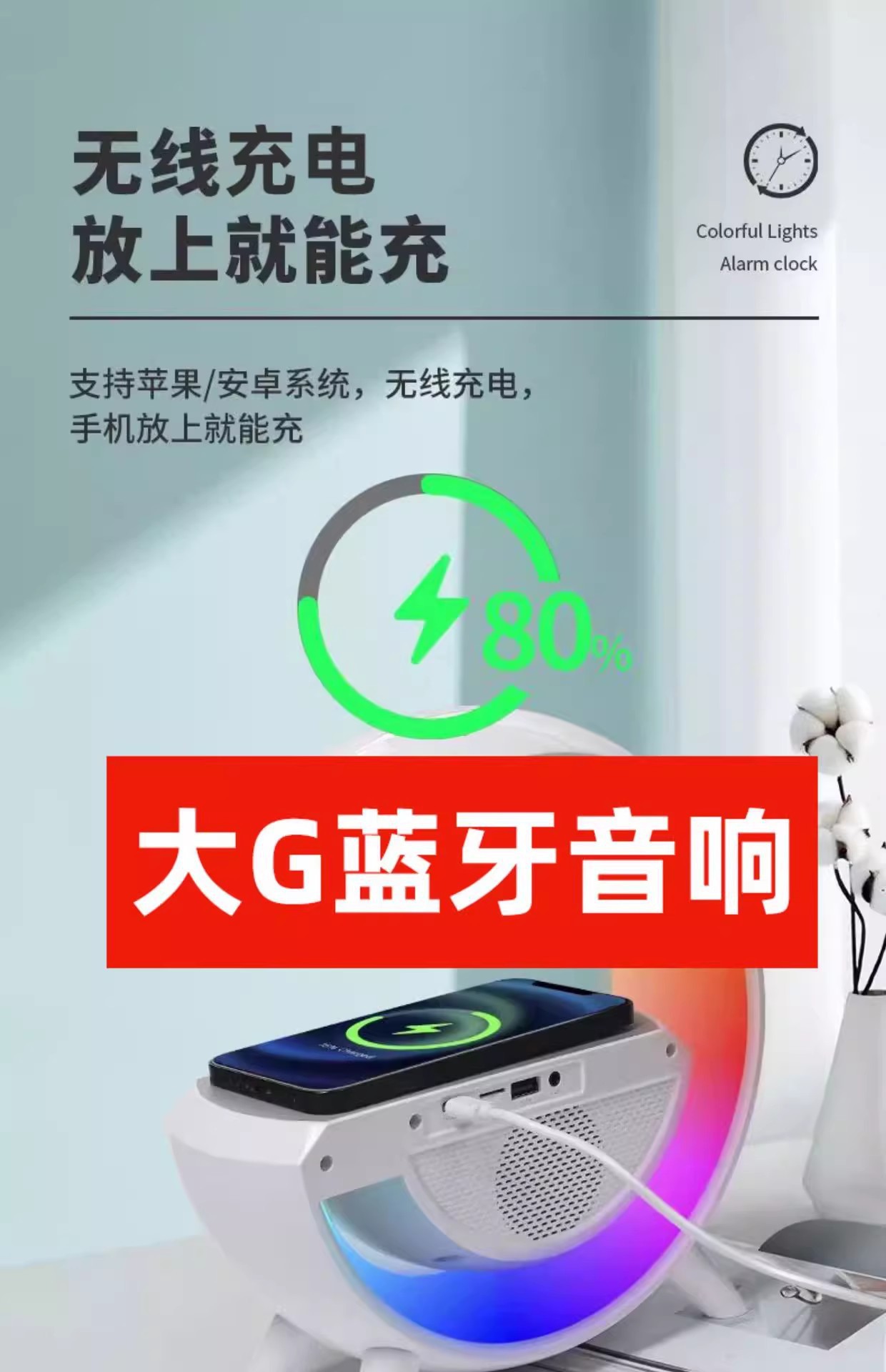 2025 폭발 블루투스 스피커 무선 충전 알람 시계 대기 빛 다기능 무선 충전 스마트 블루투스 오디오