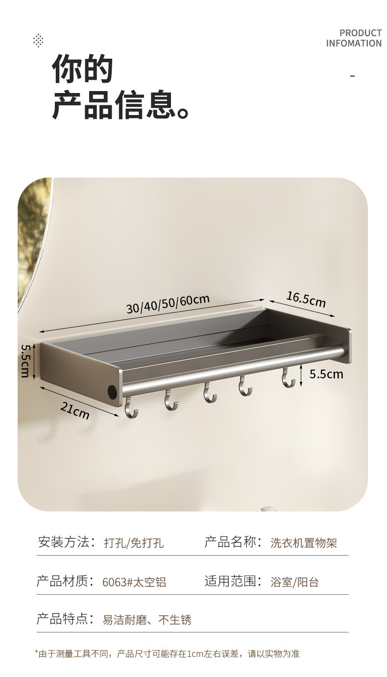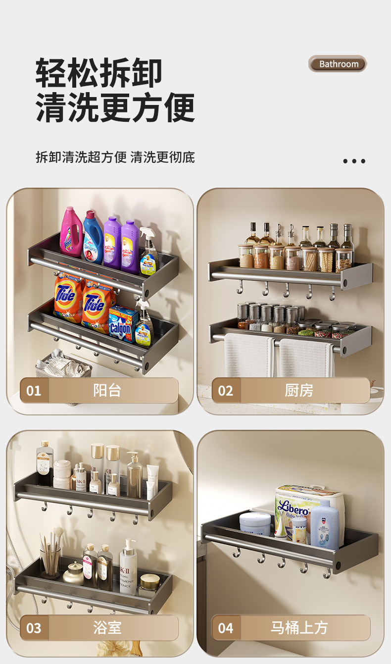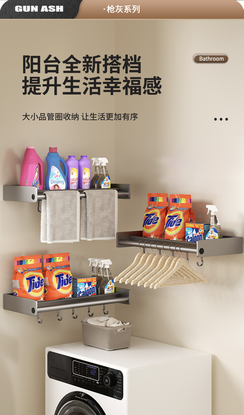 발코니 세탁 수영장 세탁기 보관 랙 펀치 없는 벽걸이 거실 침실 공간 절약형 가정용 보관 선반스토어 가기
