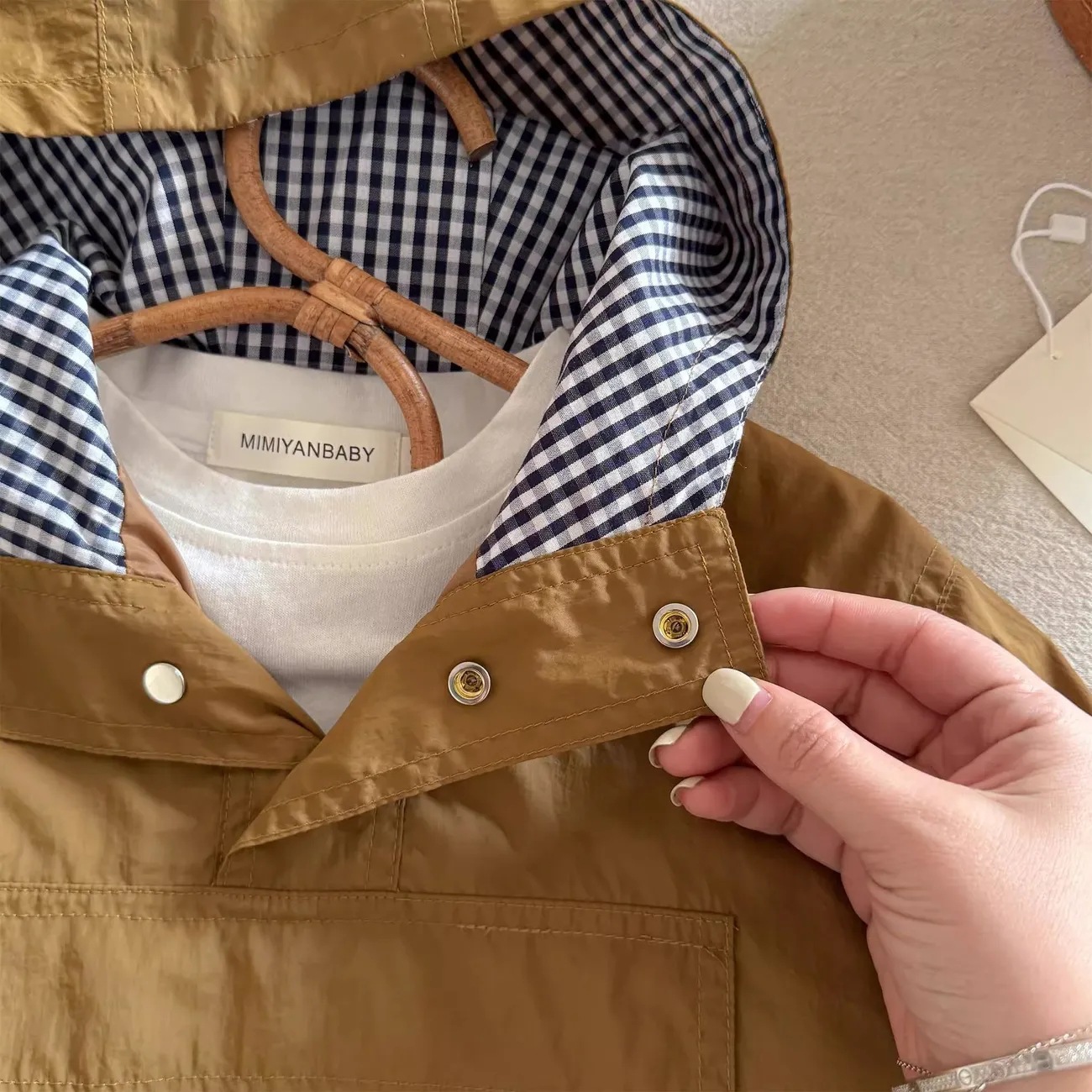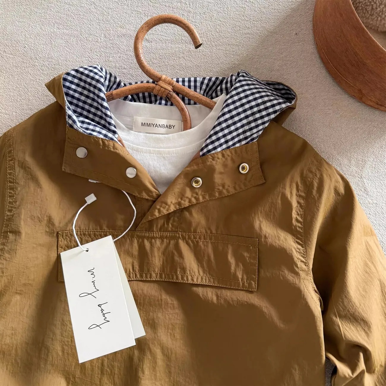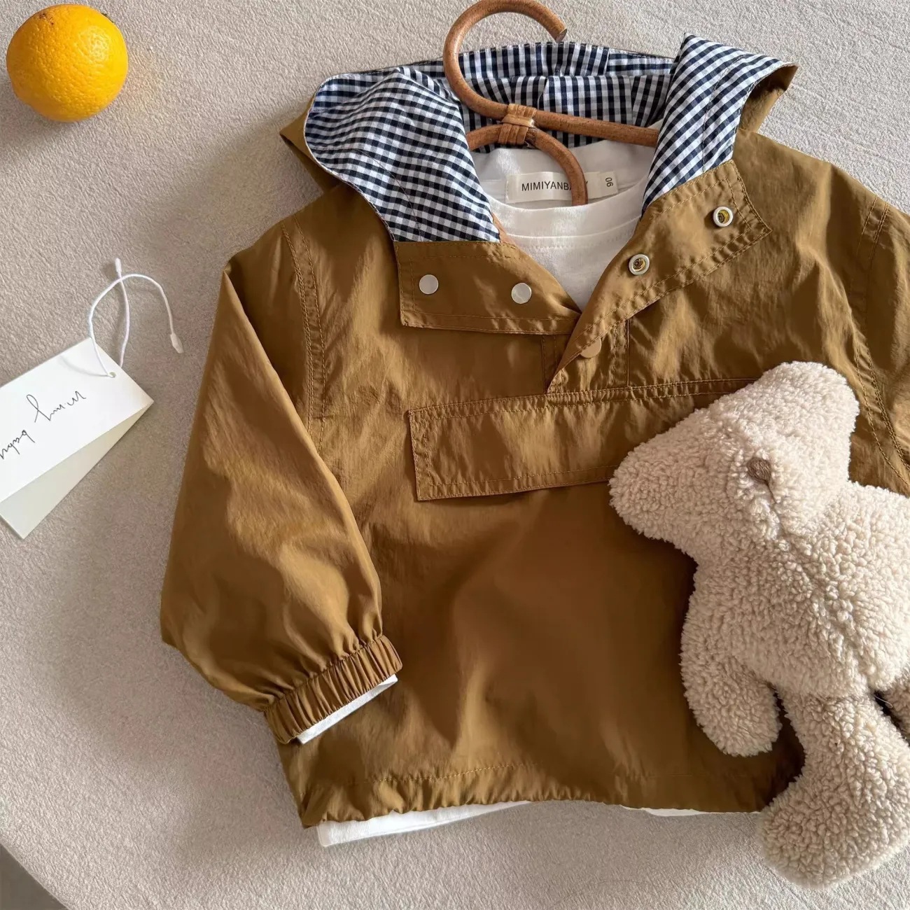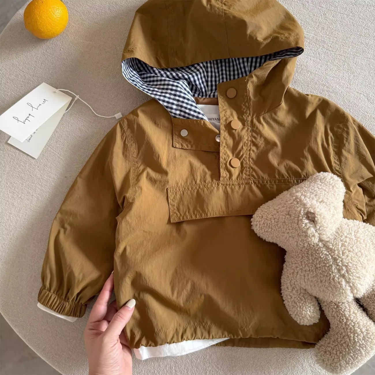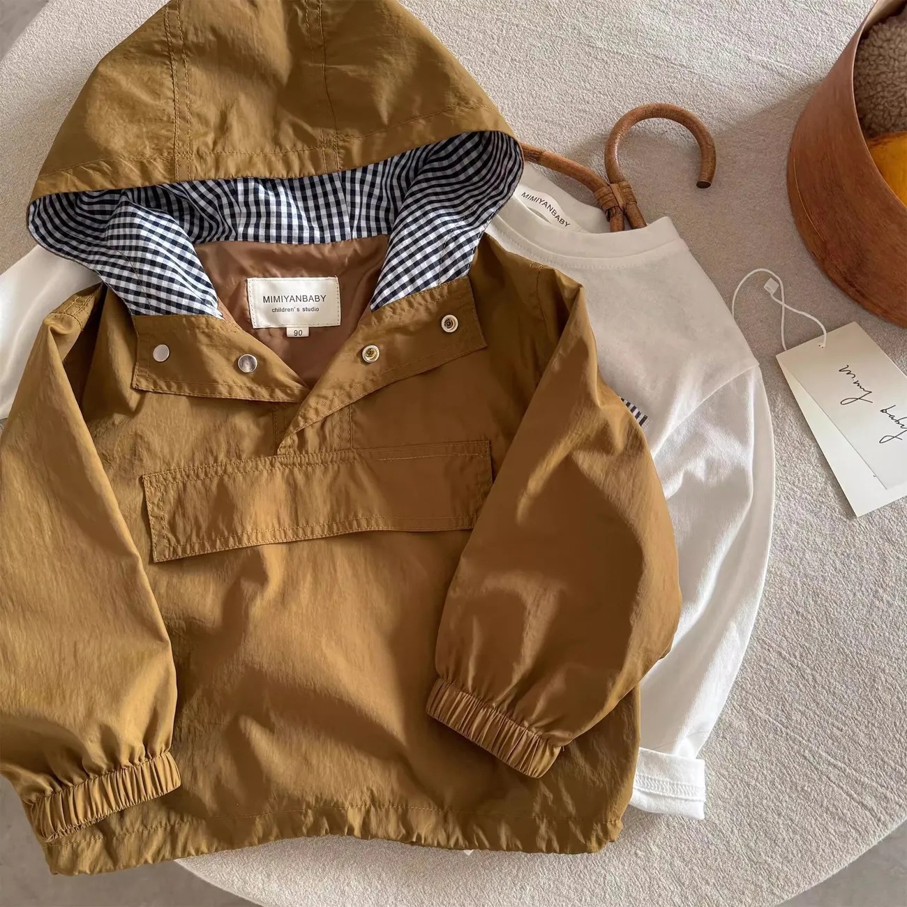 어린이 코트 2025 봄 소년 일본 툴링 풀오버 후드 탑 베이비 재킷 코트 걸스 올 매치