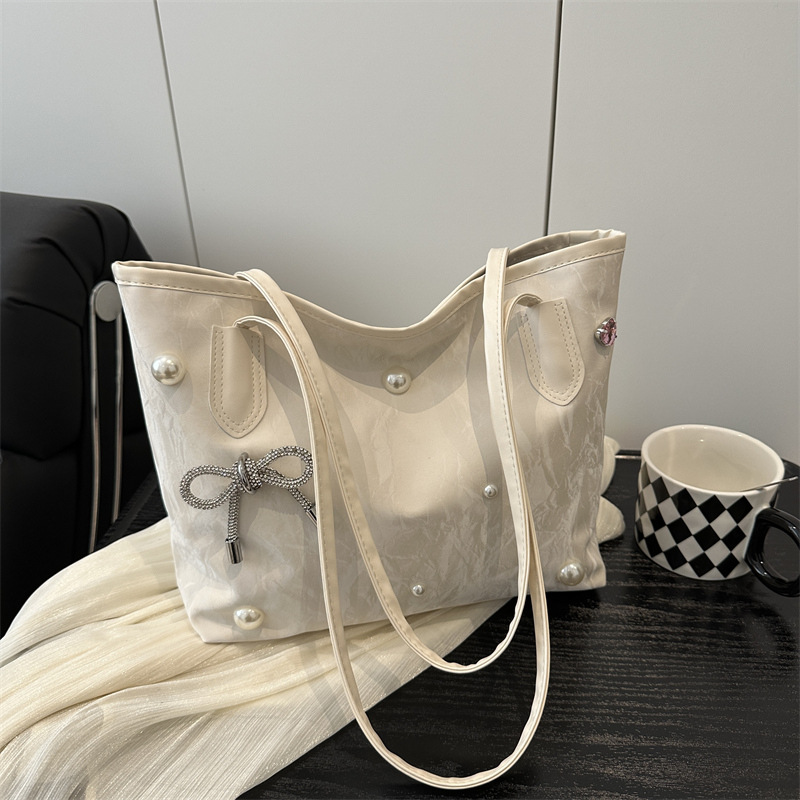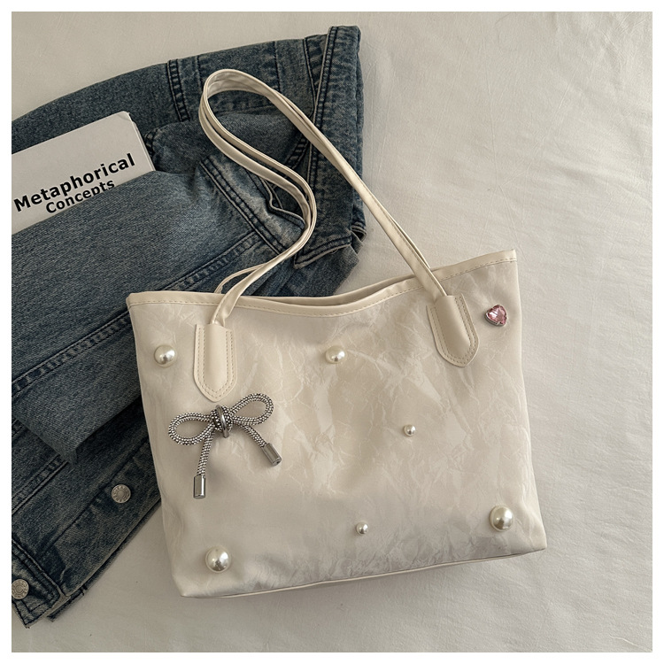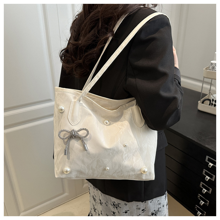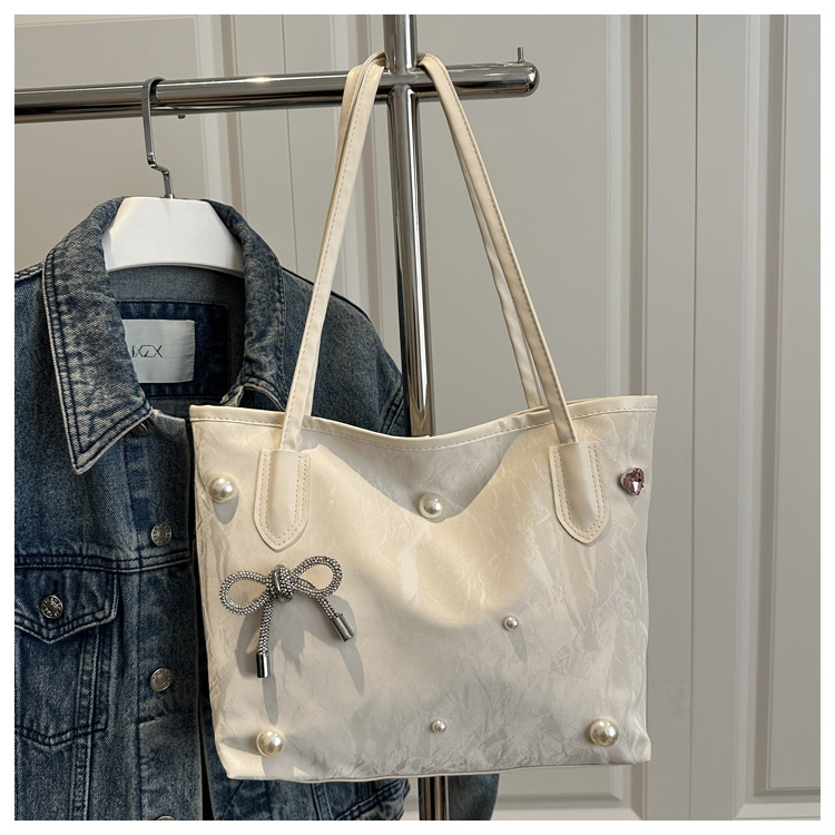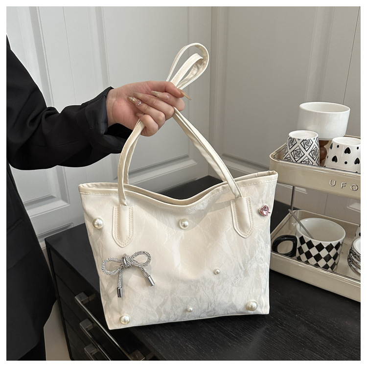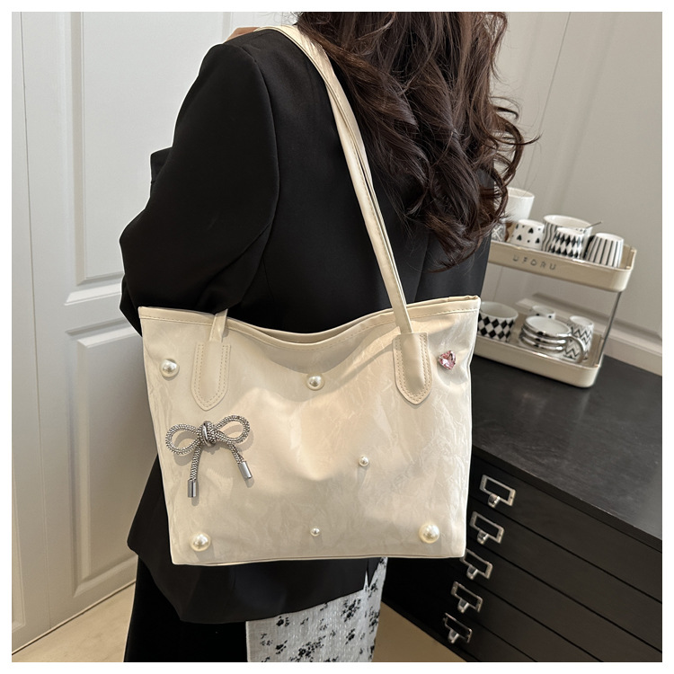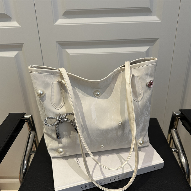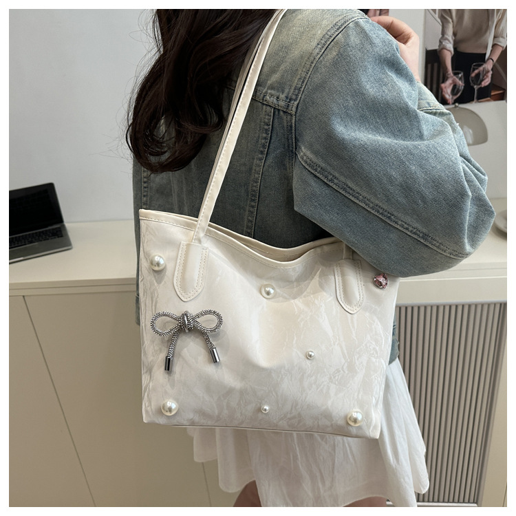 고급 진주 활 여성용 가방 2025 새로운 통근 가방 인기있는 어깨 가방 대용량 토트 백 도매스토어 가기