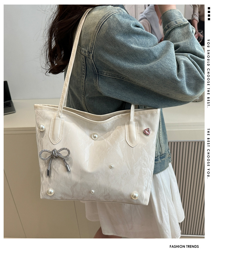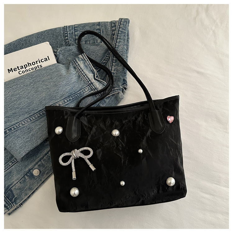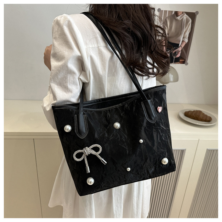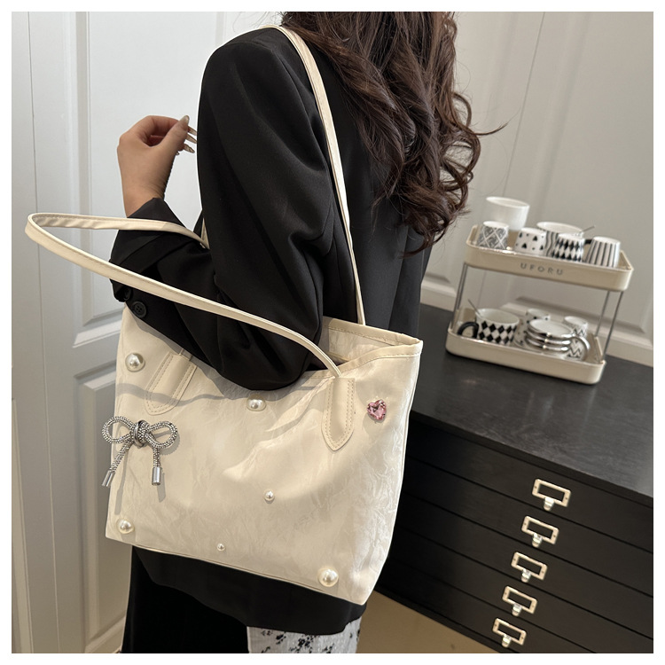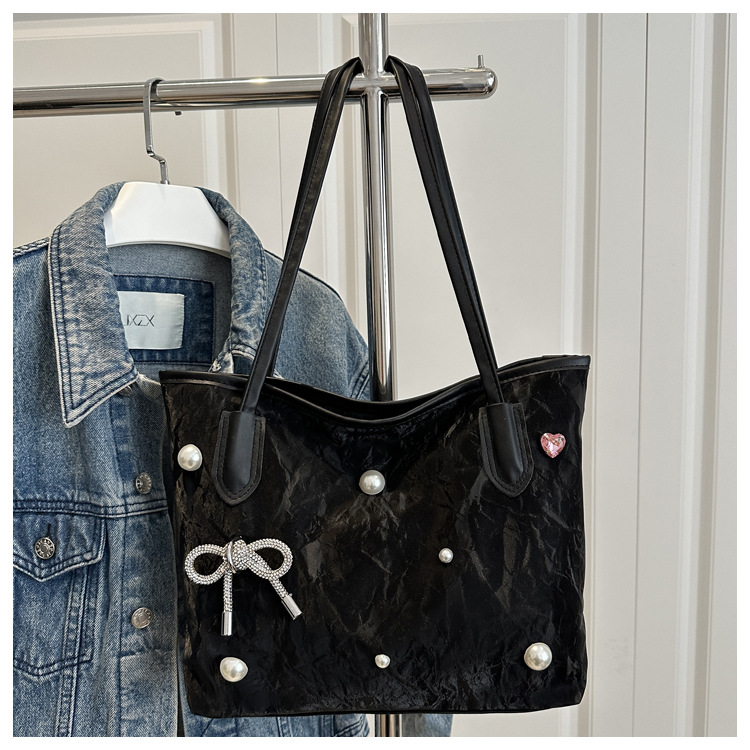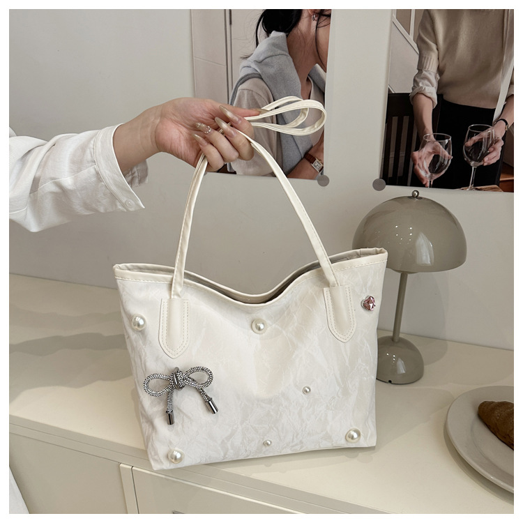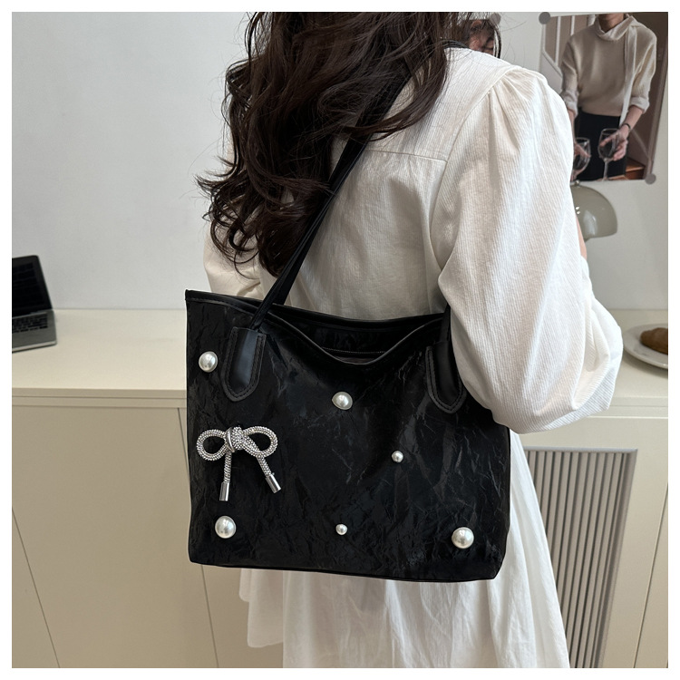 고급 진주 활 여성용 가방 2025 새로운 통근 가방 인기있는 어깨 가방 대용량 토트 백 도매스토어 가기