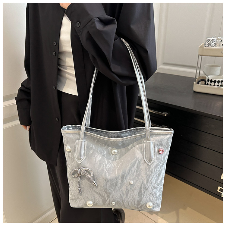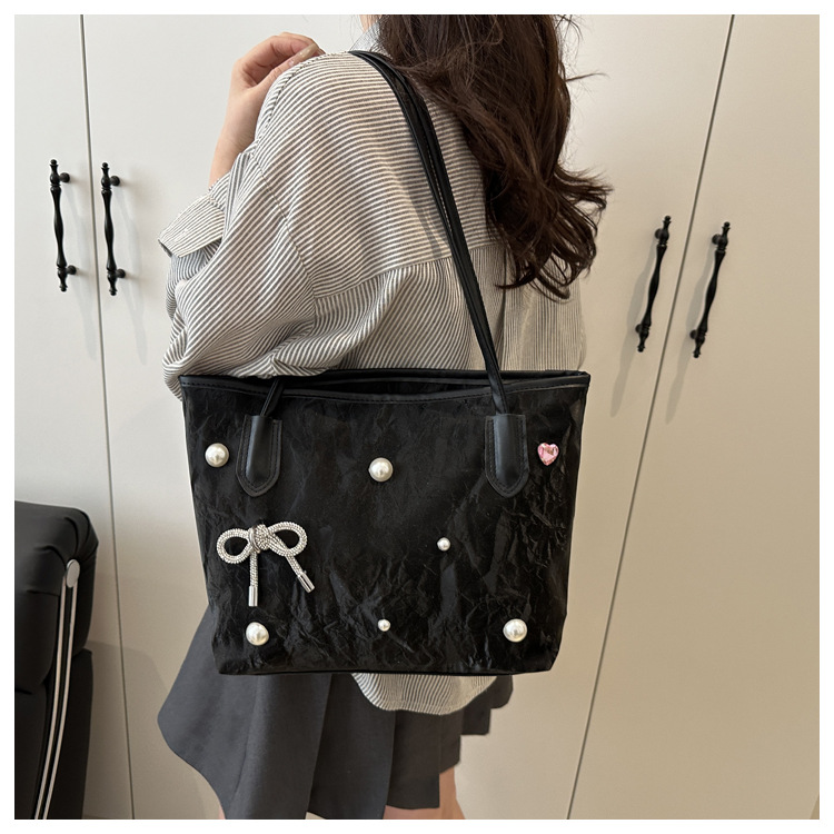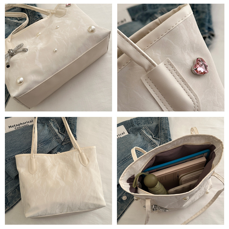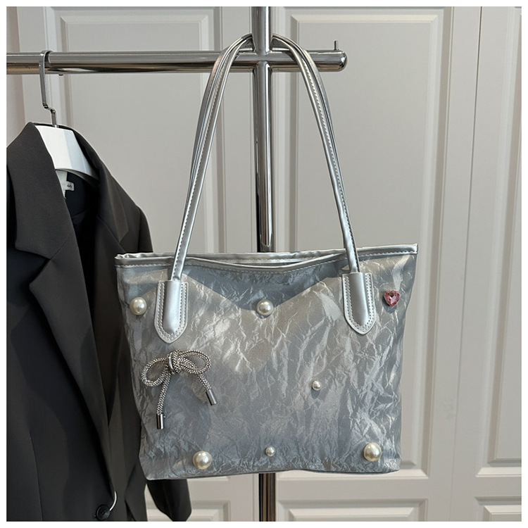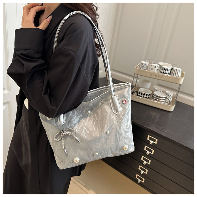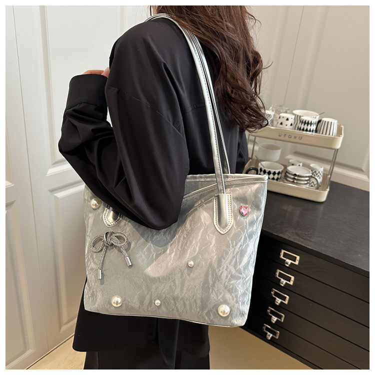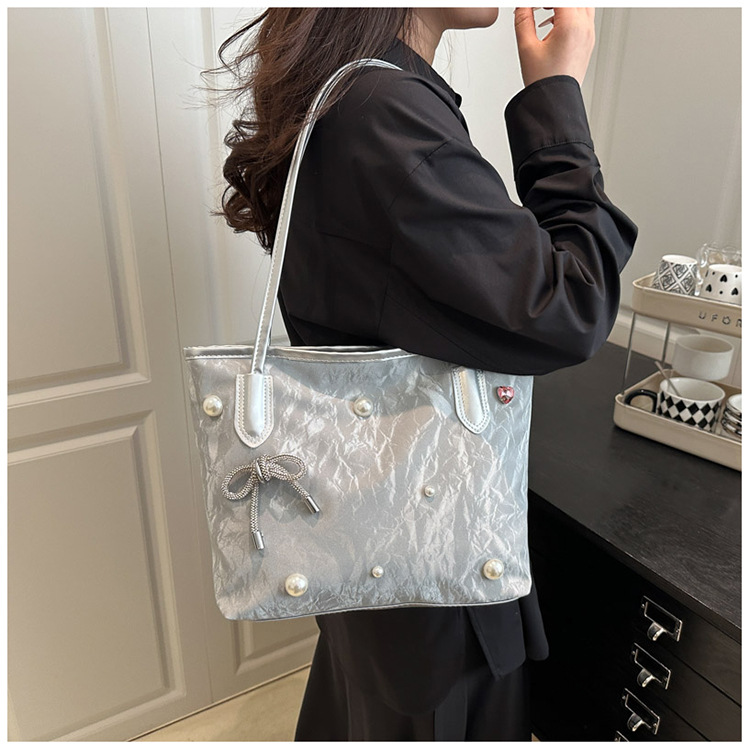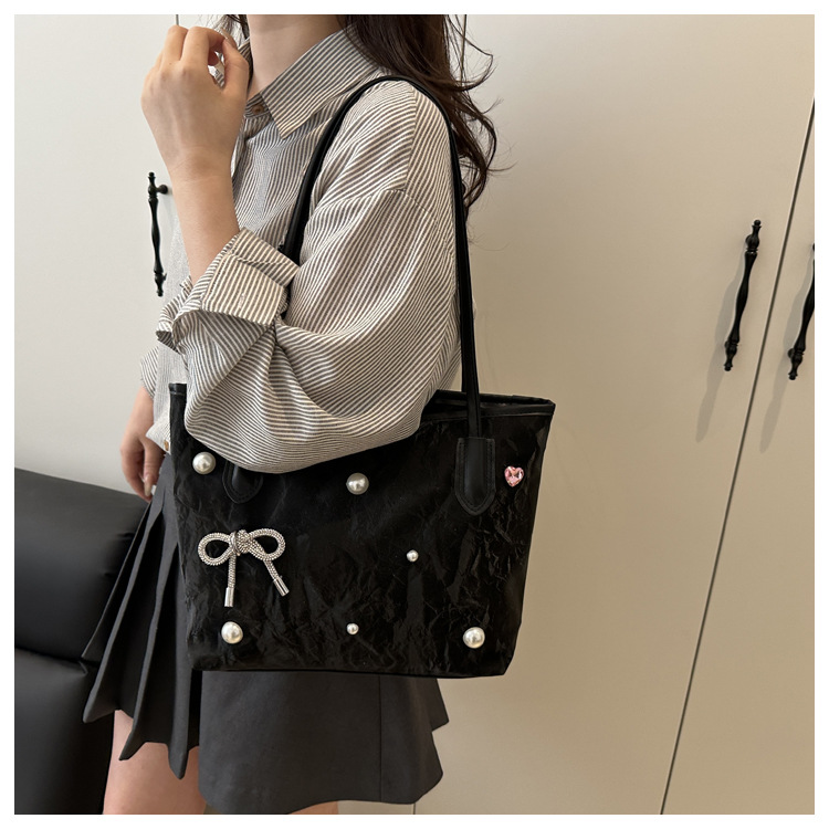 고급 진주 활 여성용 가방 2025 새로운 통근 가방 인기있는 어깨 가방 대용량 토트 백 도매스토어 가기