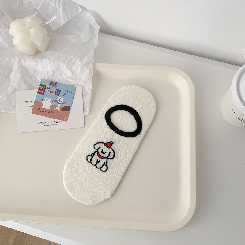 보트 양말 봄과 여름 얇은 귀여운 만화 개 얕은 입 보이지 않는 양말 대학 스타일의 통기성 안티 필링 비 슬립 여성용 양말스토어 가기