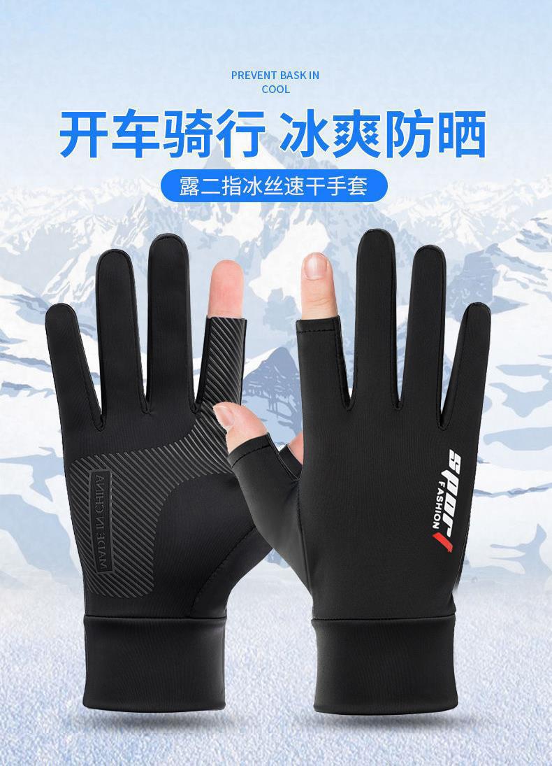 반 손가락 누설 두 손가락 장갑 타기 남녀 선 스크린 아이스 실크 장갑 여름 얇은 급행 낚시 야외 운전 장갑스토어 가기