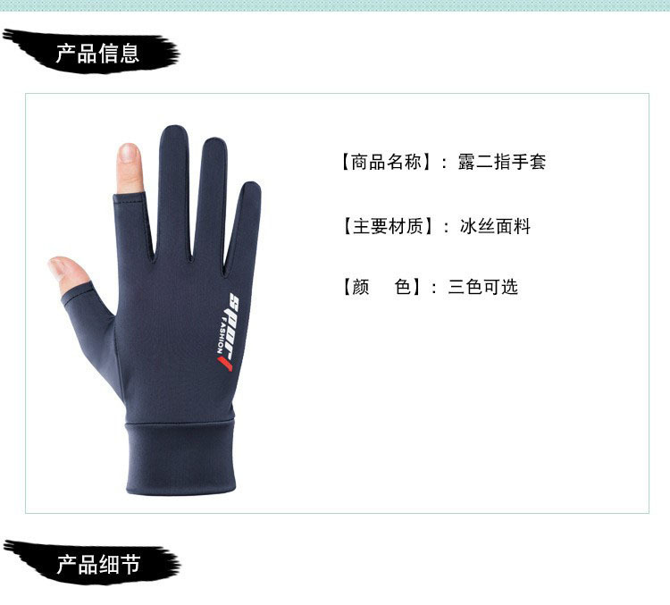 반 손가락 누설 두 손가락 장갑 타기 남녀 선 스크린 아이스 실크 장갑 여름 얇은 급행 낚시 야외 운전 장갑