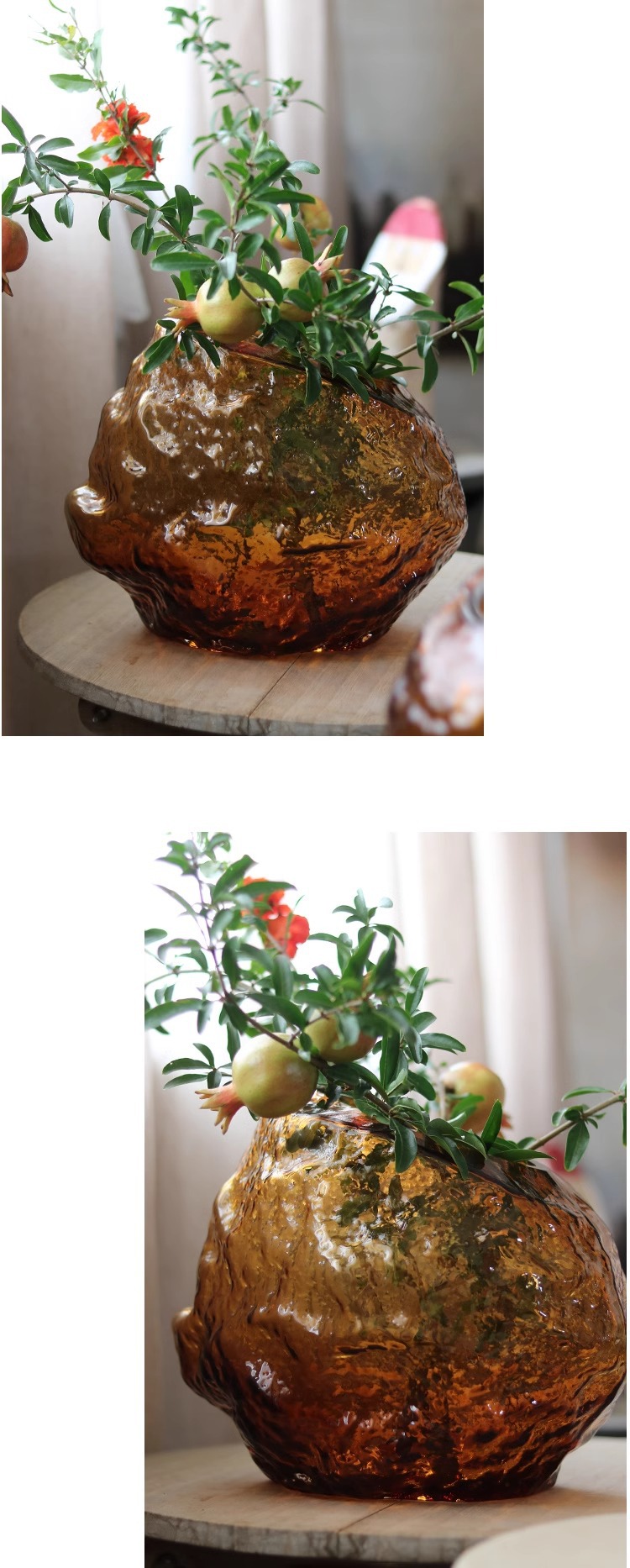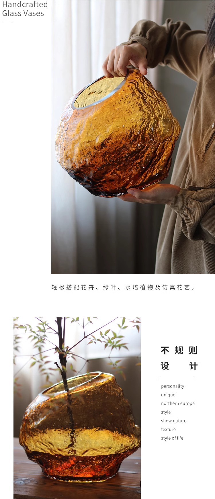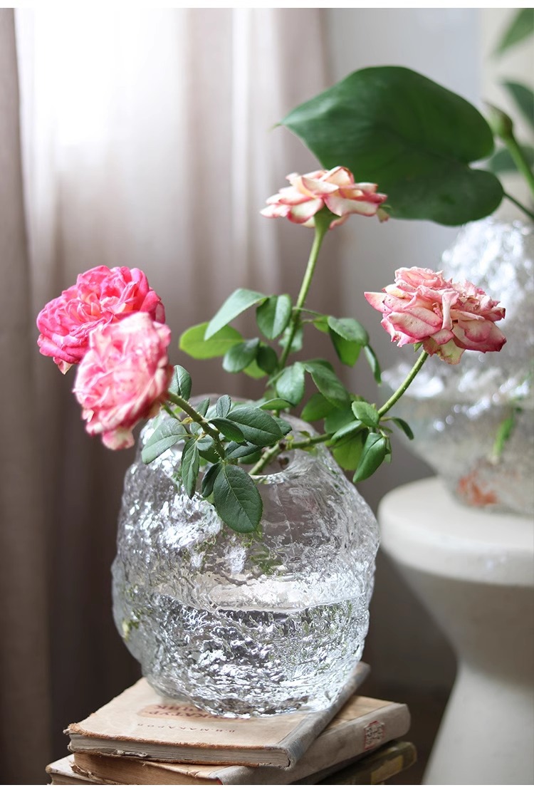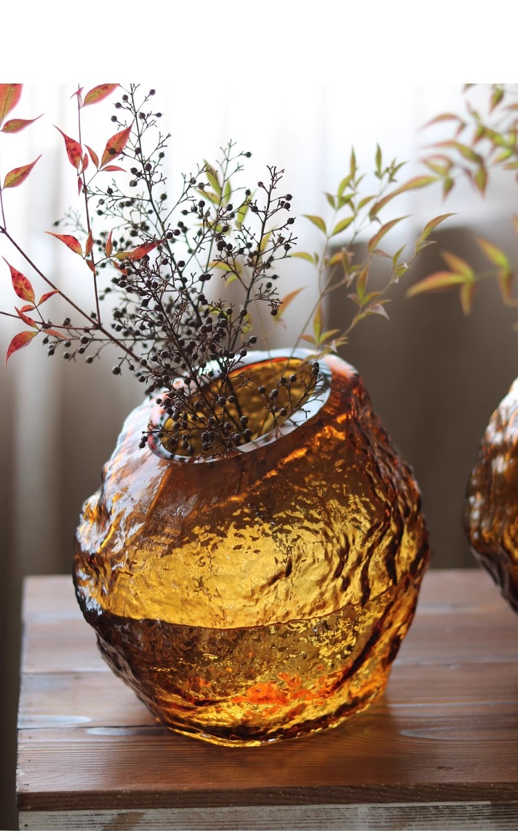 每一个花瓶都是人工吹制的纯手工花瓶会出现气泡、流线、磨痕、杂质、黑白点:色料不均、底部打磨痕迹等手工痕迹,这是手工花瓶无法避免的,非瑕疵,介意的亲们请谨慎下单。