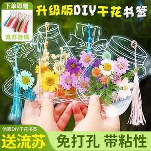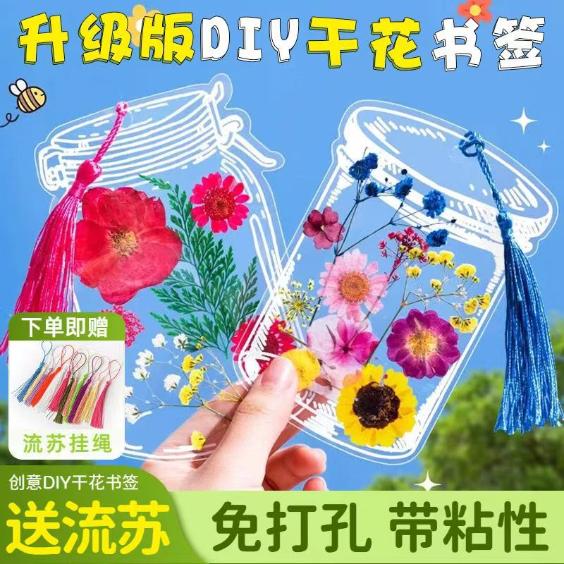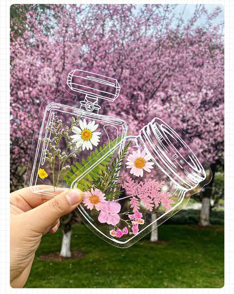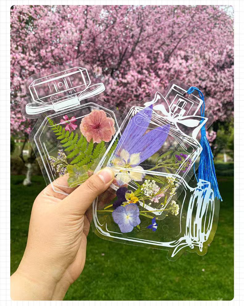 창조적 인 봄 수제 식물 표본 학생 투명한 꽃 플라스틱 필름 업그레이드 된 술 DIY 말린 꽃 북마크
