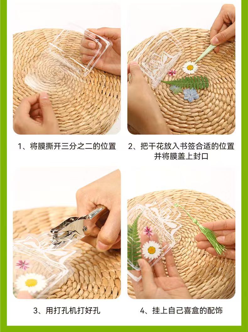 창조적 인 봄 수제 식물 표본 학생 투명한 꽃 플라스틱 필름 업그레이드 된 술 DIY 말린 꽃 북마크스토어 가기