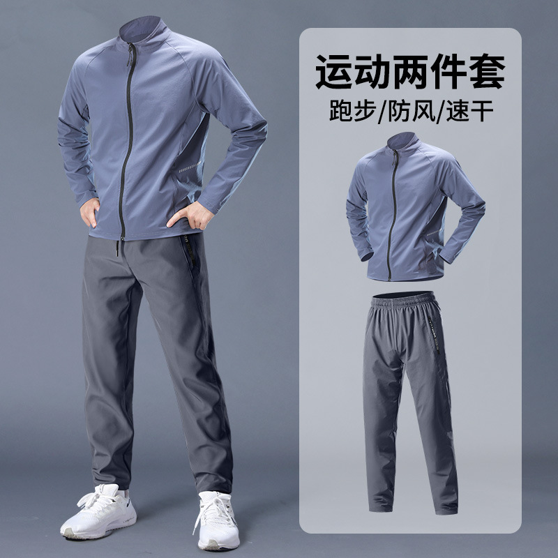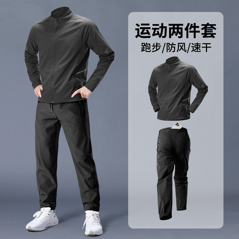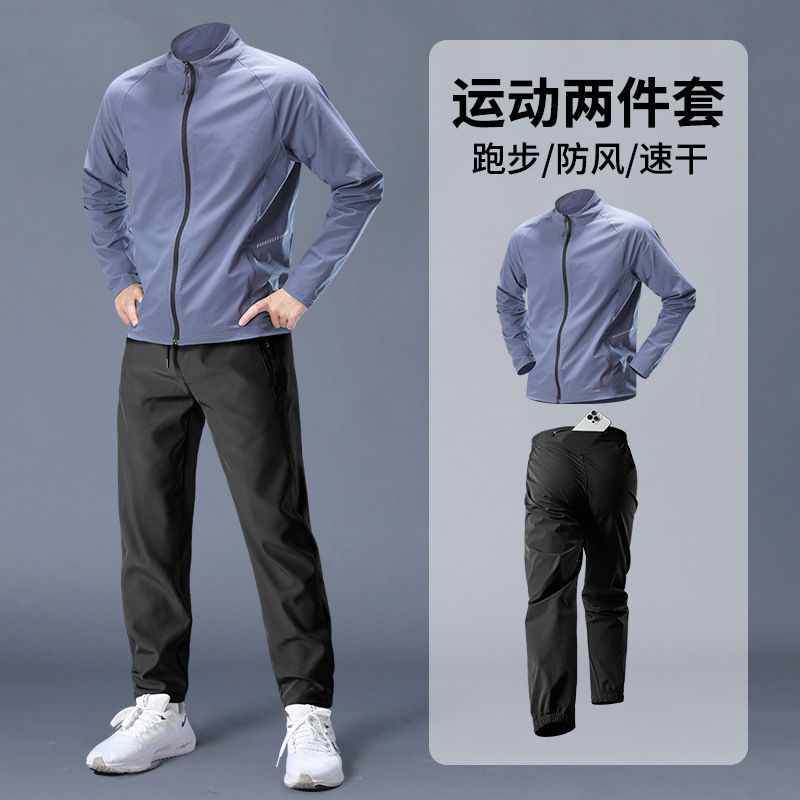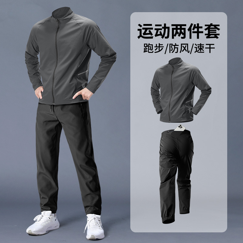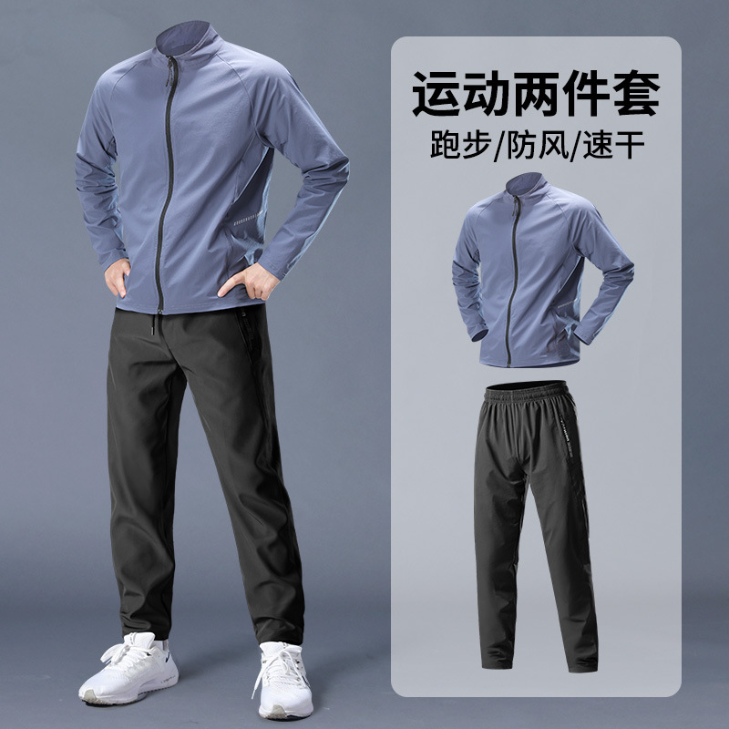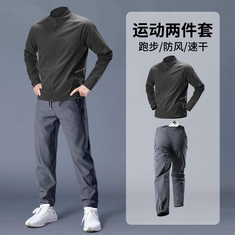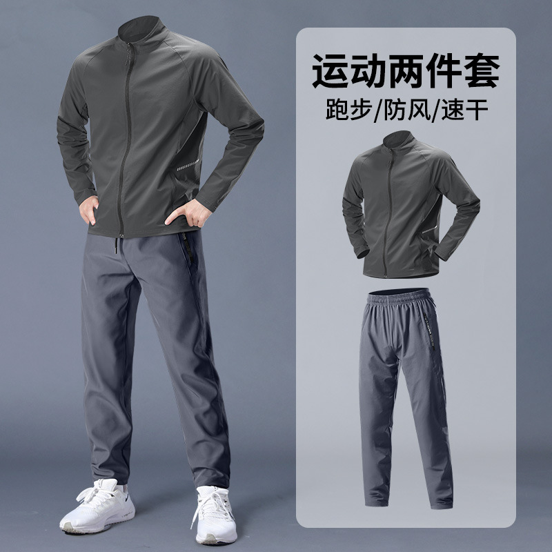 스포츠 정장 남성 봄, 가을 아침 달리기 재킷 봄 새로운 짠 러닝웨어 체육관 얇은 옷 훈련