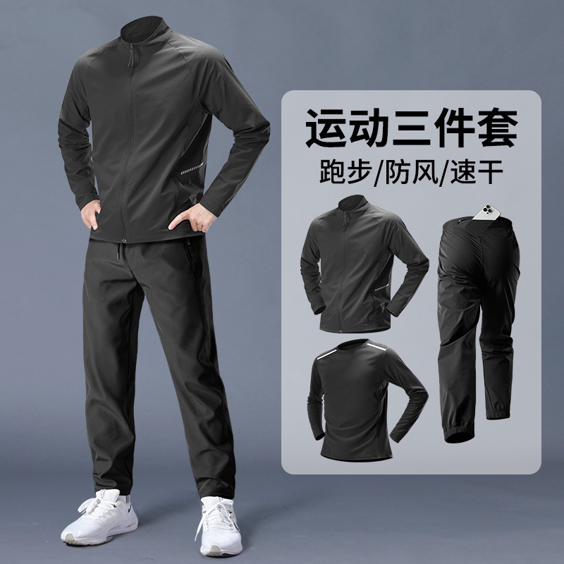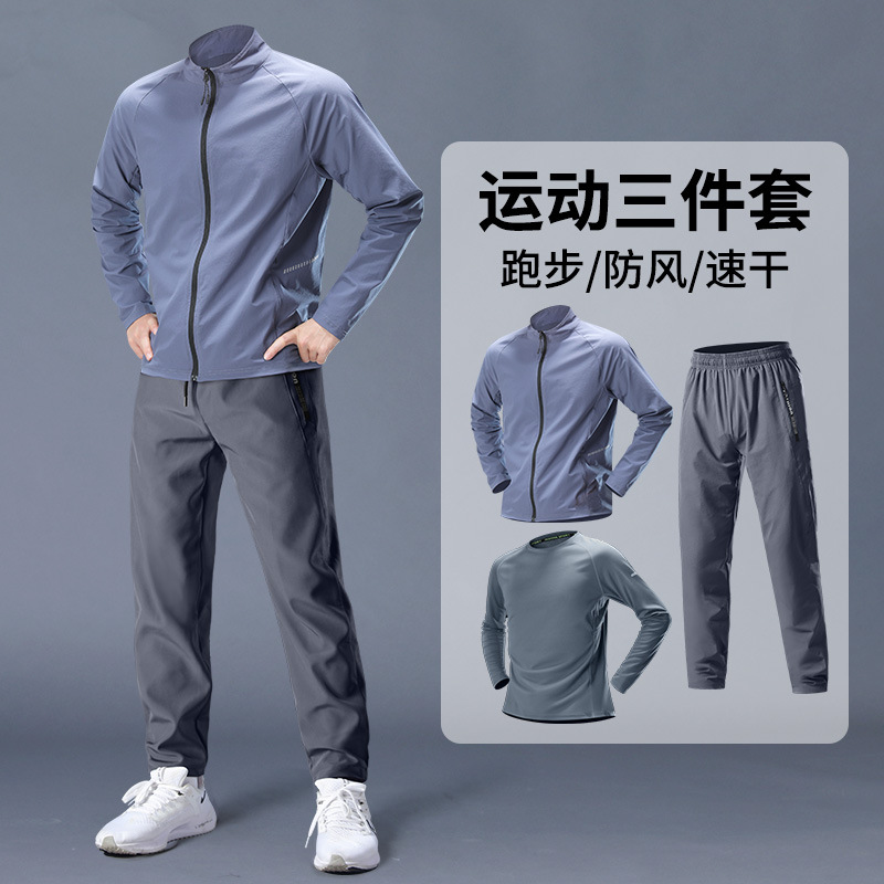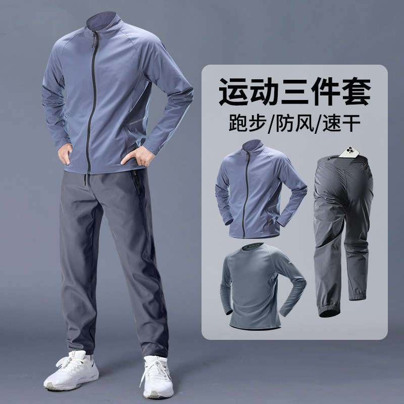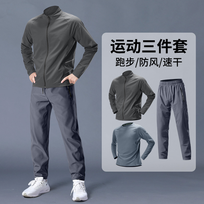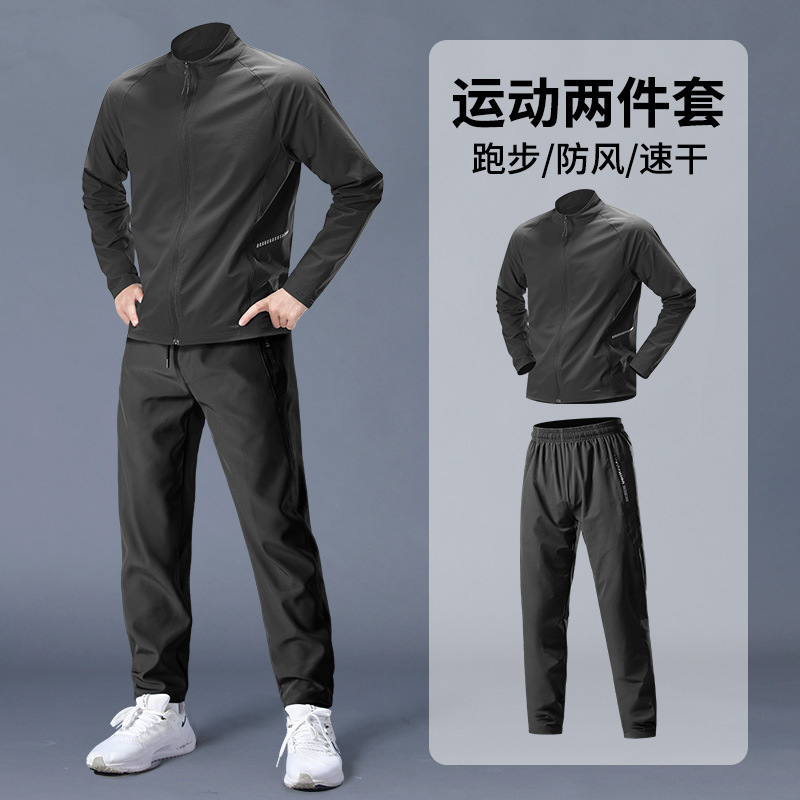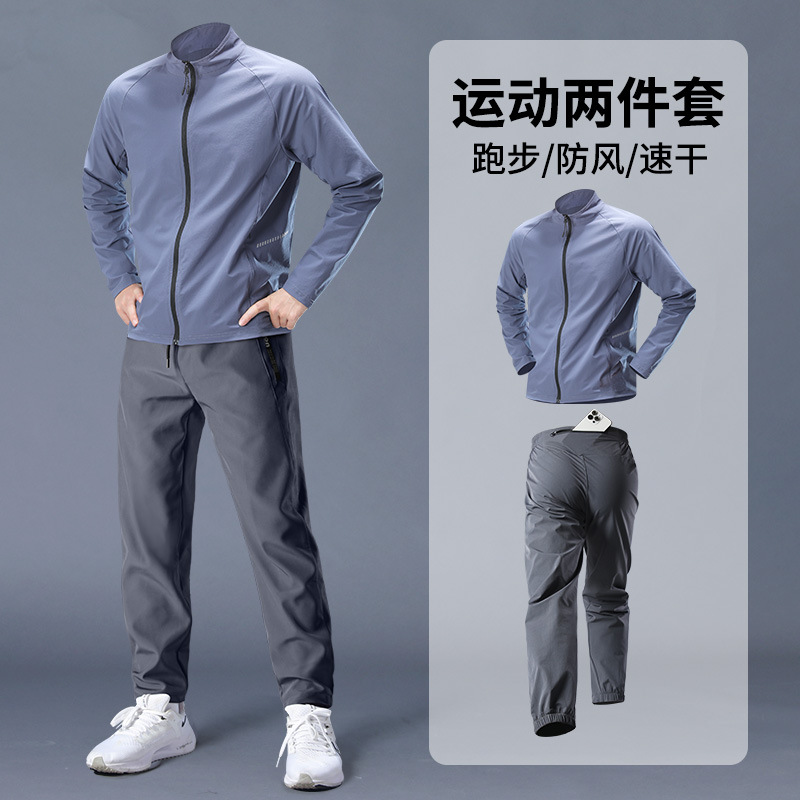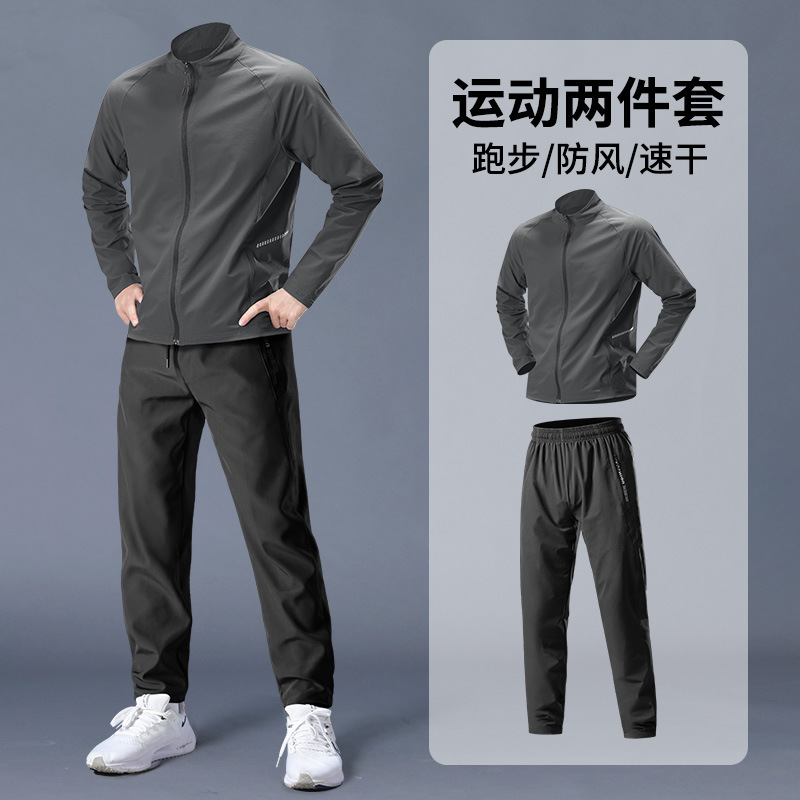 스포츠 정장 남성 봄, 가을 아침 달리기 재킷 봄 새로운 짠 러닝웨어 체육관 얇은 옷 훈련
