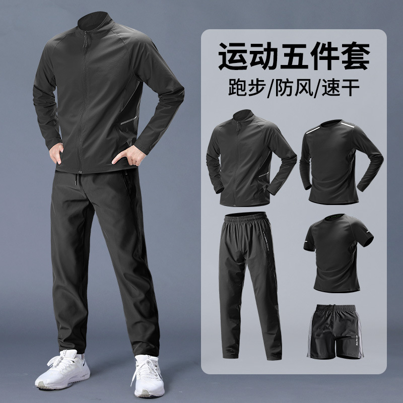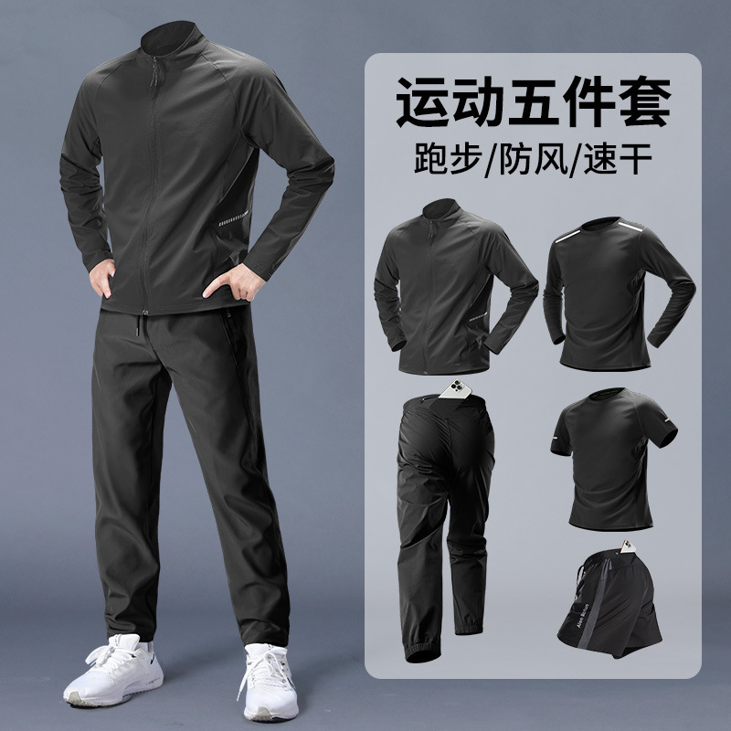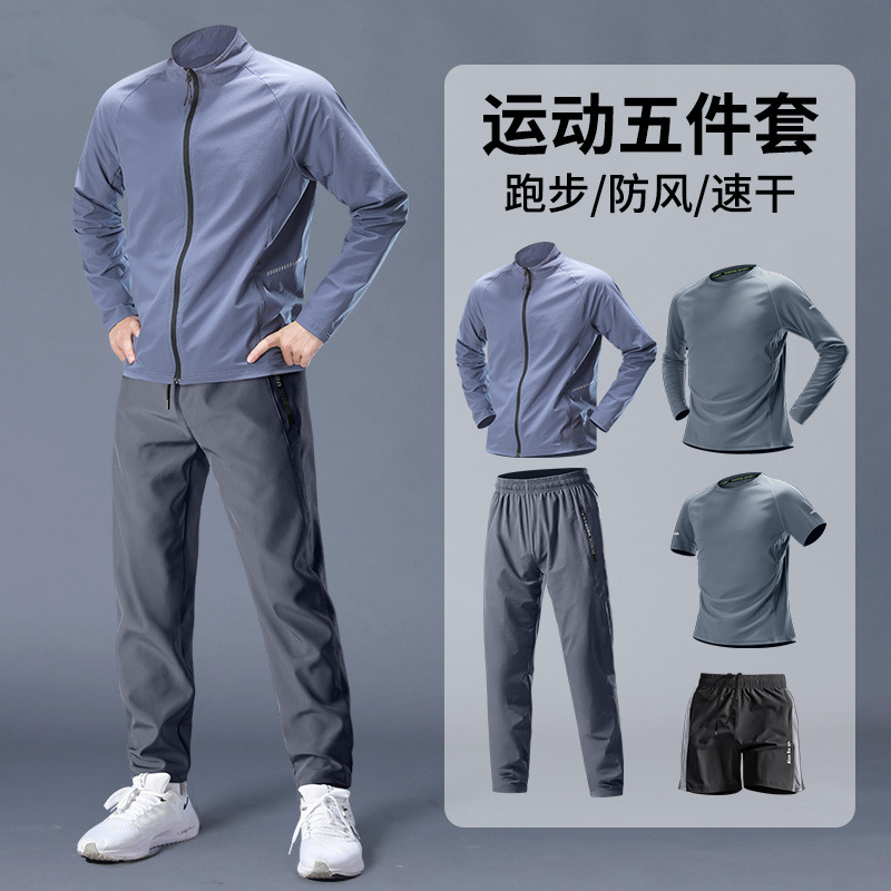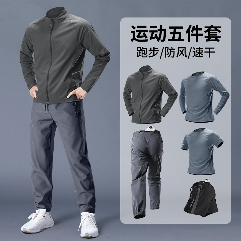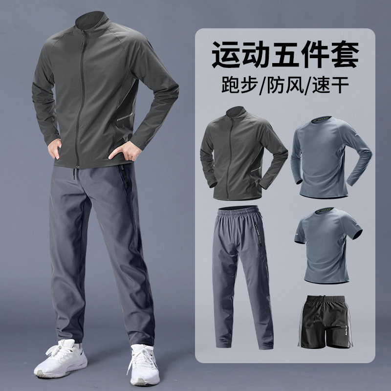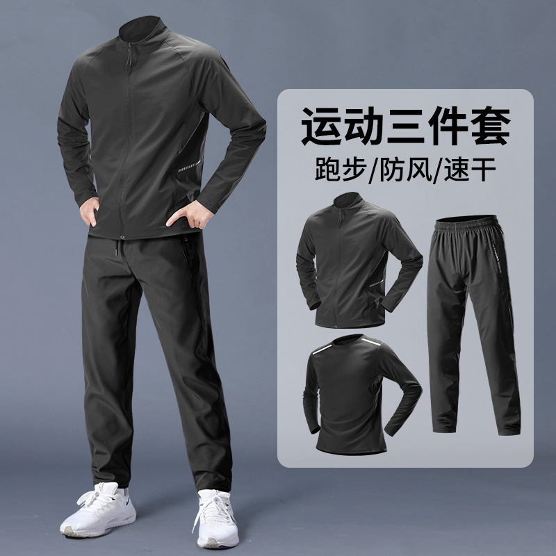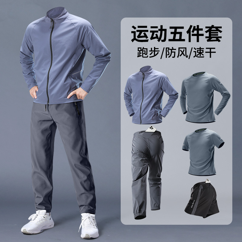 스포츠 정장 남성 봄, 가을 아침 달리기 재킷 봄 새로운 짠 러닝웨어 체육관 얇은 옷 훈련