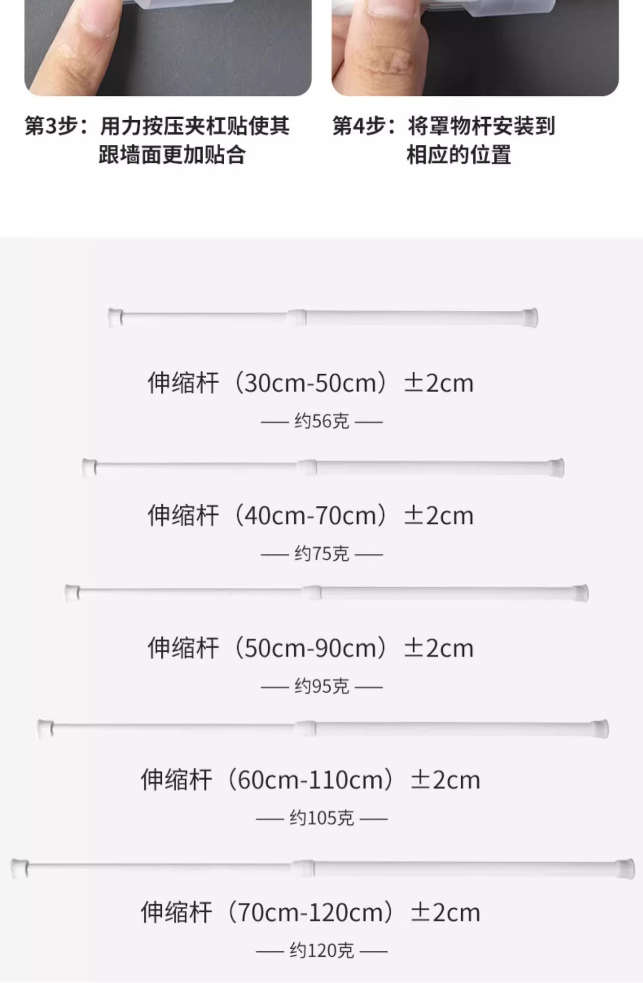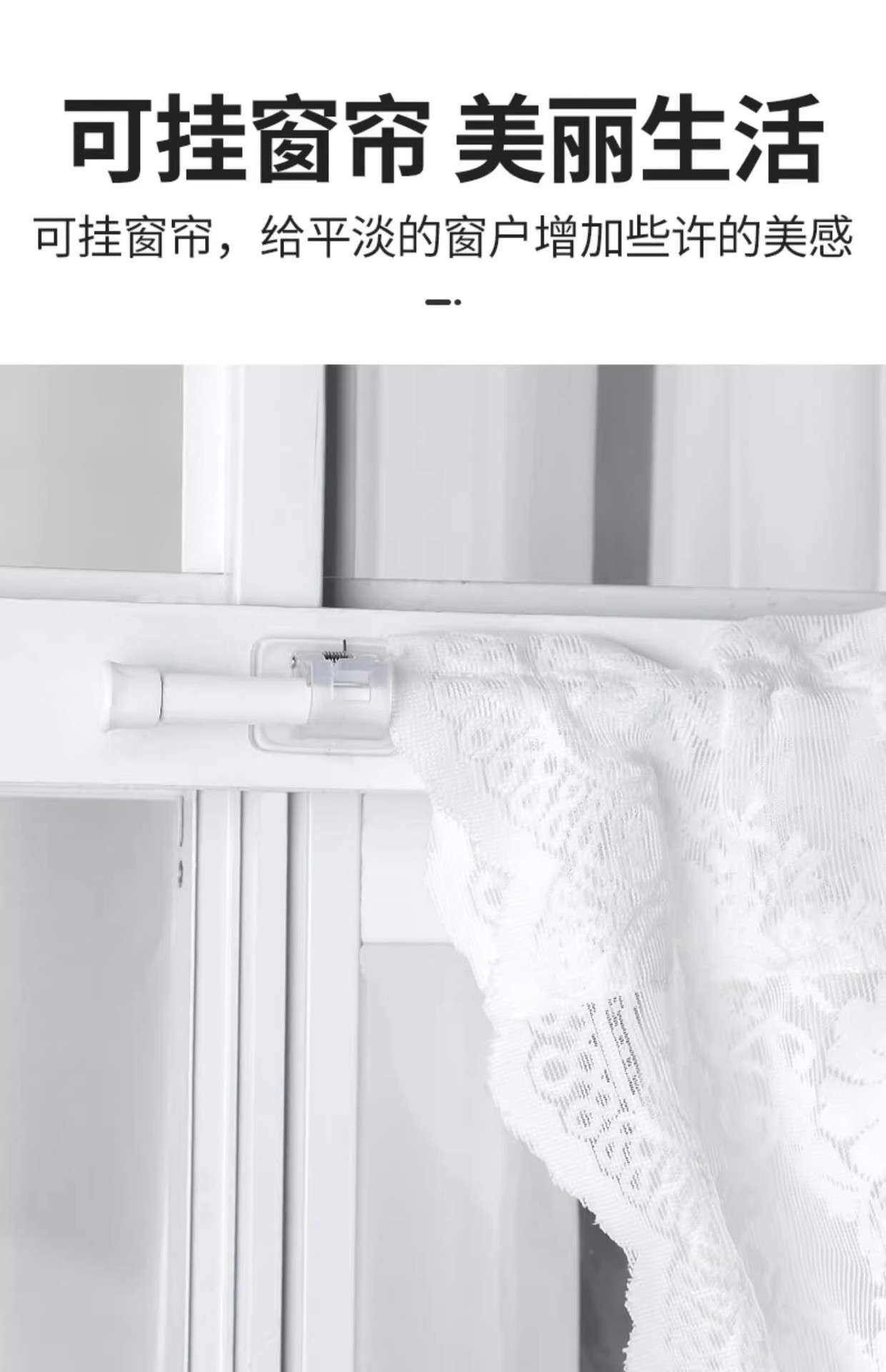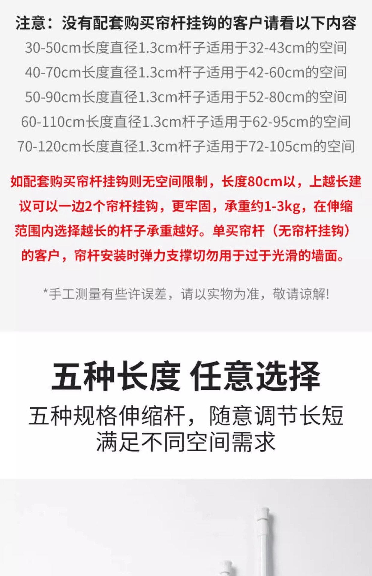 • 흰색 커튼봉 후크 2팩 + 커튼봉 50cm-90cm 1개