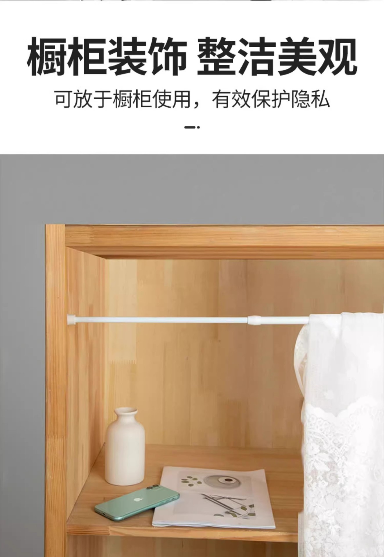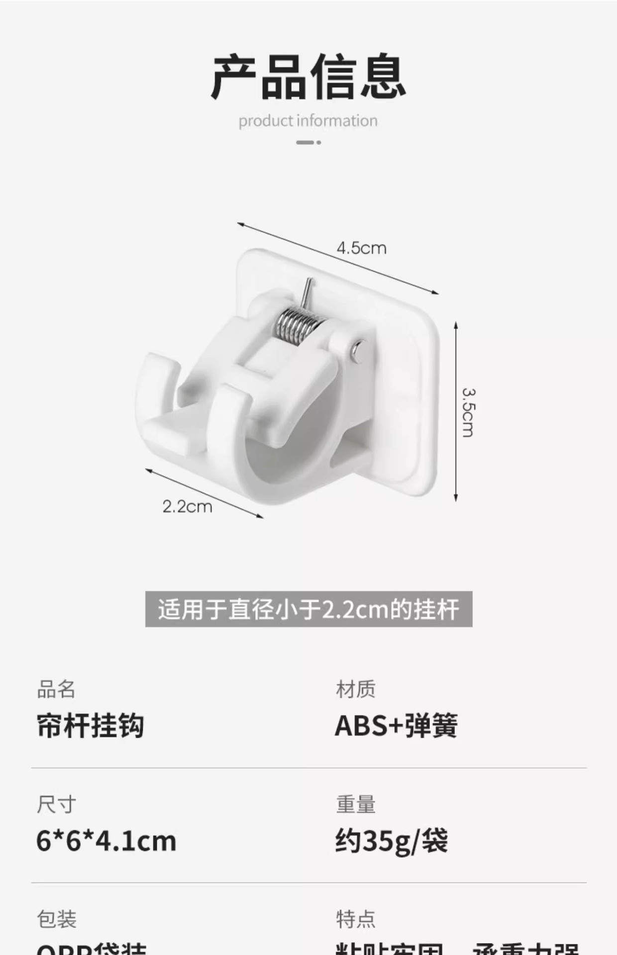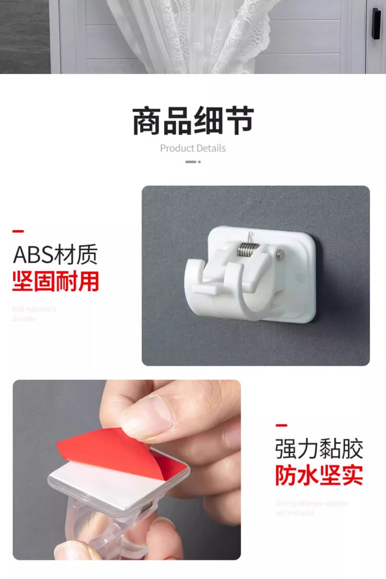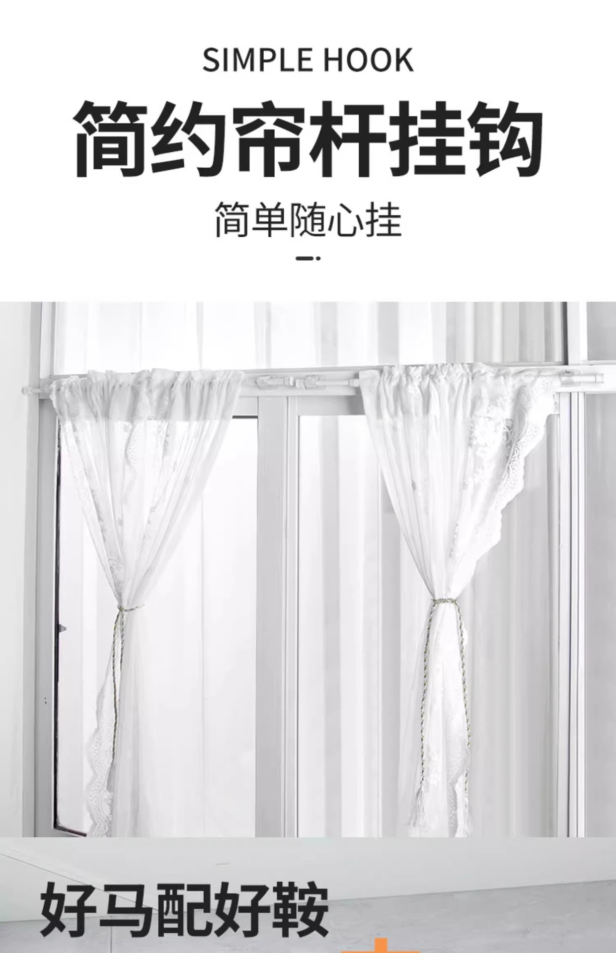 • 흰색 커튼봉 후크 2팩 + 커튼봉 50cm-90cm 1개