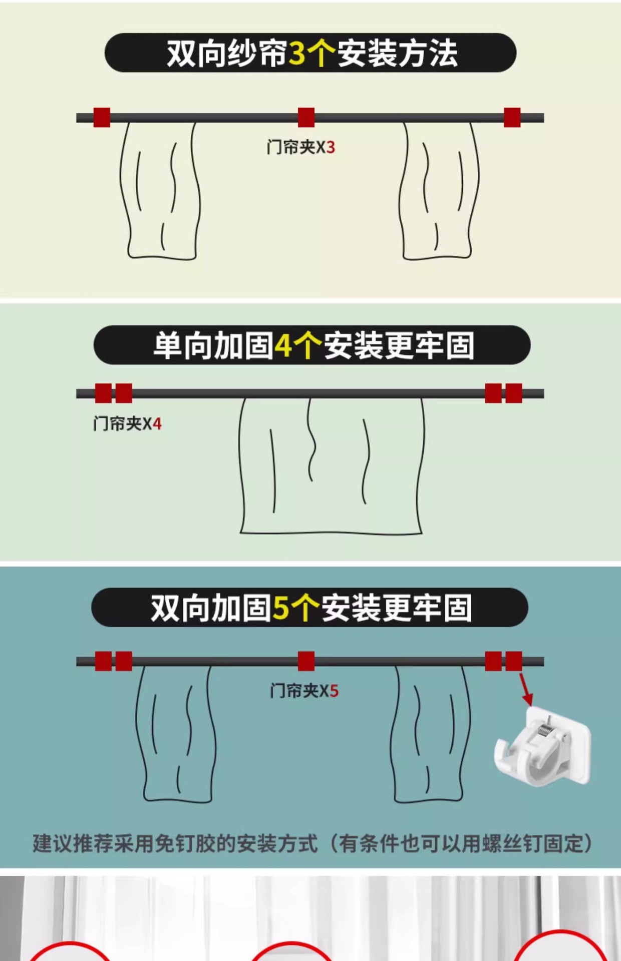 커튼로드 후크 커튼 로드 홀더 펀치 프리 접착 브래킷 클립 크로스바 도어 커튼 텔레스코픽 로드 확장