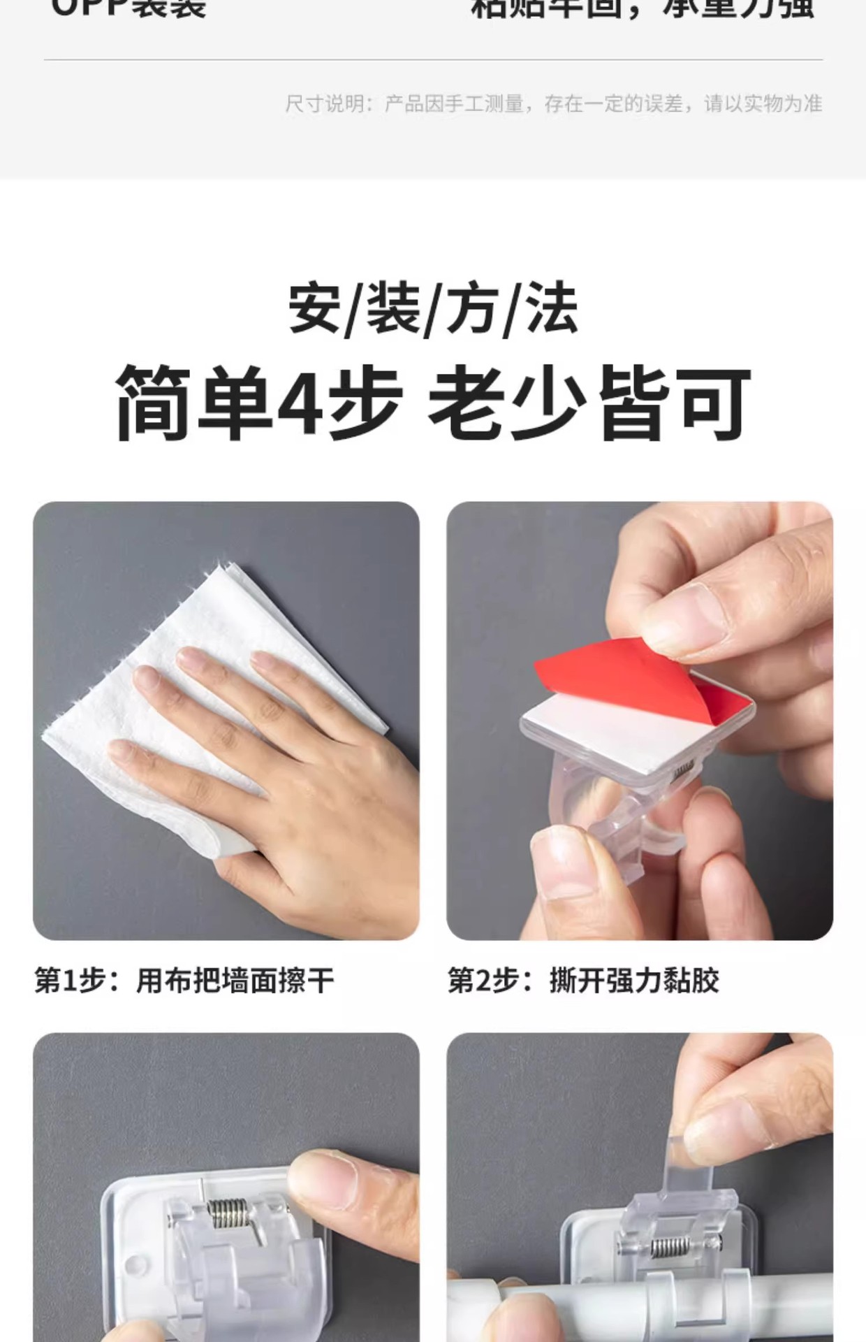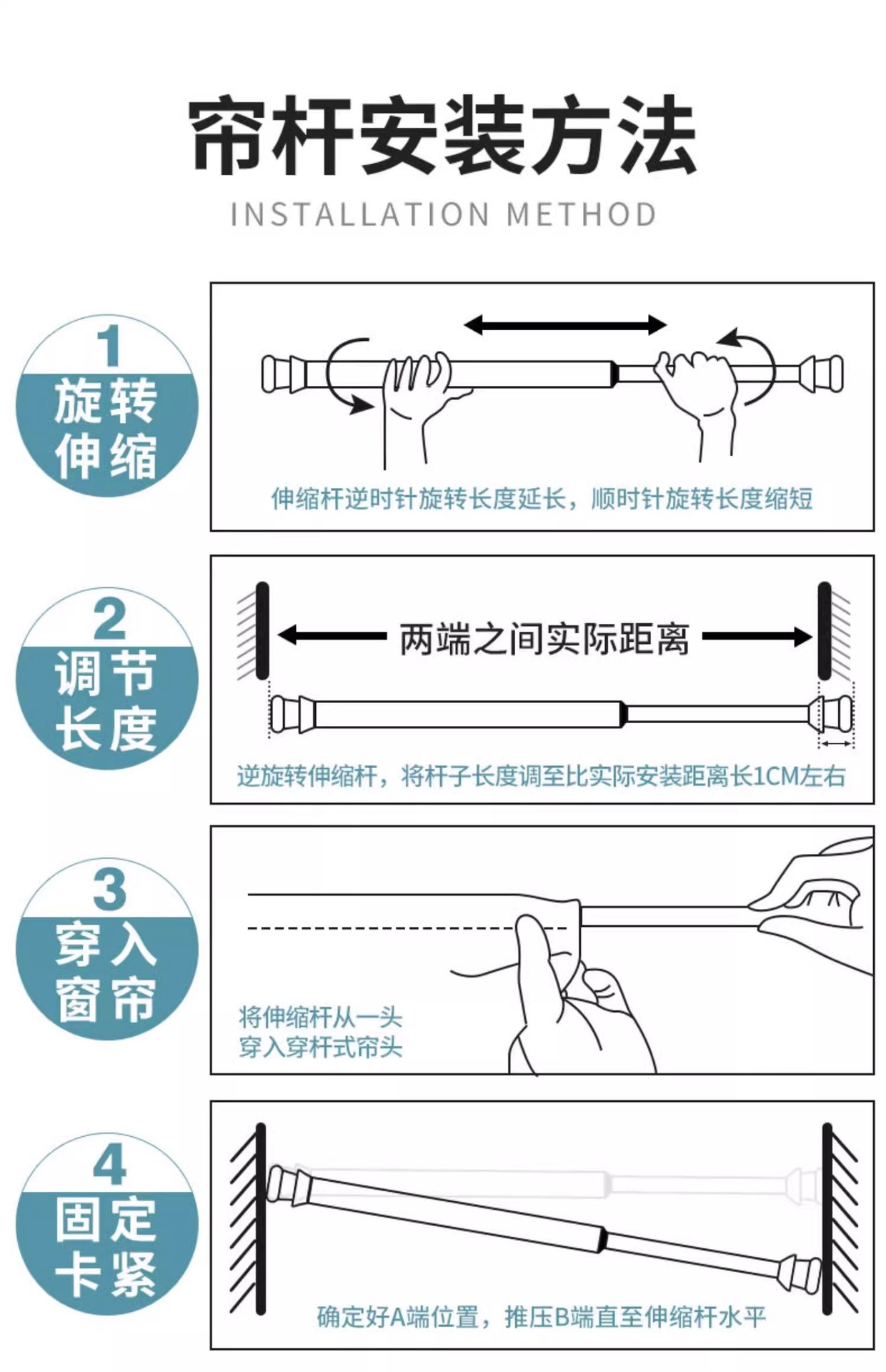 • 흰색 커튼봉 후크 4팩 + 커튼봉 60cm-110cm 1개