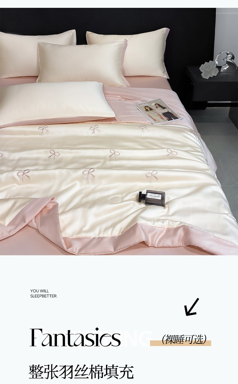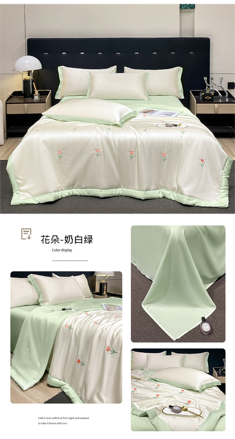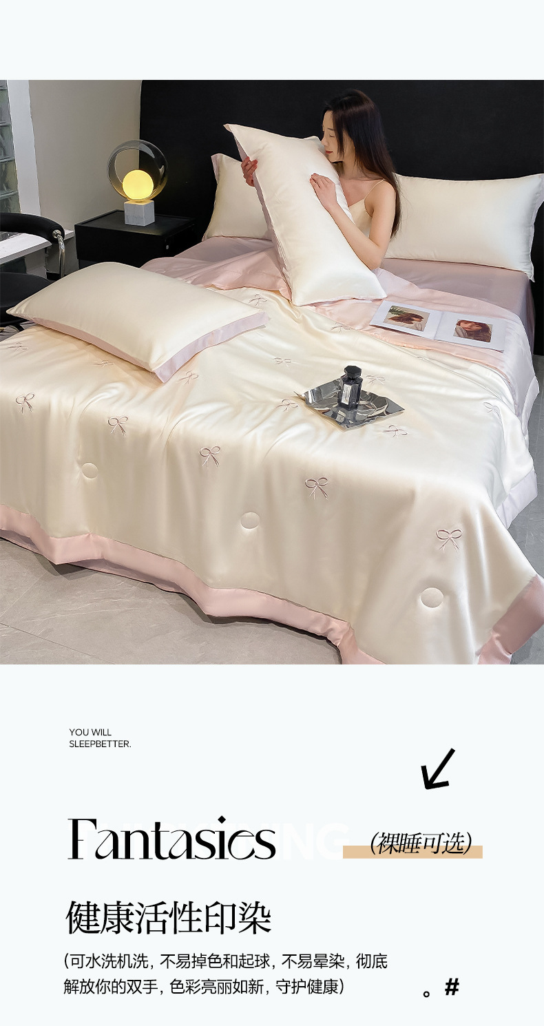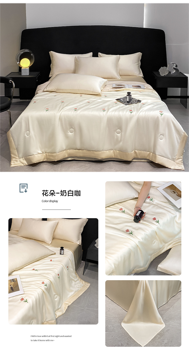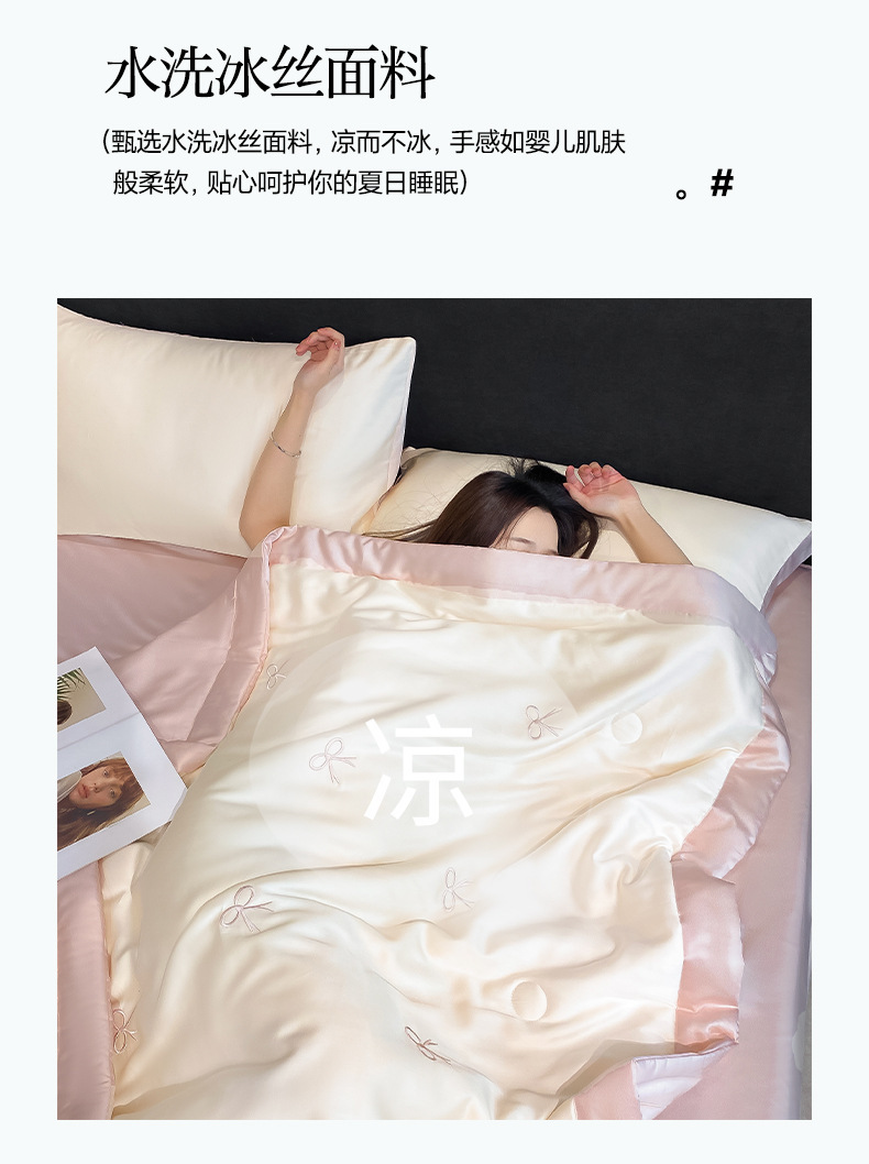 夏季水洗天丝夏被四件套刺绣丝滑裸睡冰丝夏凉被空调被可机洗被芯