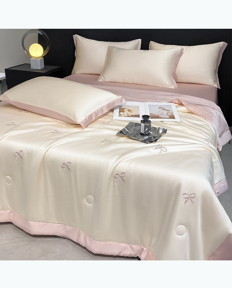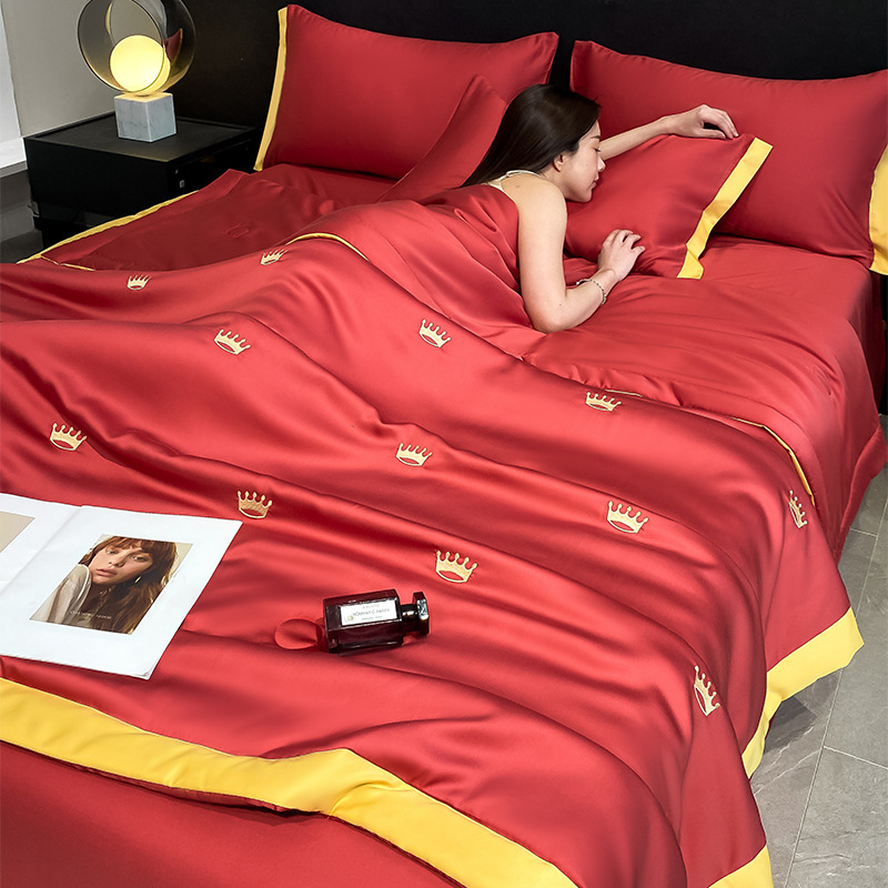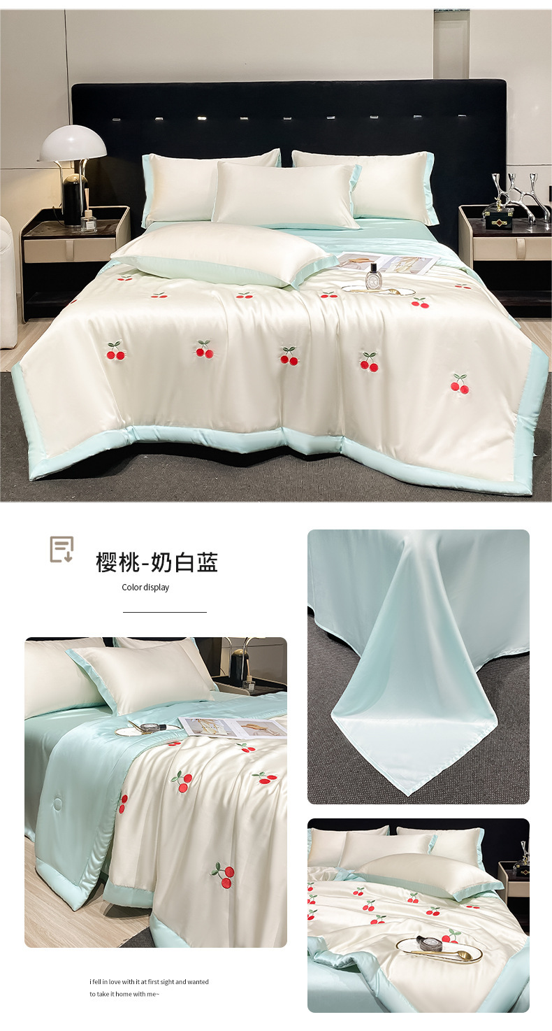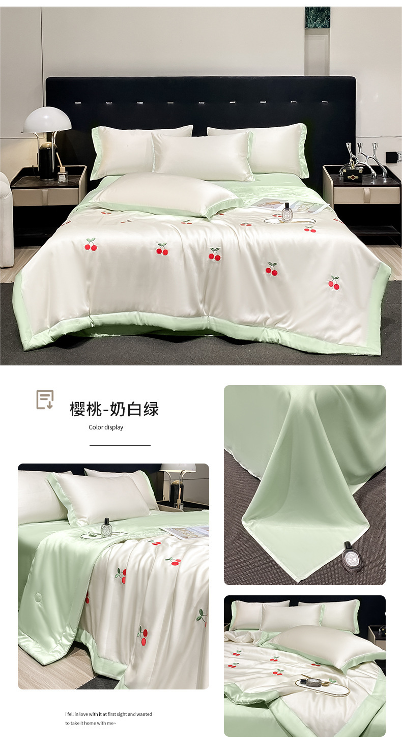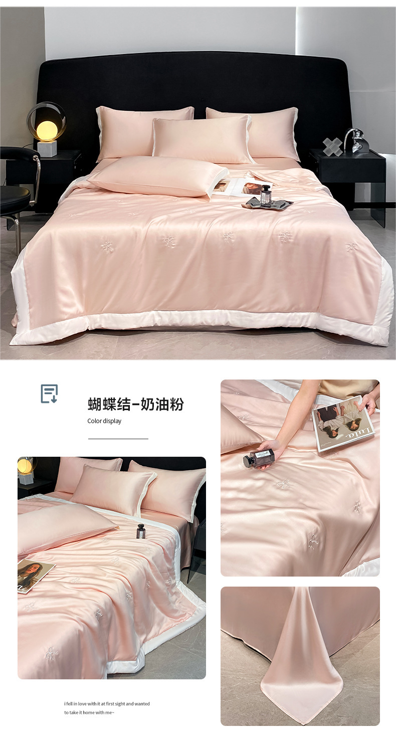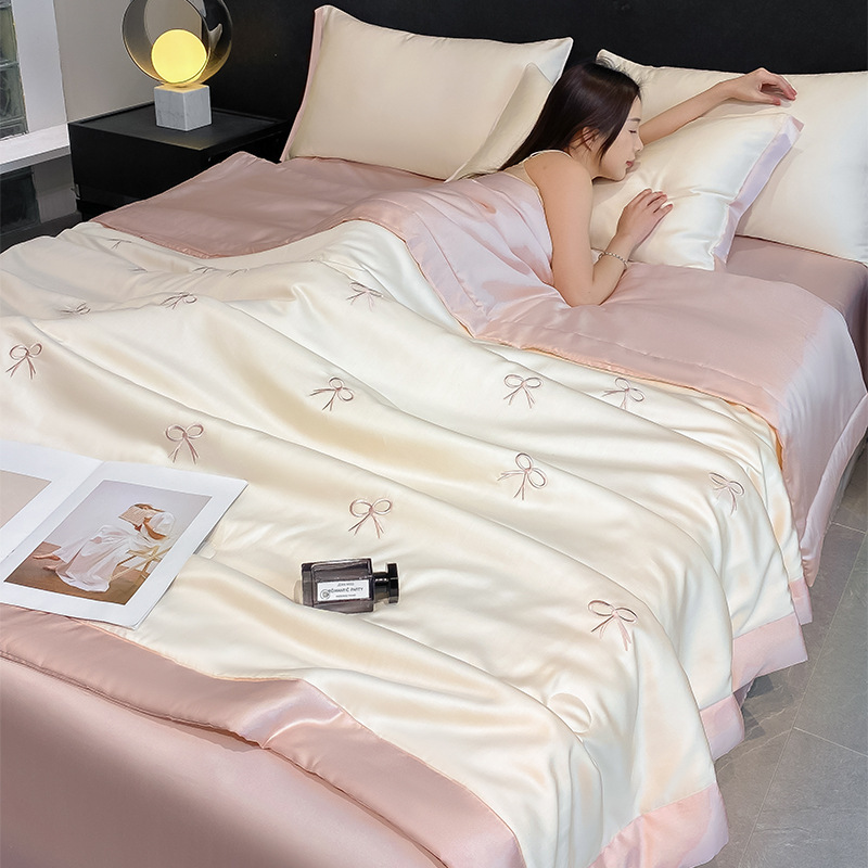 夏季水洗天丝夏被四件套刺绣丝滑裸睡冰丝夏凉被空调被可机洗被芯