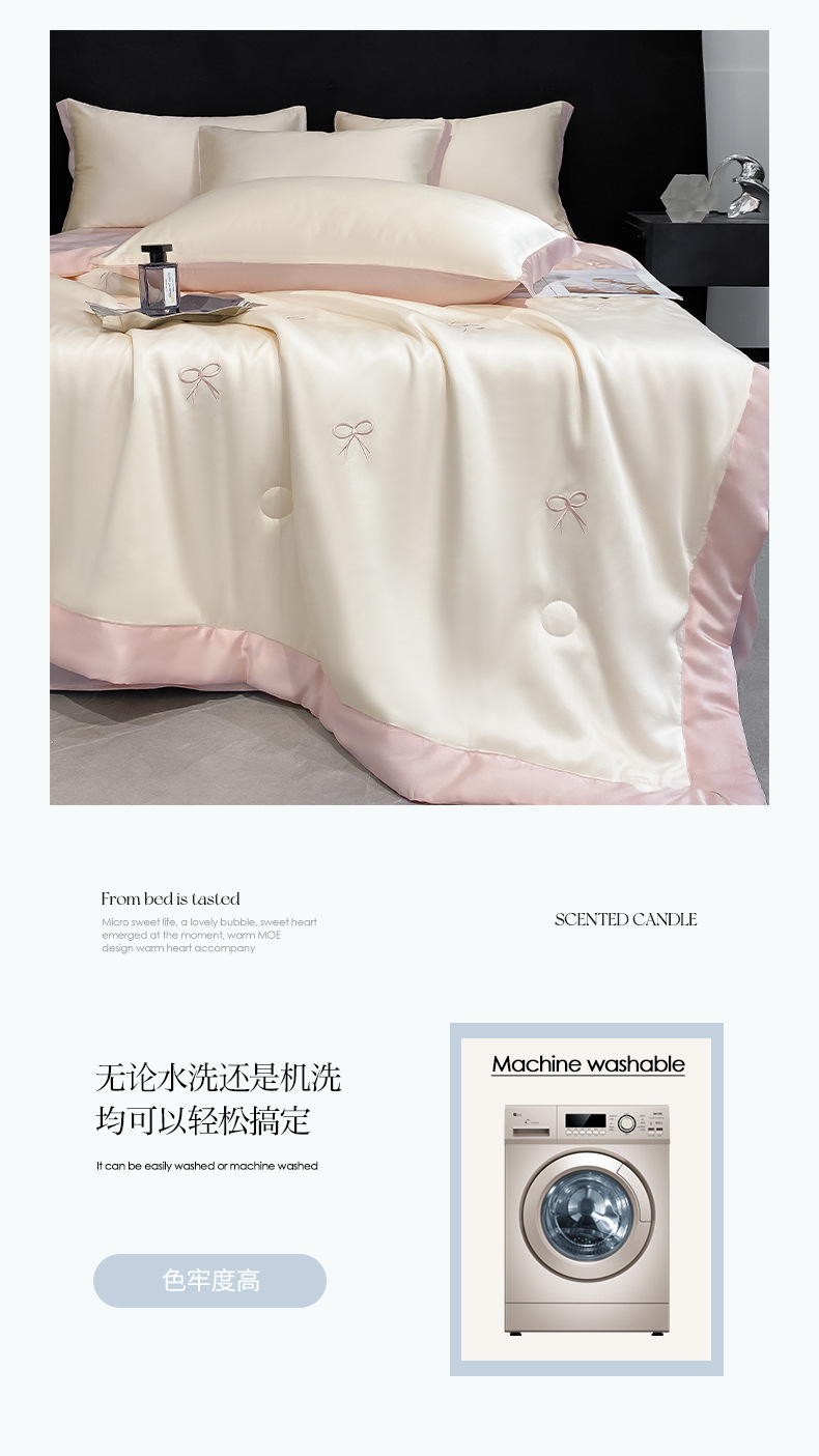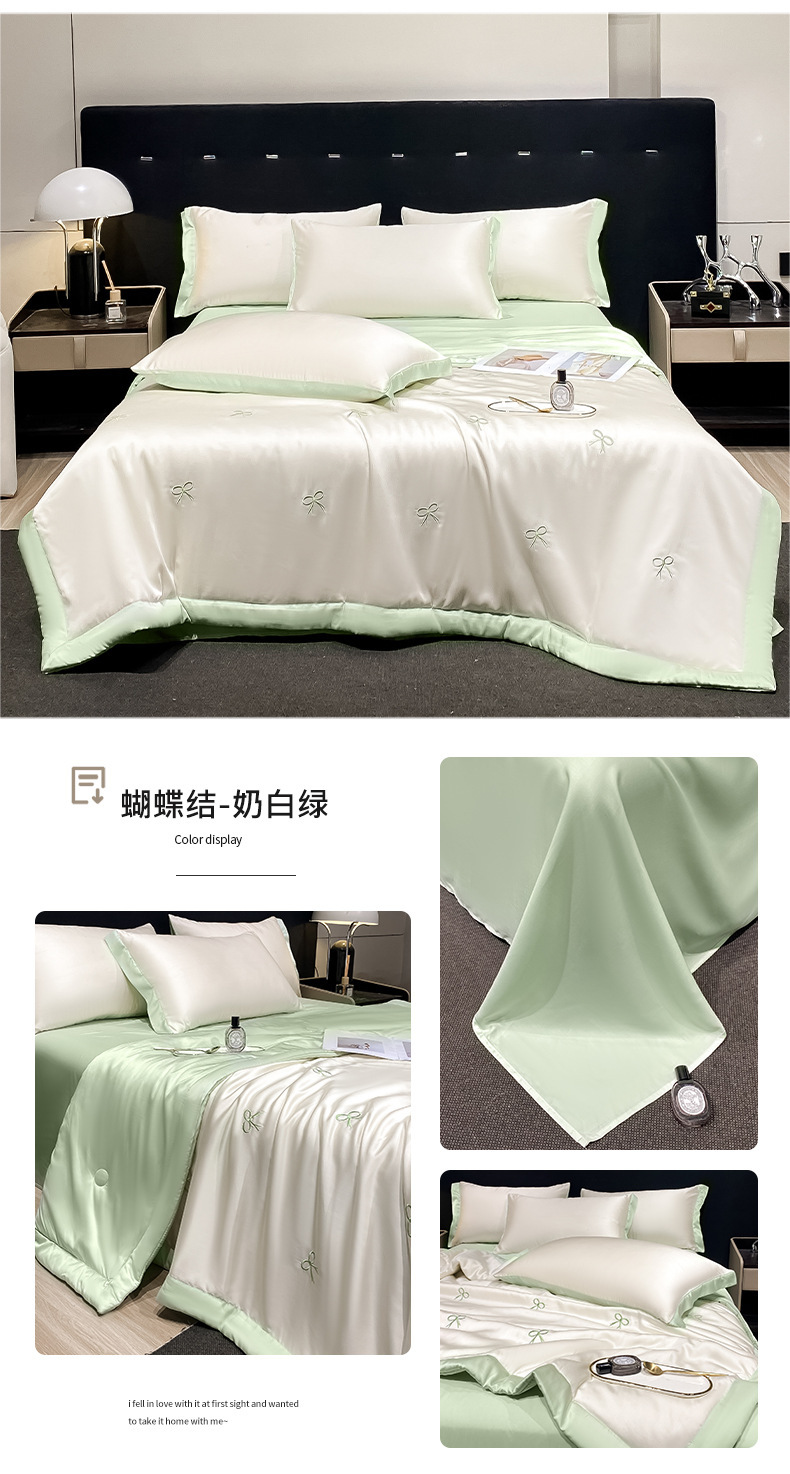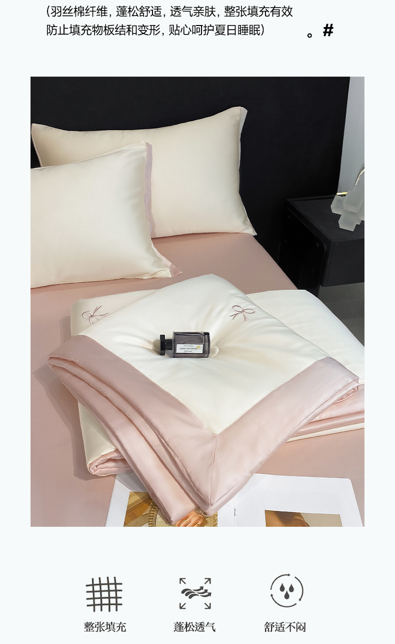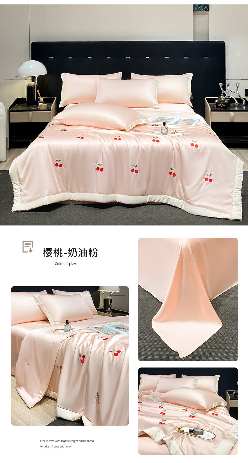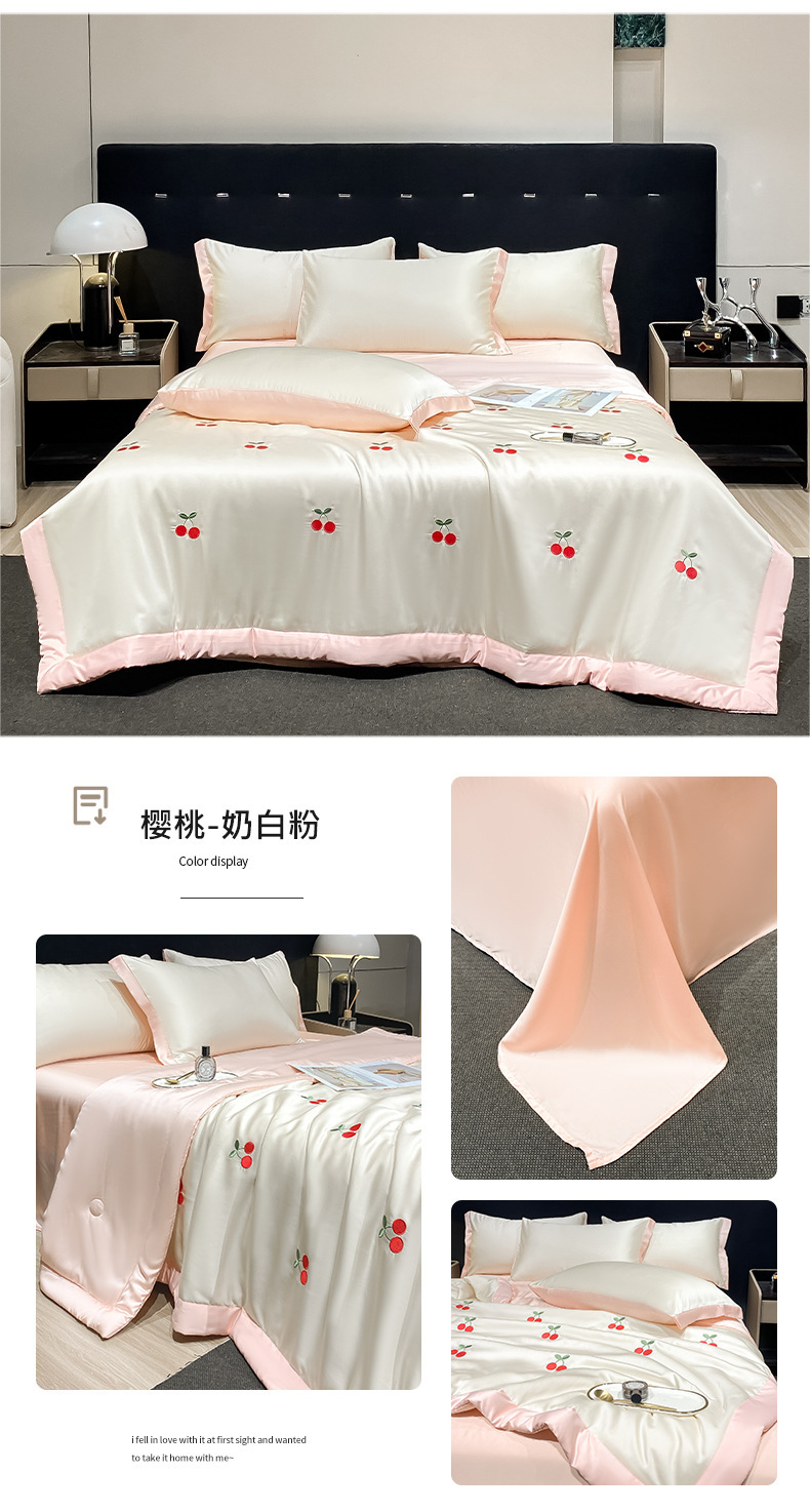 夏季水洗天丝夏被四件套刺绣丝滑裸睡冰丝夏凉被空调被可机洗被芯