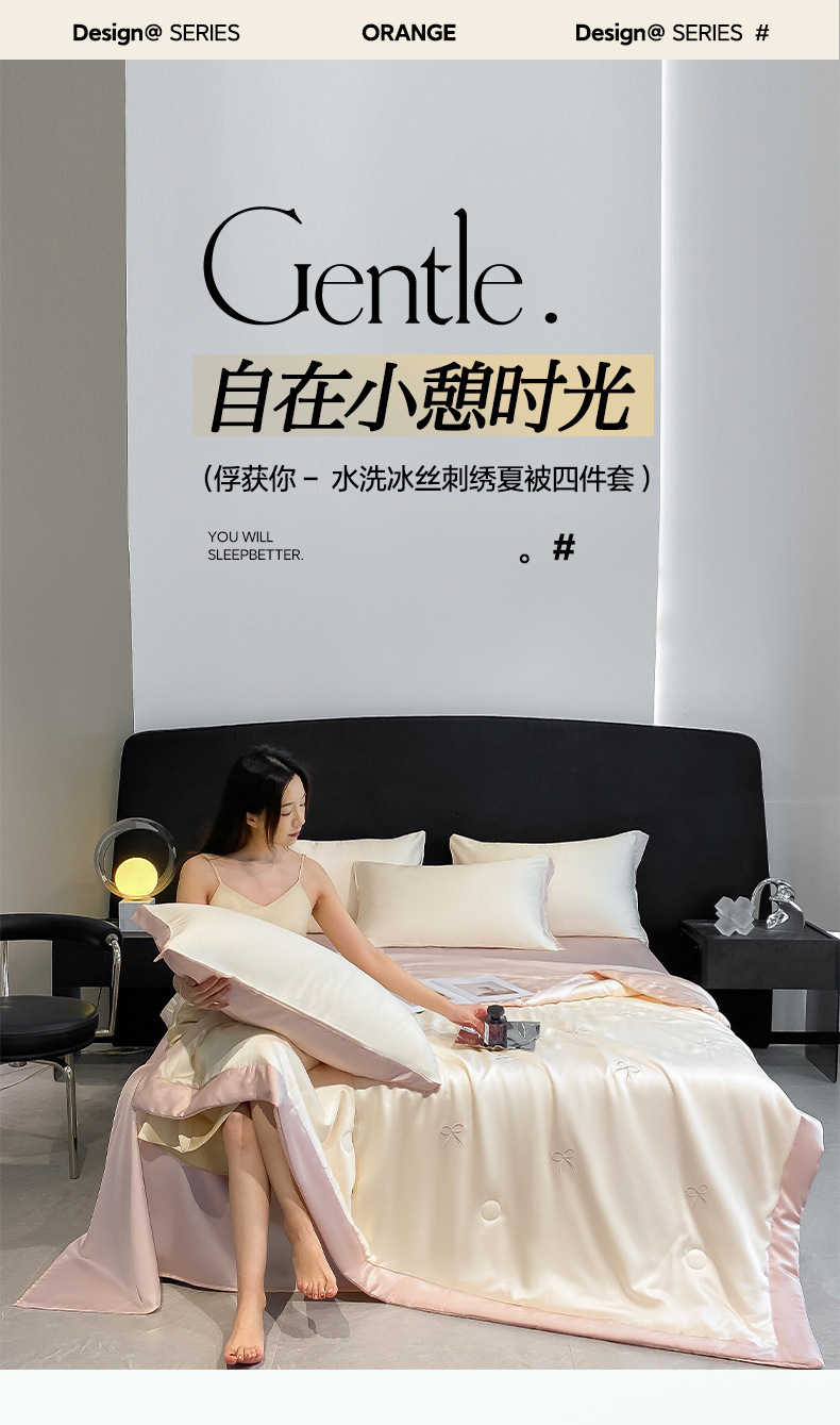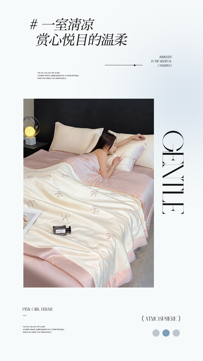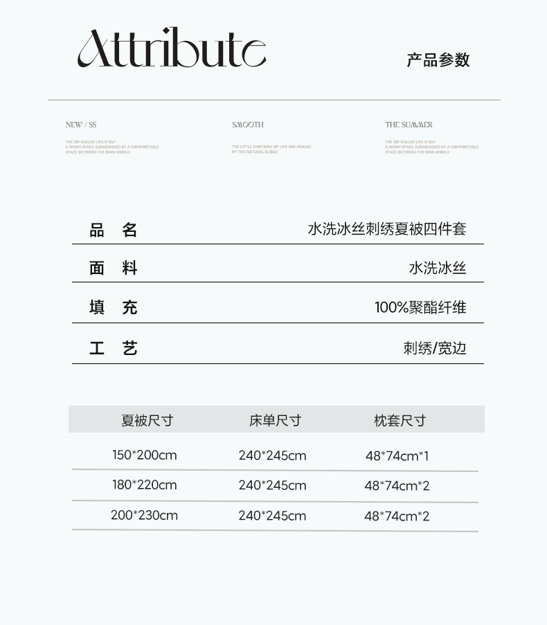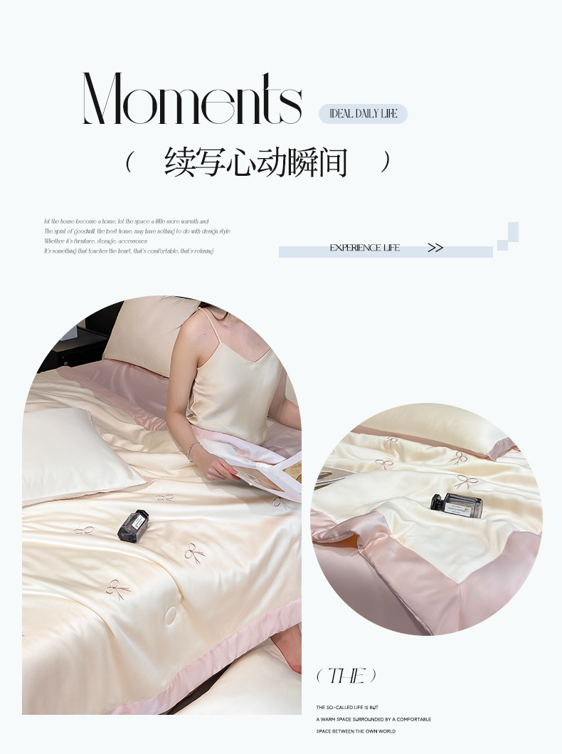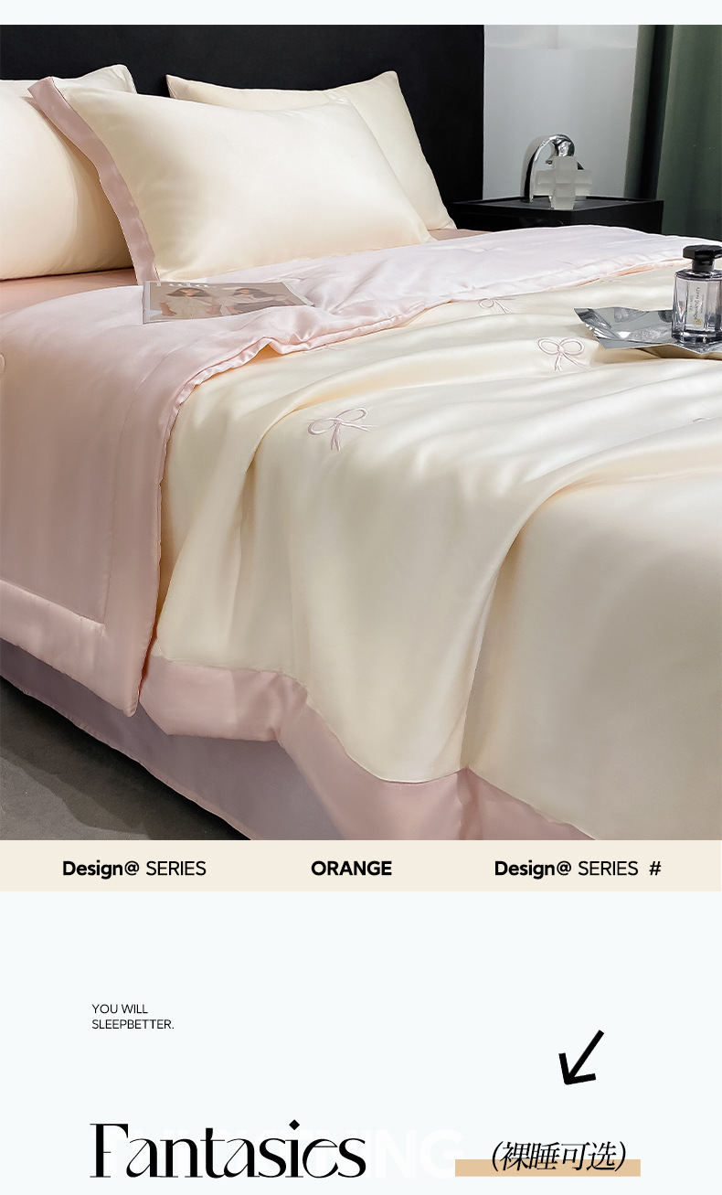 夏季水洗天丝夏被四件套刺绣丝滑裸睡冰丝夏凉被空调被可机洗被芯