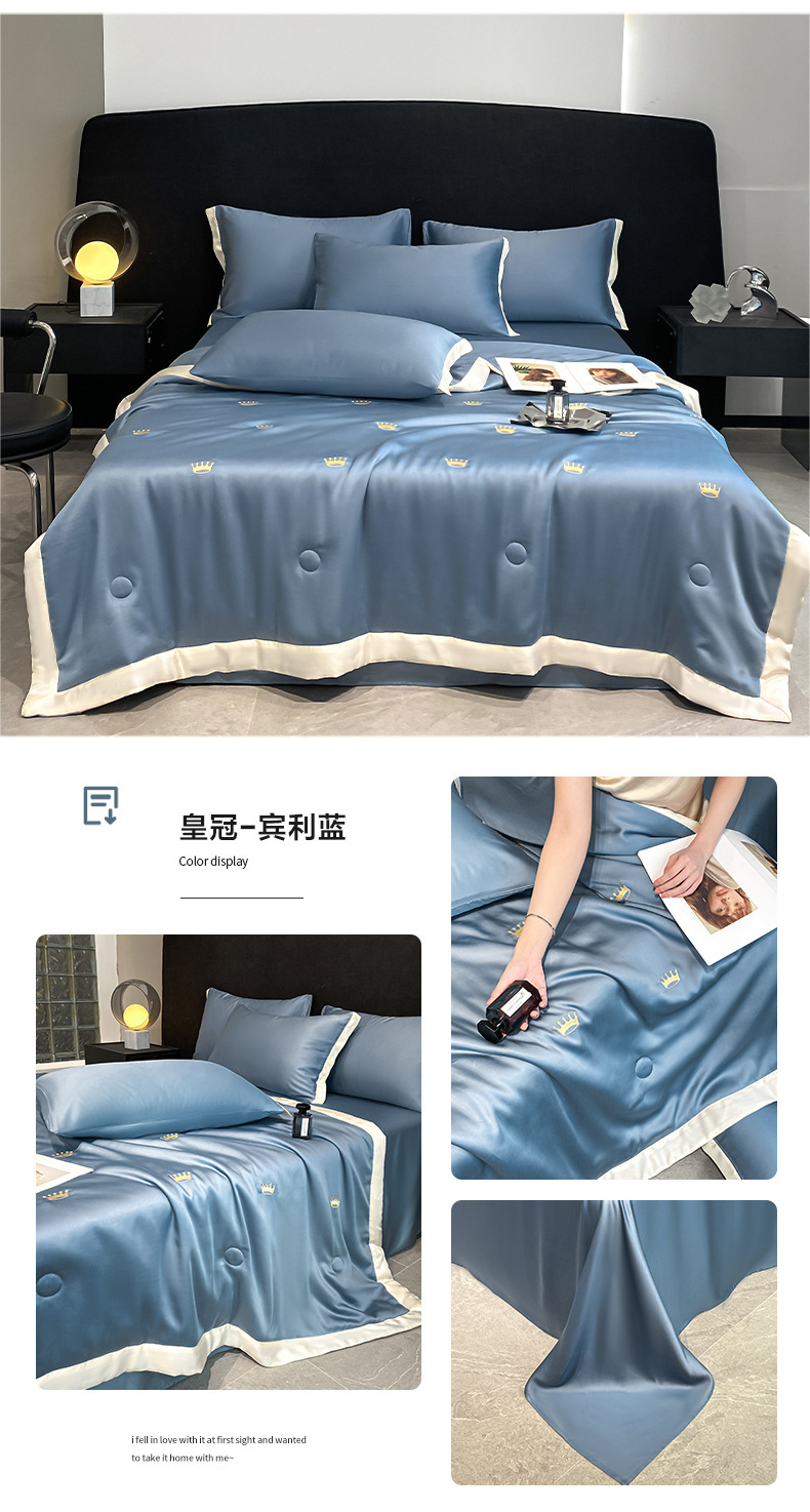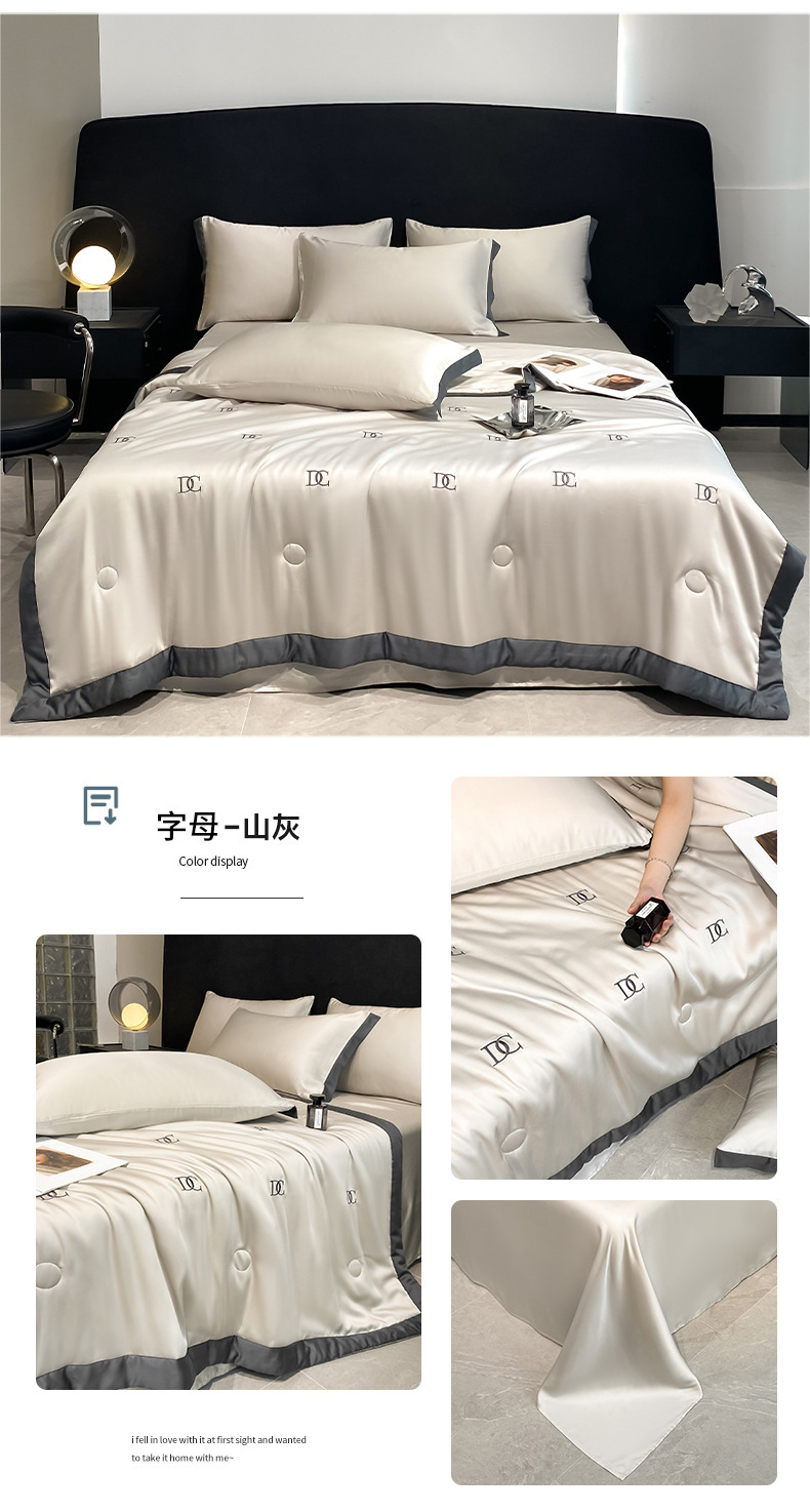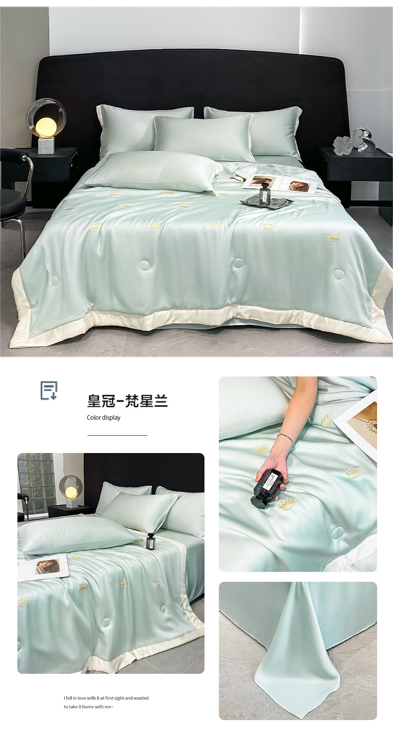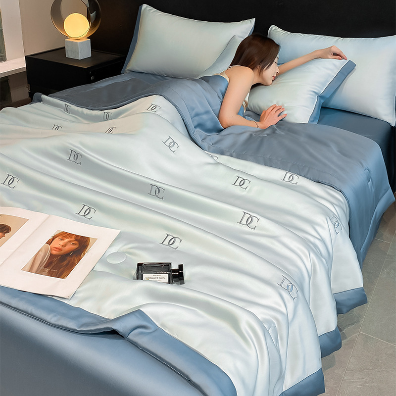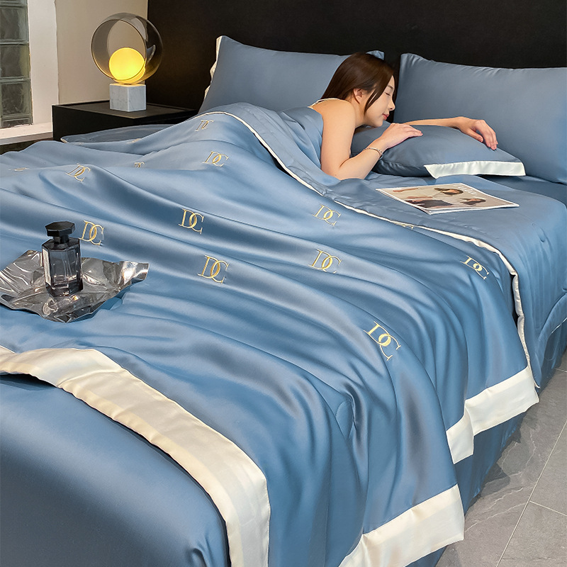 여름 씻은 텐셀 여름 퀼트 4 조각 세트 수 놓은 실키 슬리핑 벌거 벗은 얼음 실크 여름 퀼트 에어컨 퀼트 머신 세탁기 세척 가능한 퀼트 코어스토어 가기