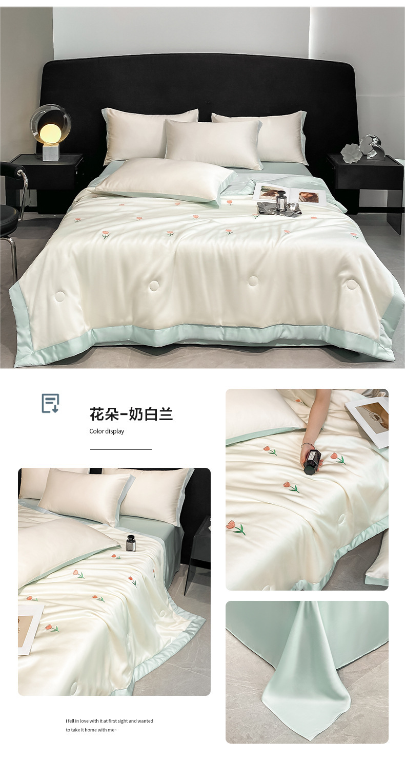 여름 씻은 텐셀 여름 퀼트 4 조각 세트 수 놓은 실키 슬리핑 벌거 벗은 얼음 실크 여름 퀼트 에어컨 퀼트 머신 세탁기 세척 가능한 퀼트 코어